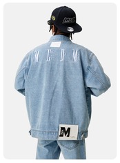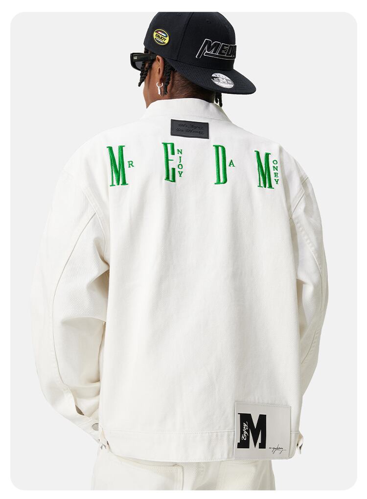 MR. ENJOY DA MONEY Back Logo Denim Jacket Unisexual !!!