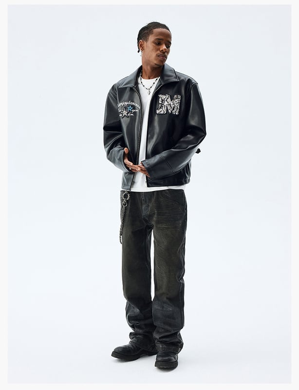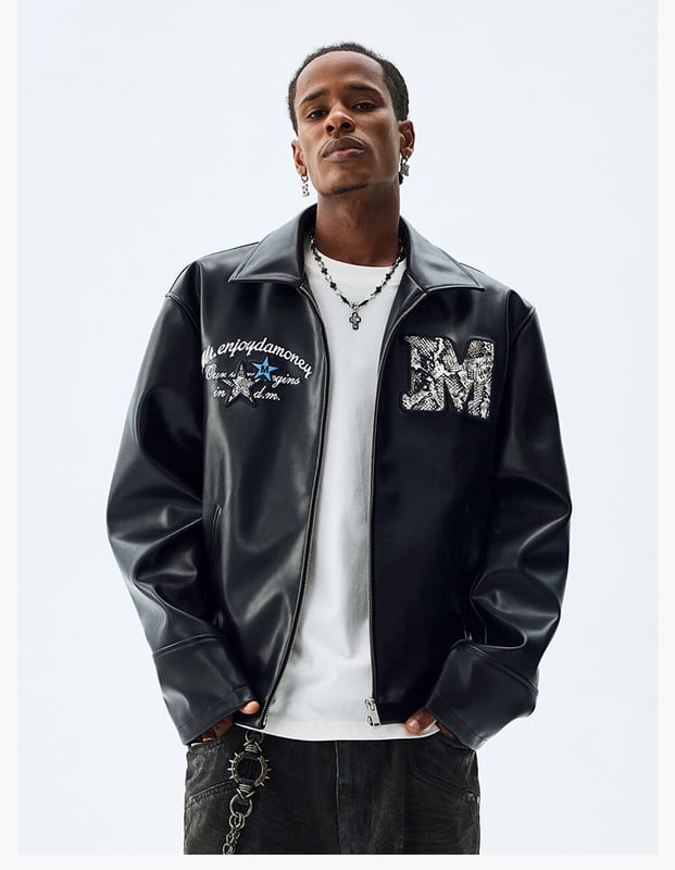 MEDM 88rising Money Lucky leather jacket black hou unisexual