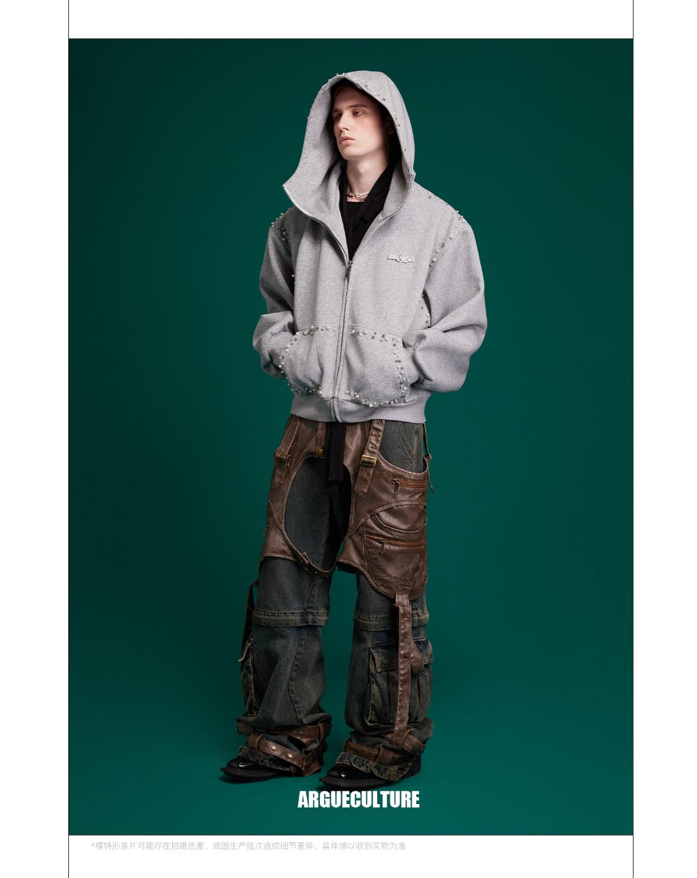 Argue Culture ジップパーカーパール付きロゴフード付ジャケット
