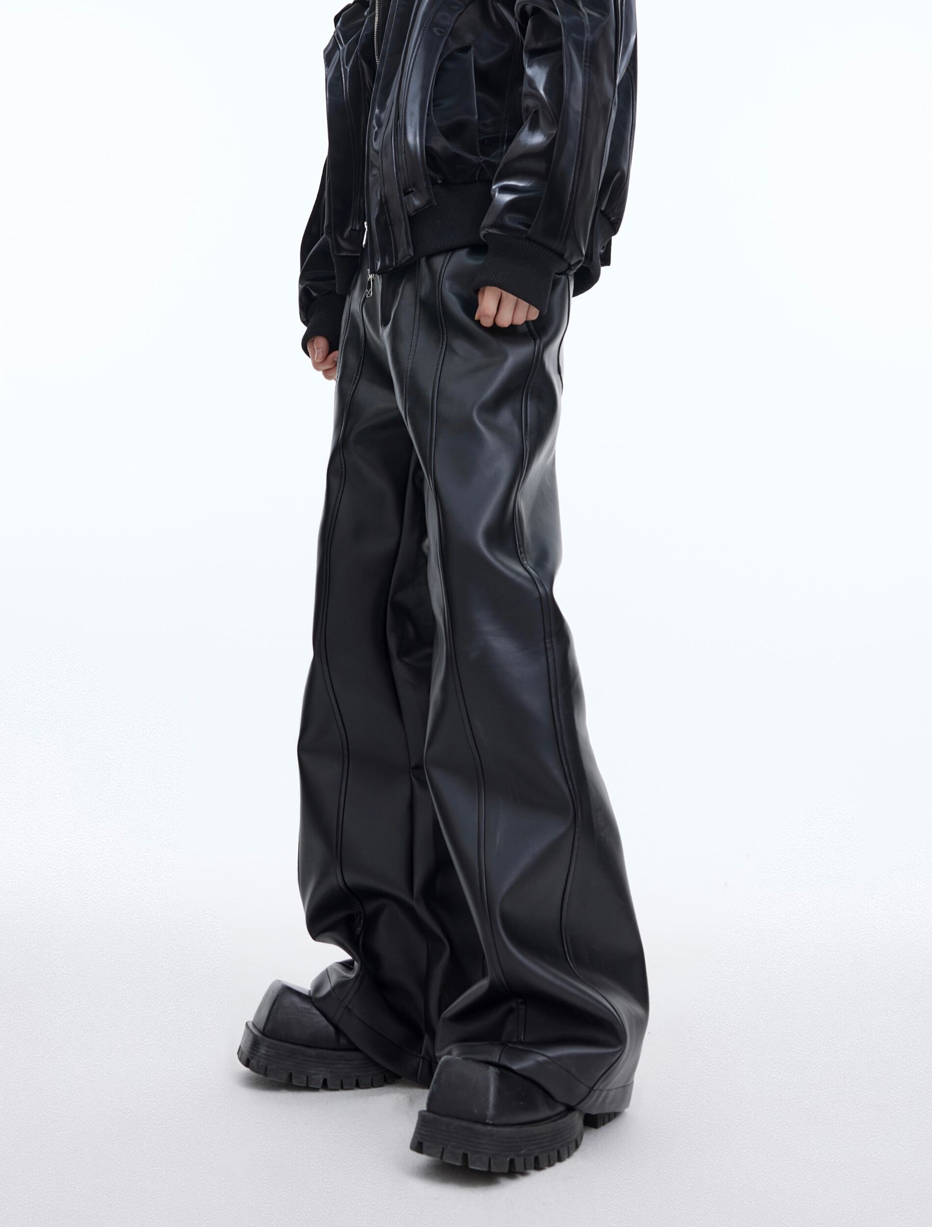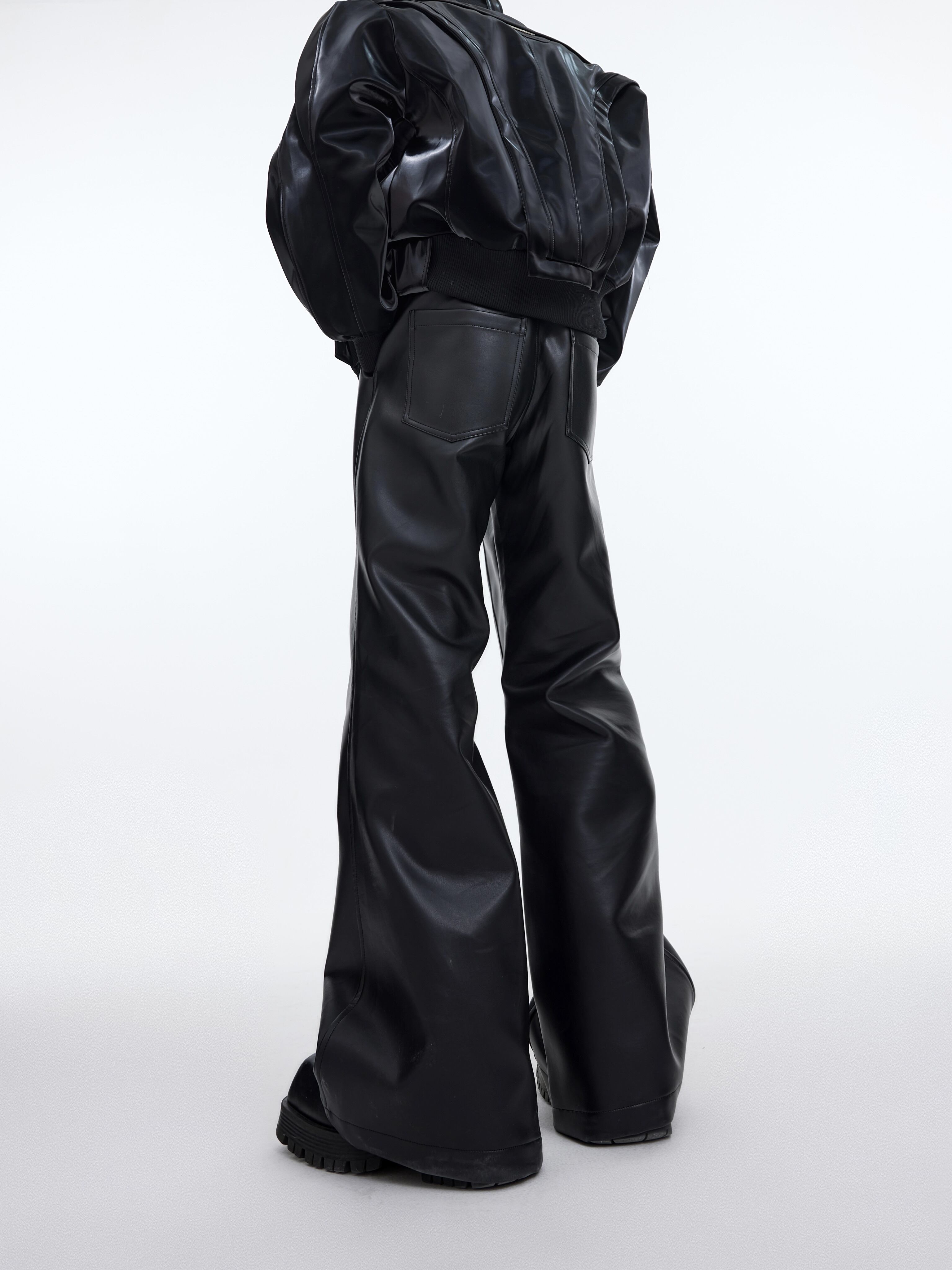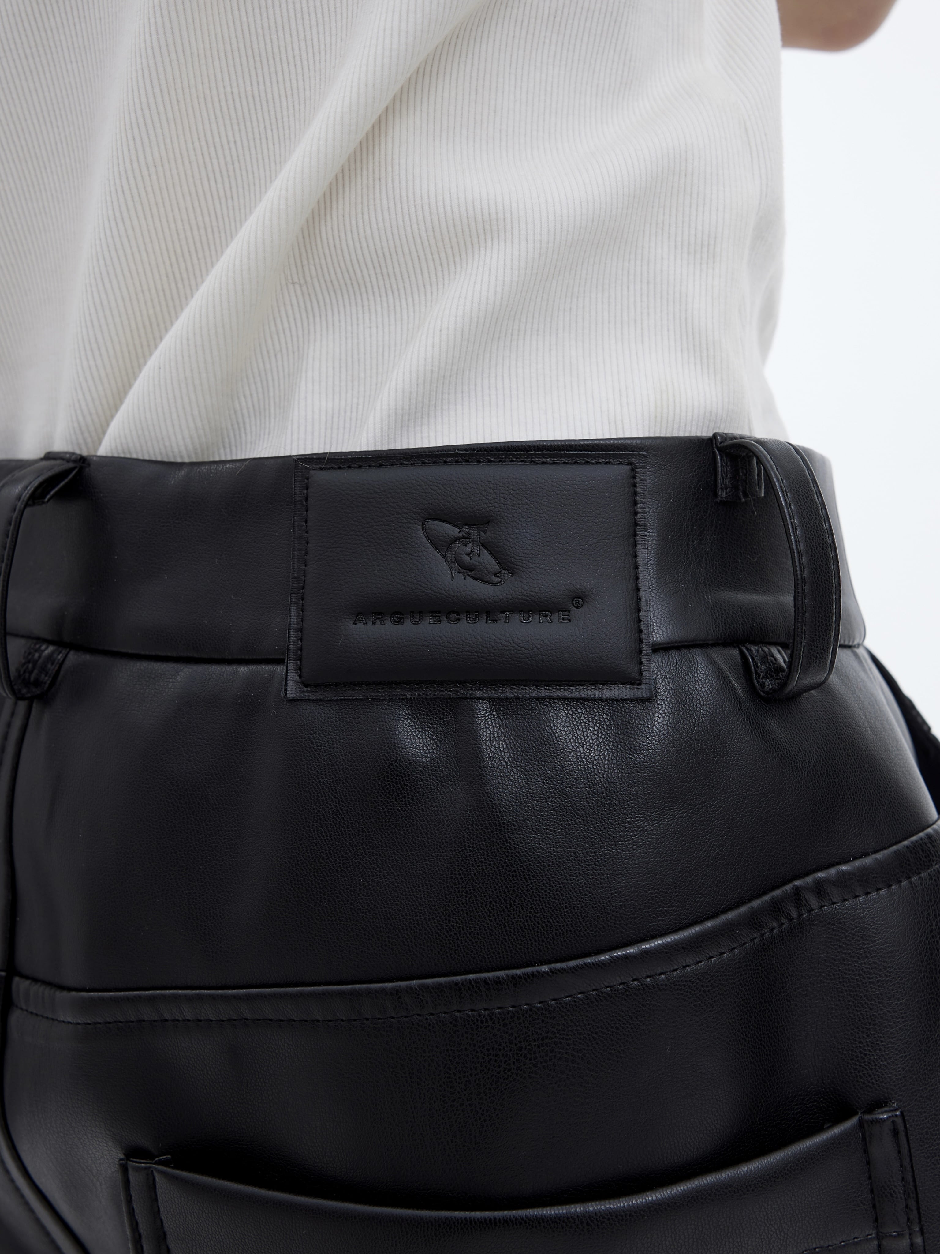 Argue Culture フェイクレザーパンツ ワイド フレア 無地 ブラック