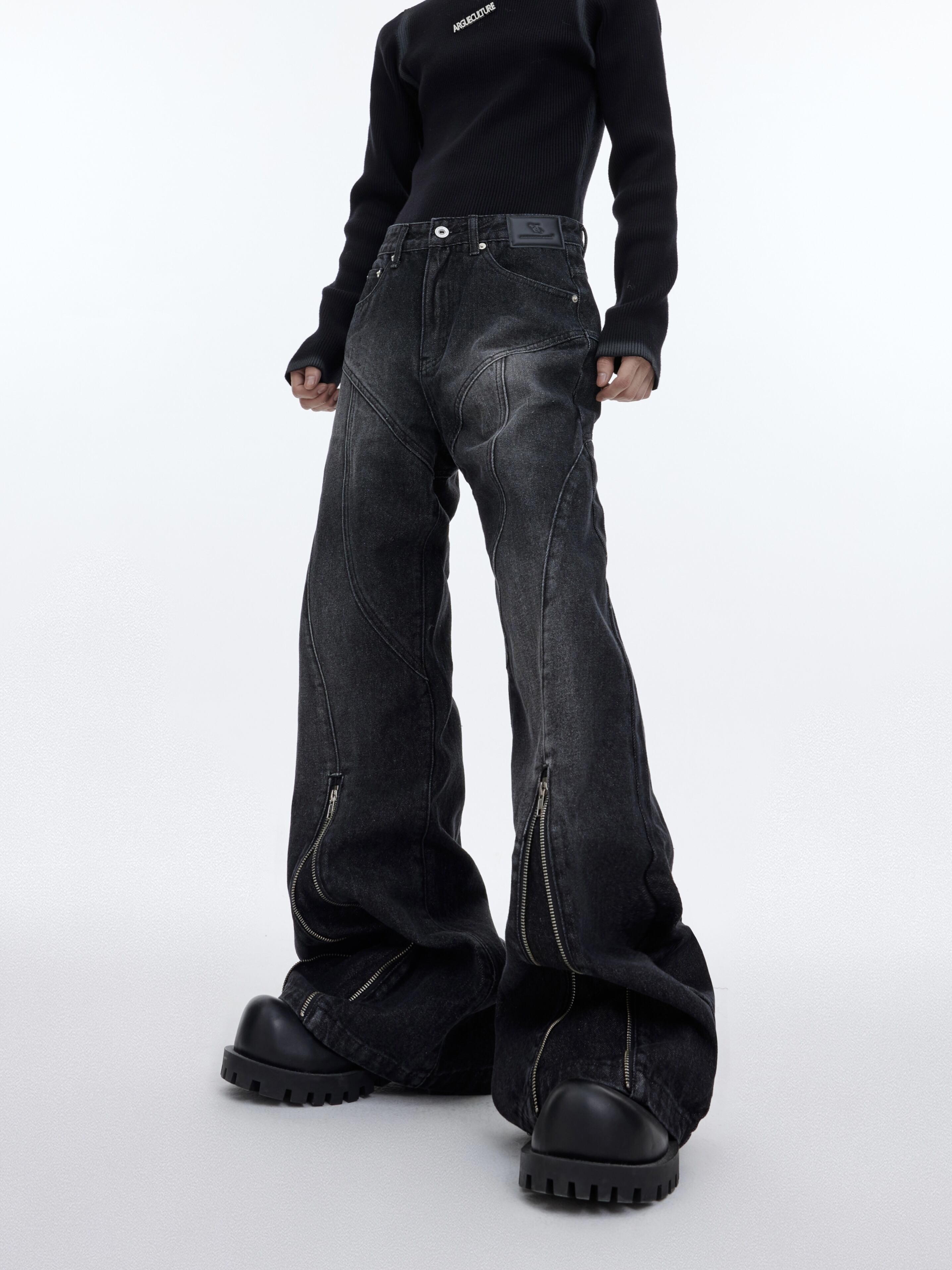 Argue Culture ワイド デニムパンツ ウォッシュドジーンズ