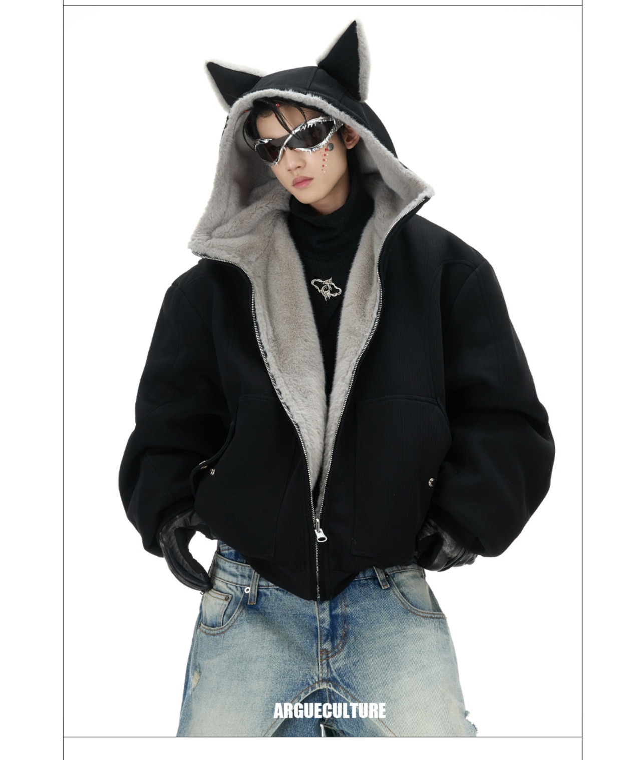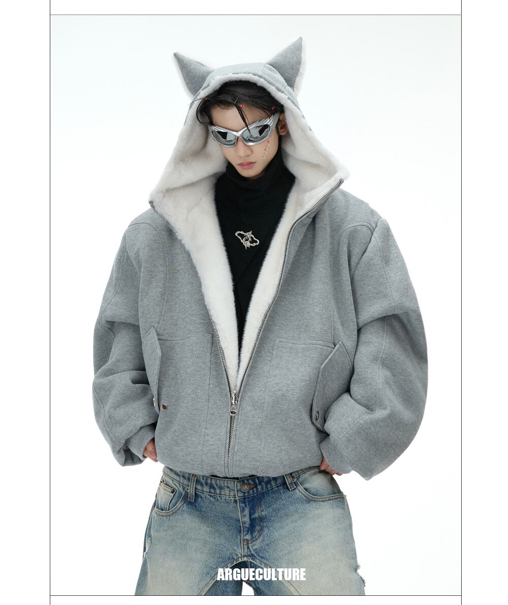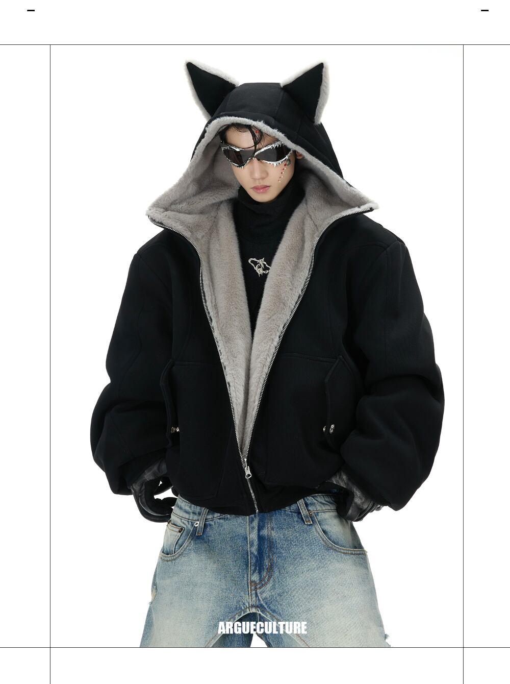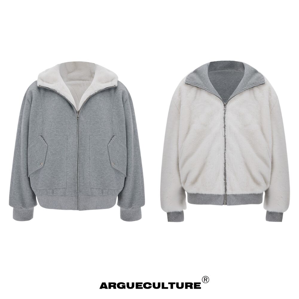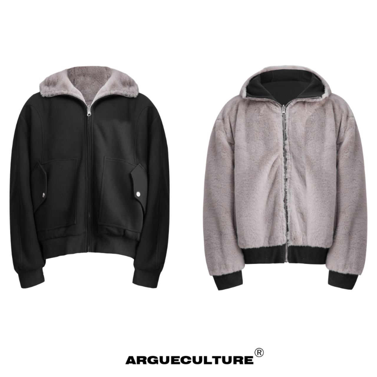 ArgueCulture両面着キツネ耳付きフードジャケットファイクファー