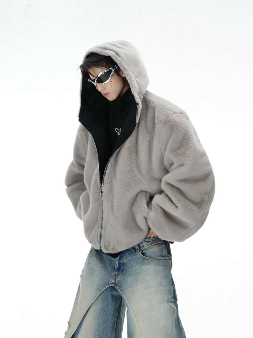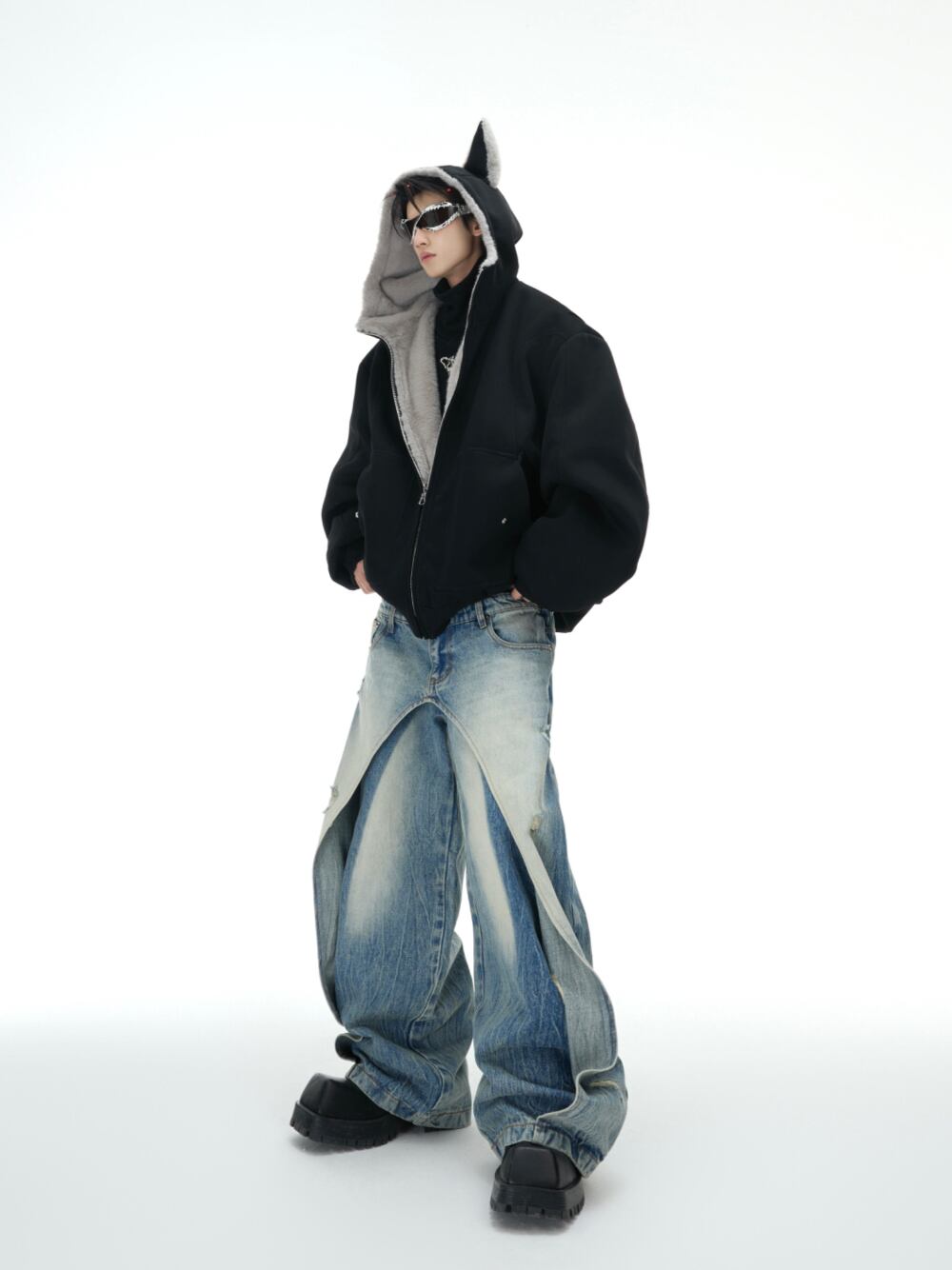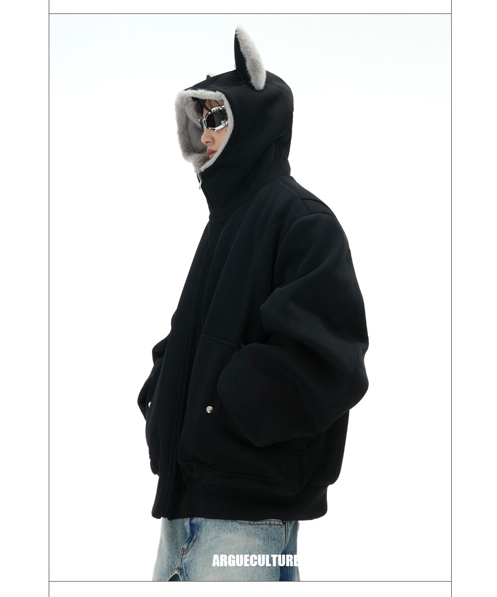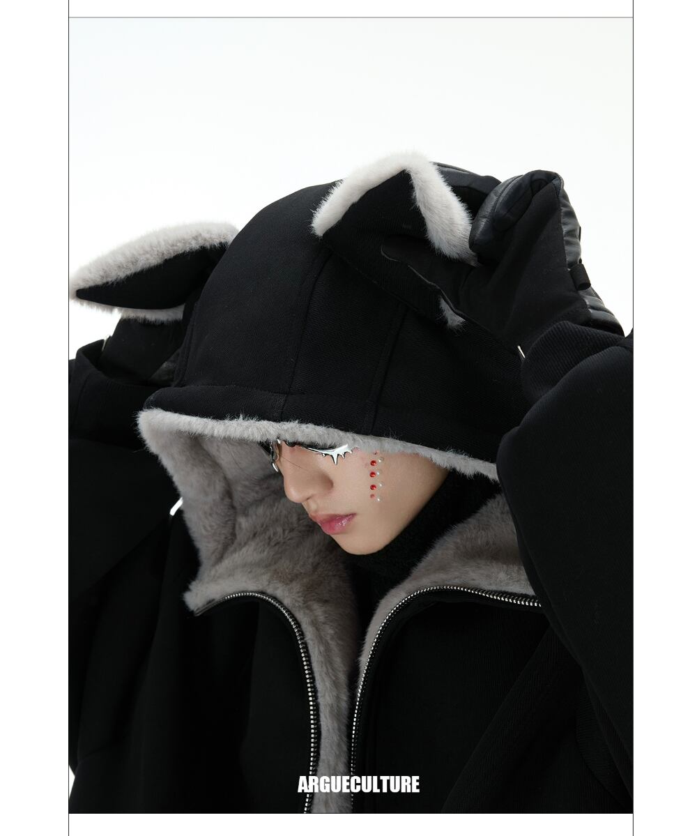ArgueCulture両面着キツネ耳付きフードジャケットファイクファー