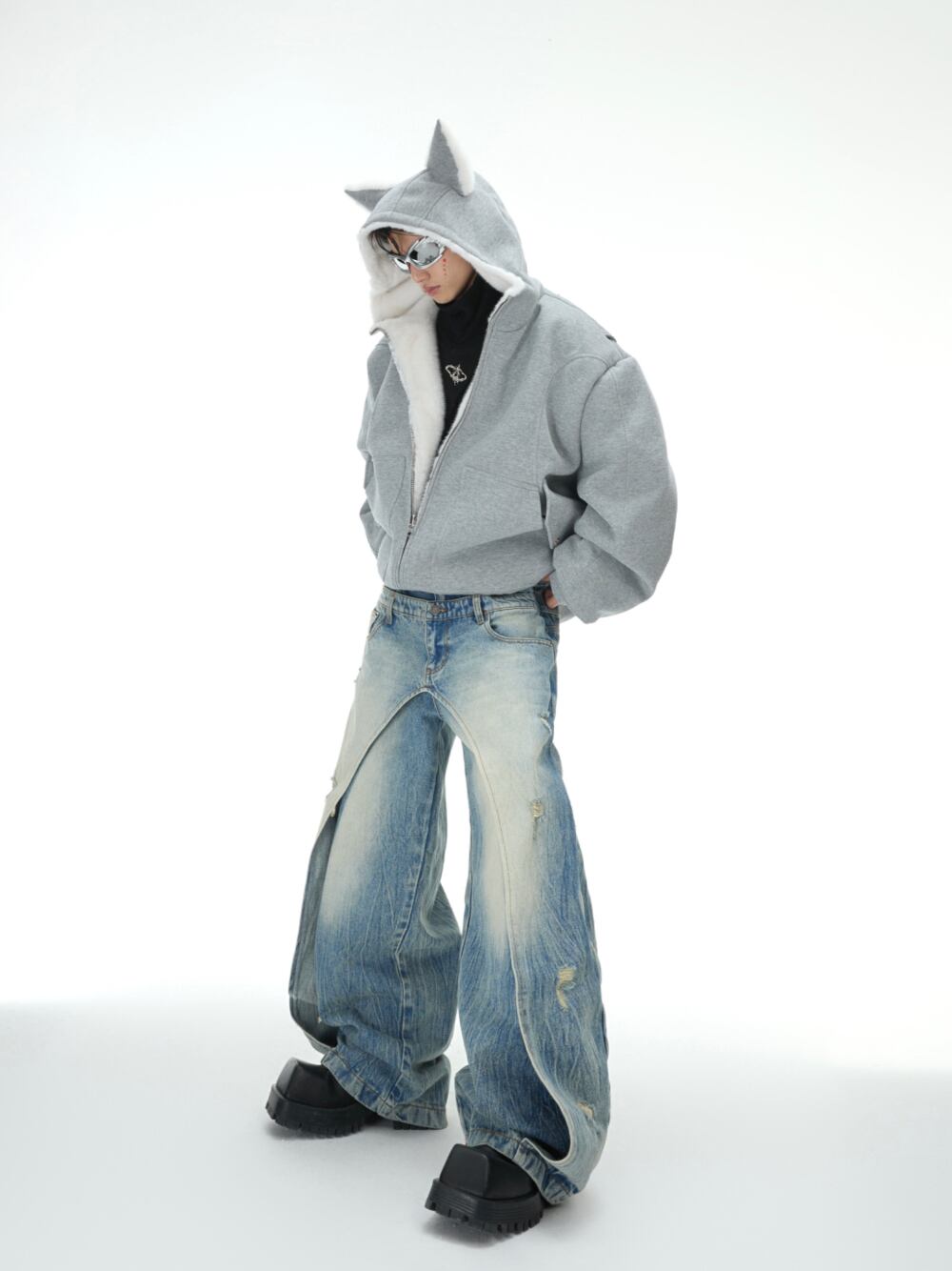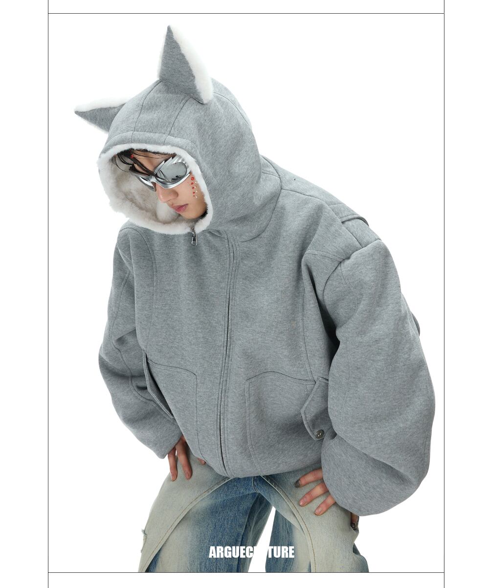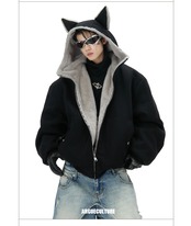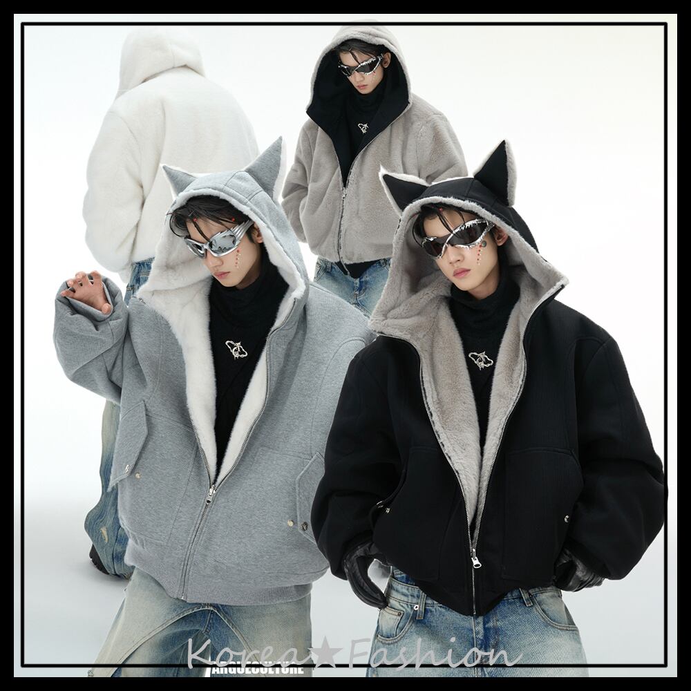 キツネ耳 パーカー フード付き ジップジャケット 狐 ファイクファーアウター 厚手 暖い メンズ レディース ユニセックス 男女兼用 カップル