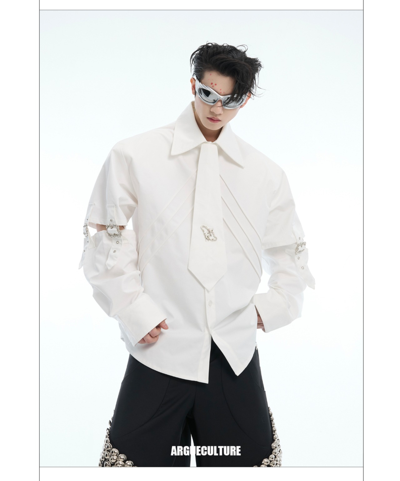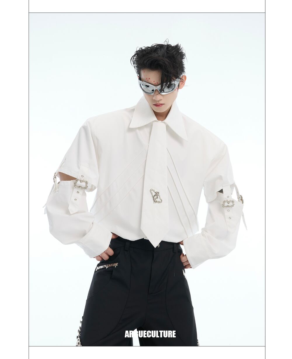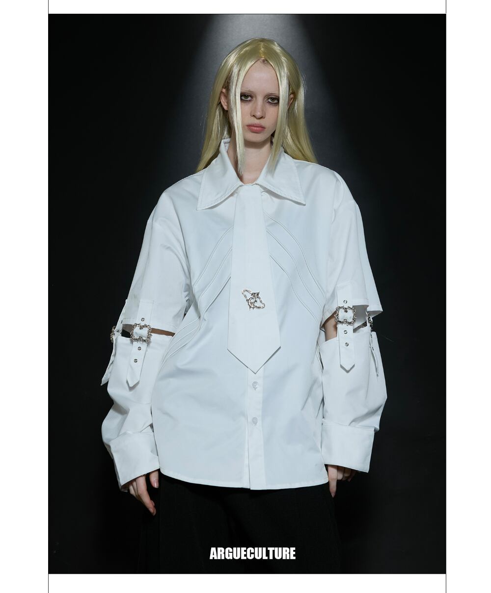 Argue Culture 袖取外し可シャツロゴ入りネクタイ飾りゆったり