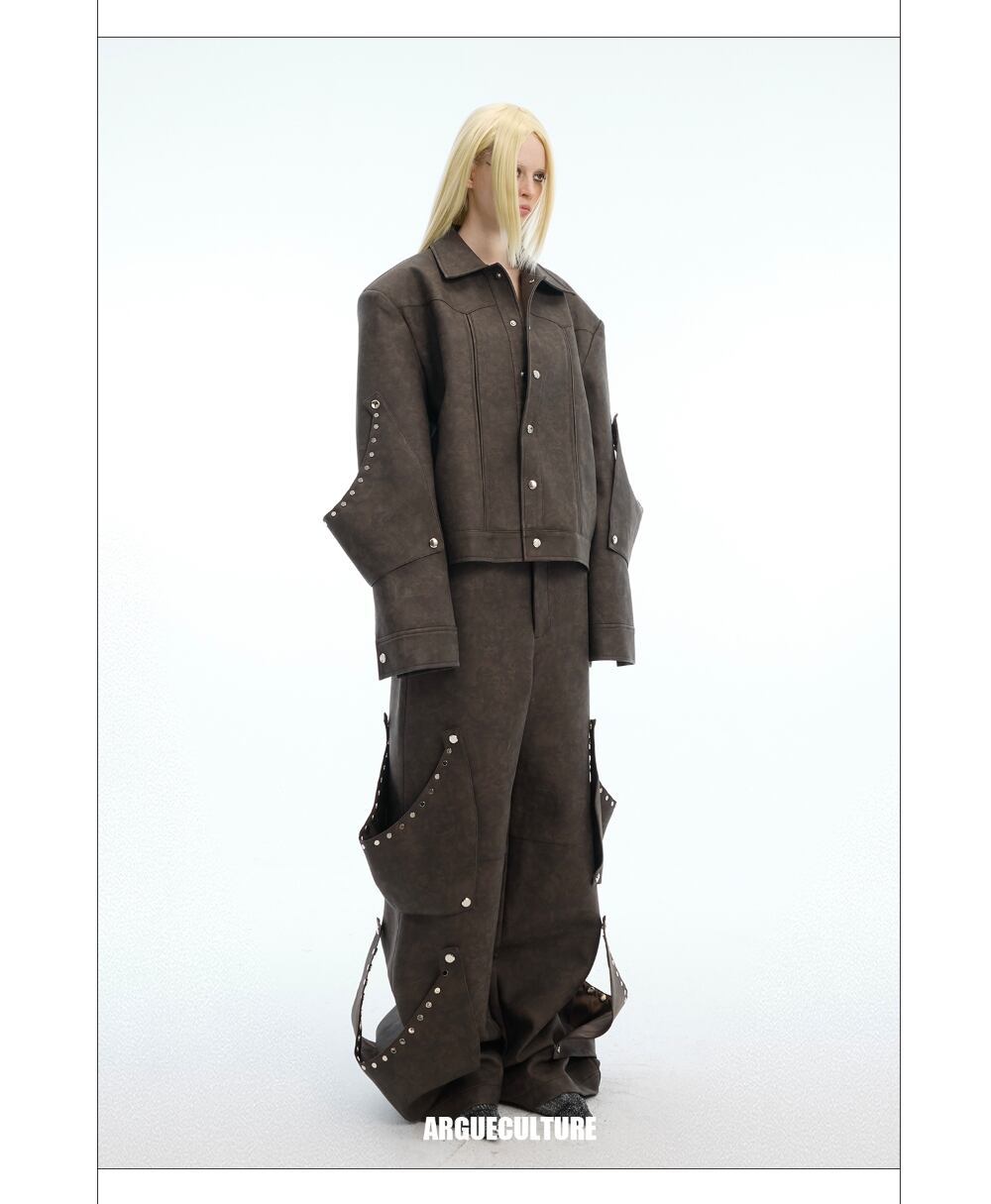 Argue Culture セットフェイクレザージャケットカーゴパンツ
