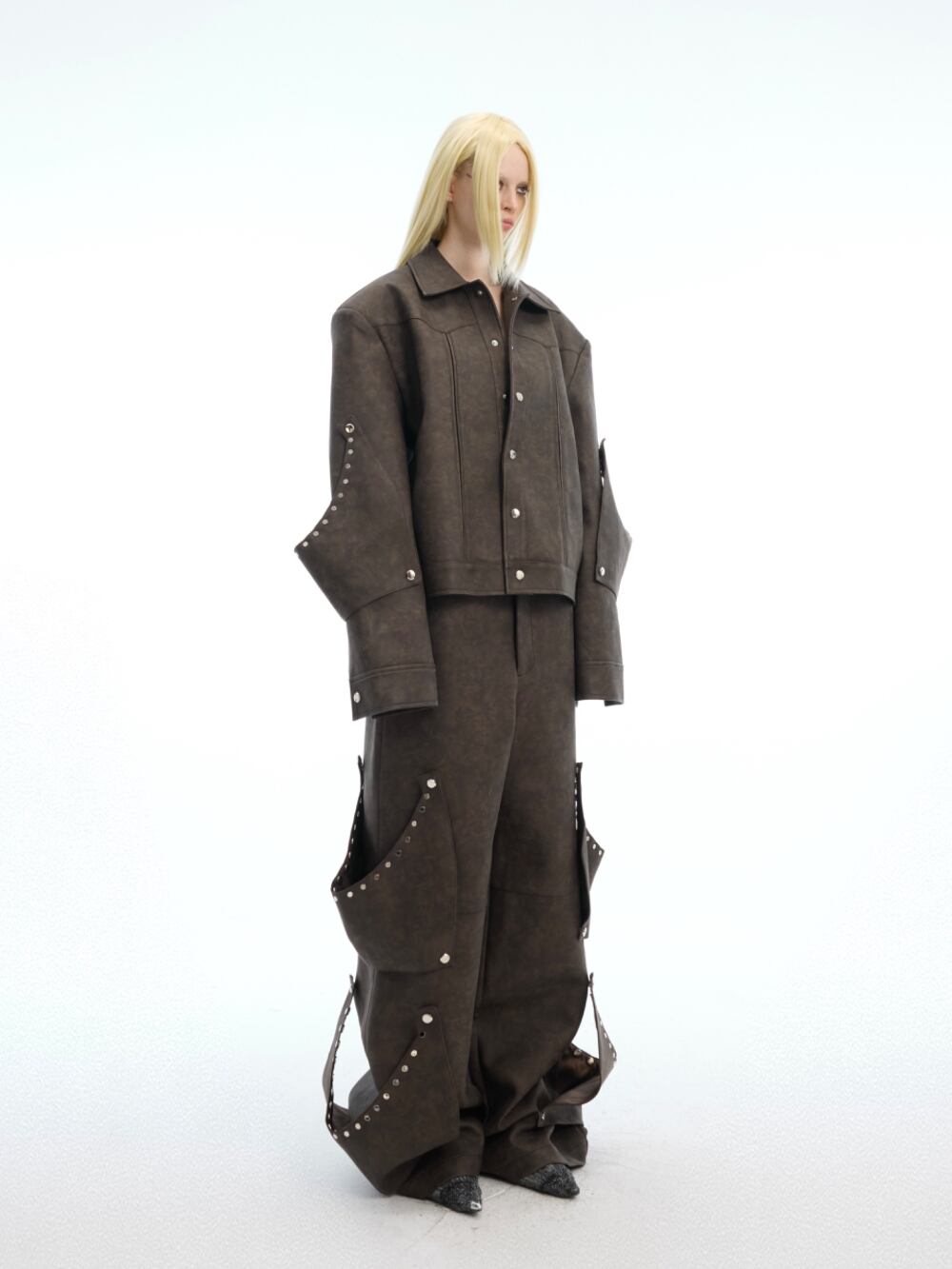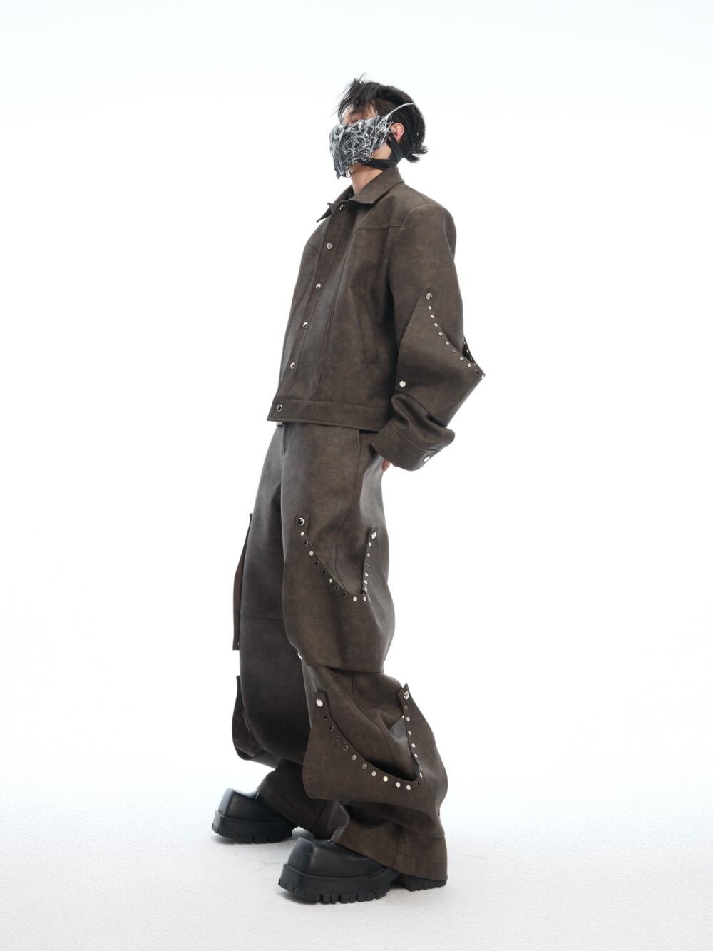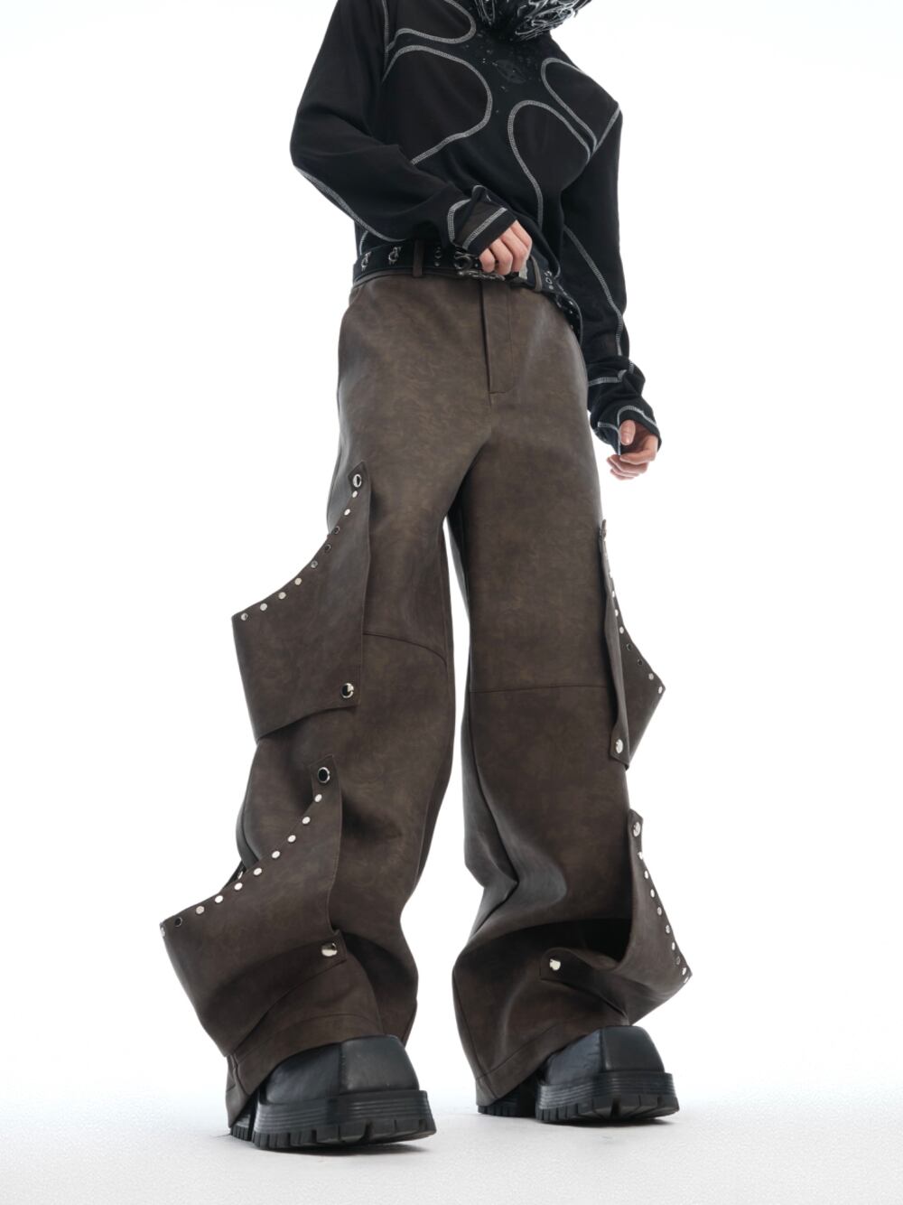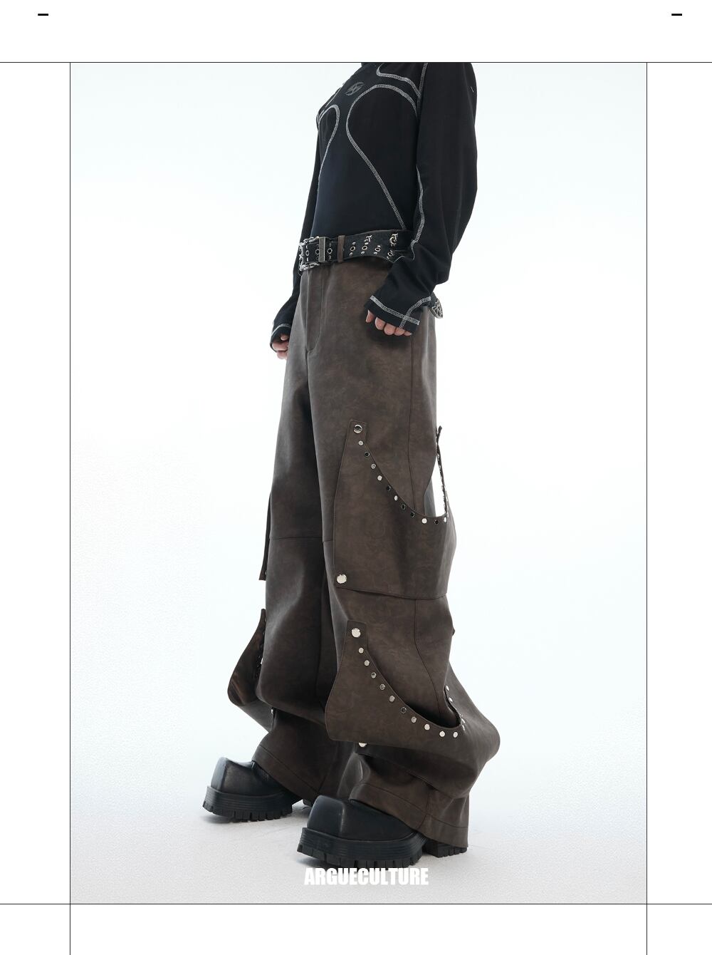 Argue Culture フェイクレザーパンツストリートスタッズ切り替え