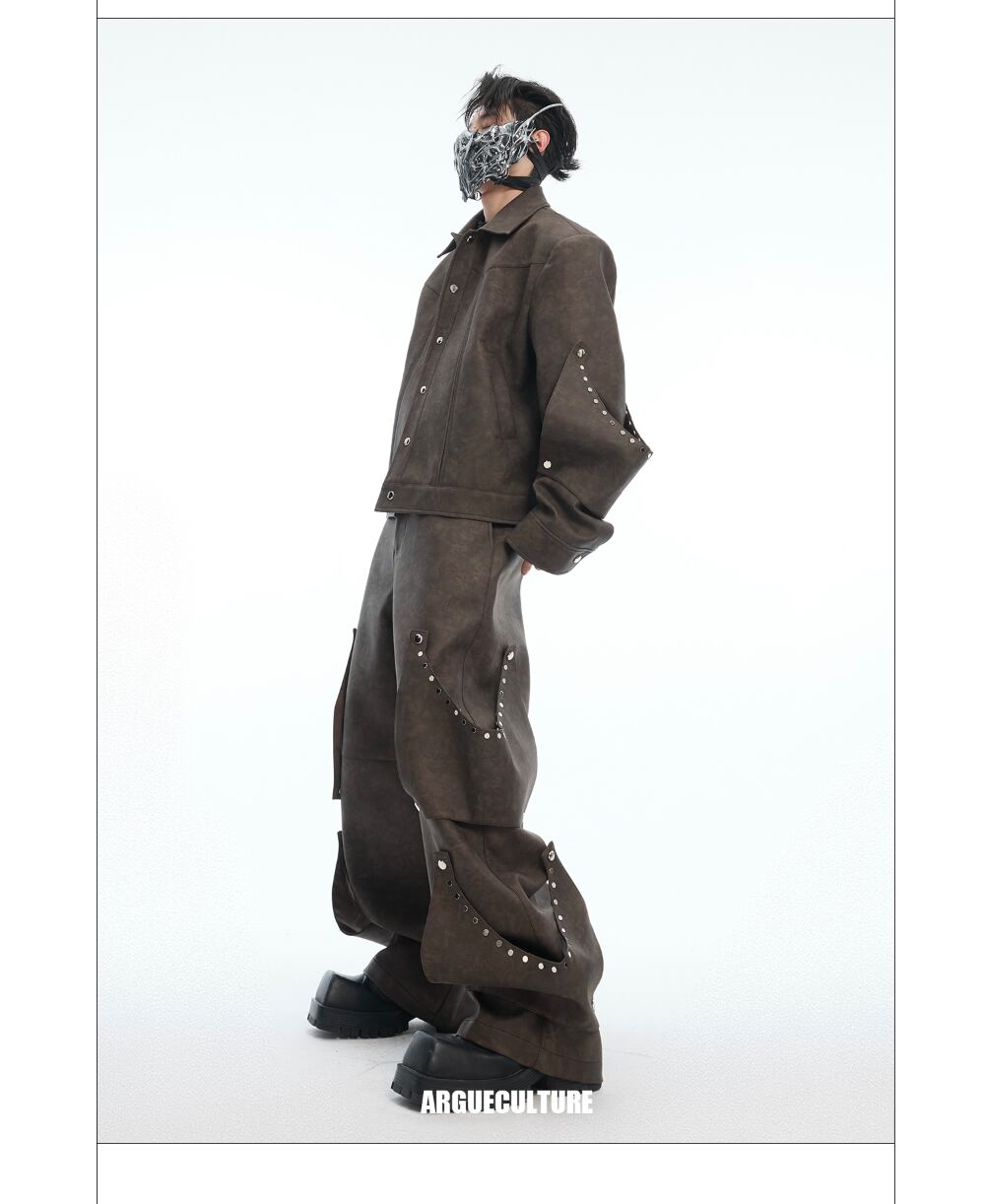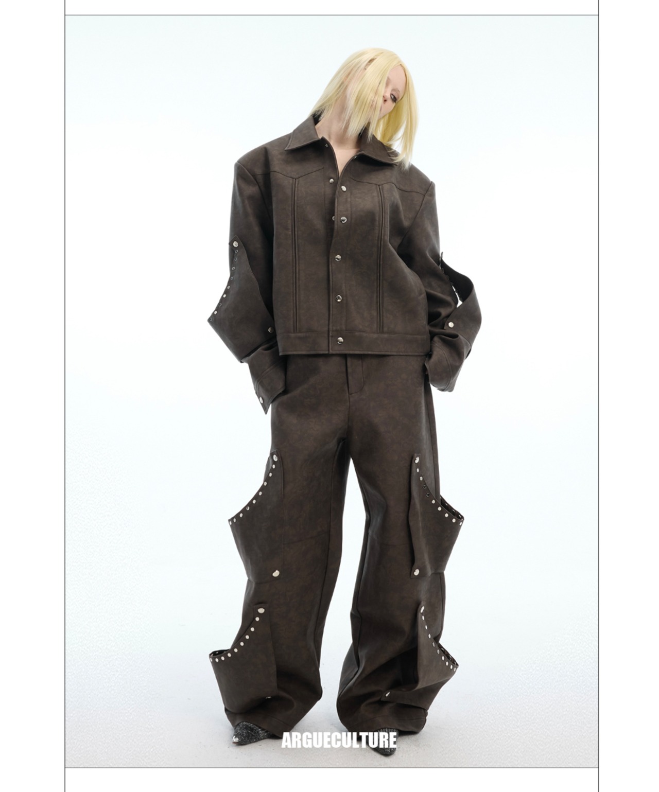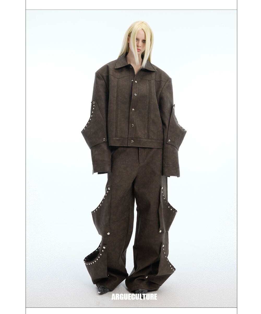 Argue Culture フェイクレザージャケットスタッズ切替ストリート