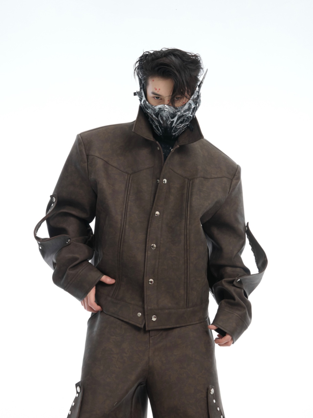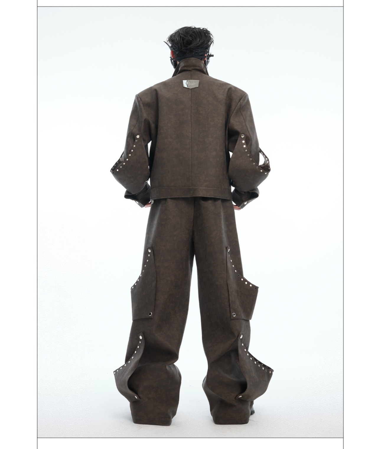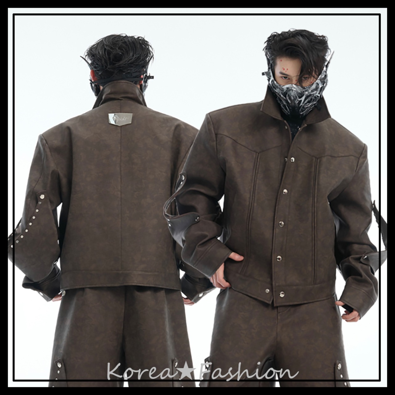 Argue Culture フェイクレザージャケットスタッズ切替ストリート