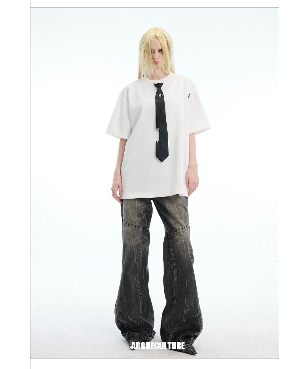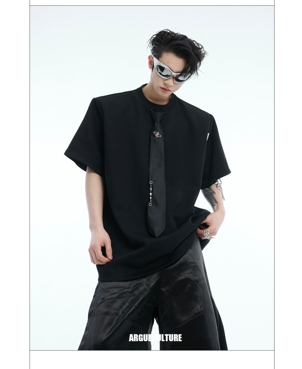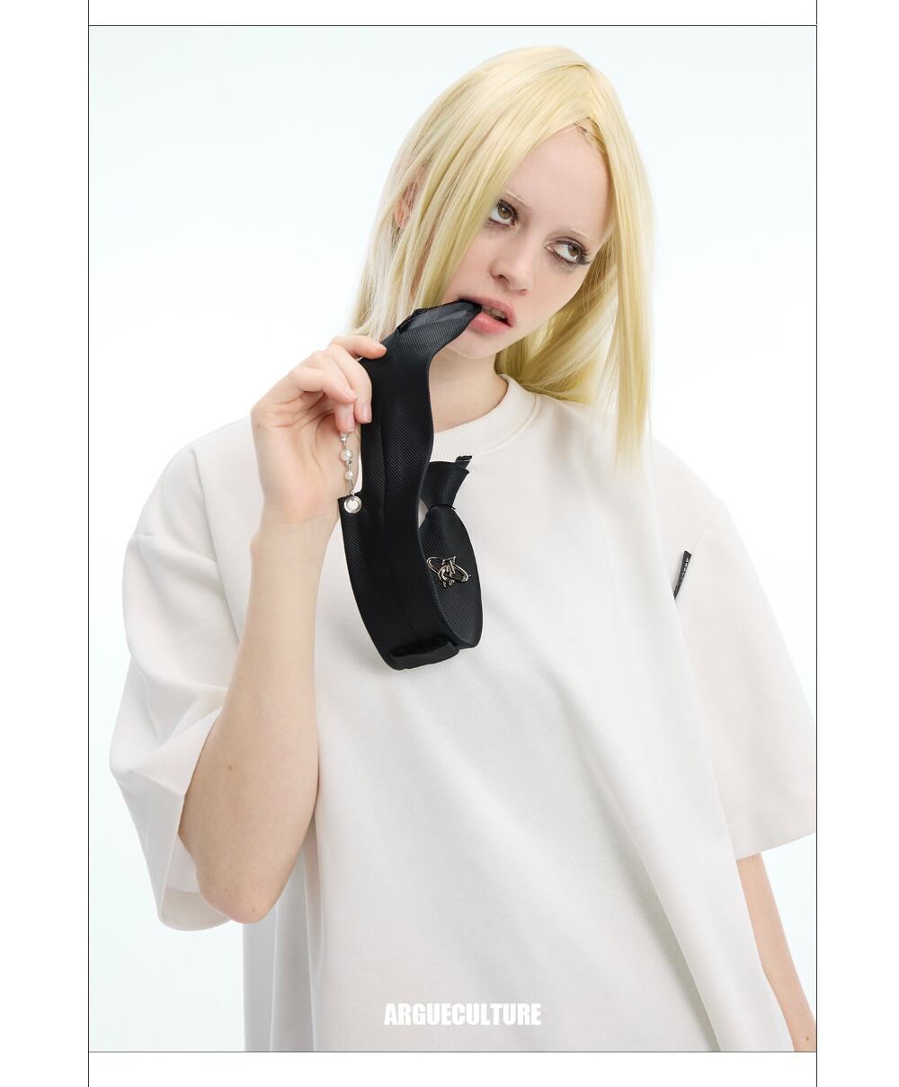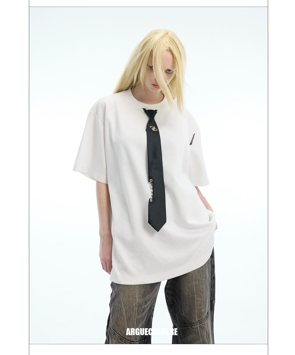 Argue Culture Tシャツロゴ入りネクタイ飾りゆったり肩パッド
