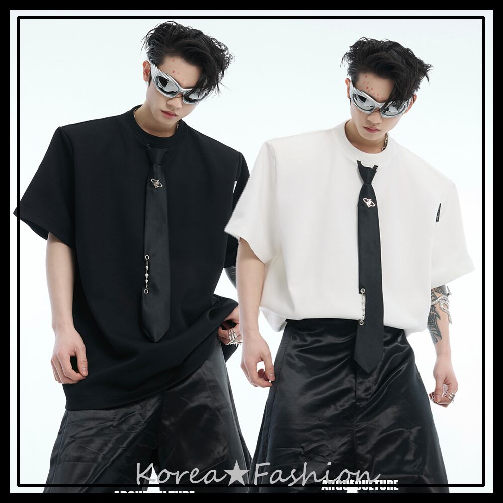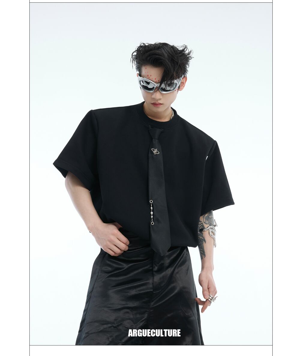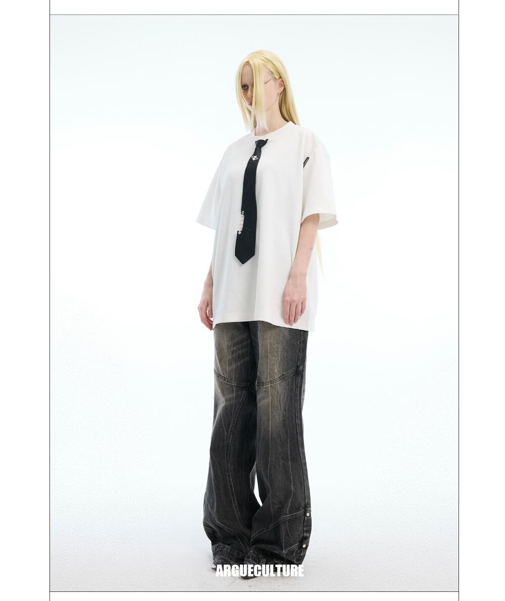 Argue Culture Tシャツロゴ入りネクタイ飾りゆったり肩パッド