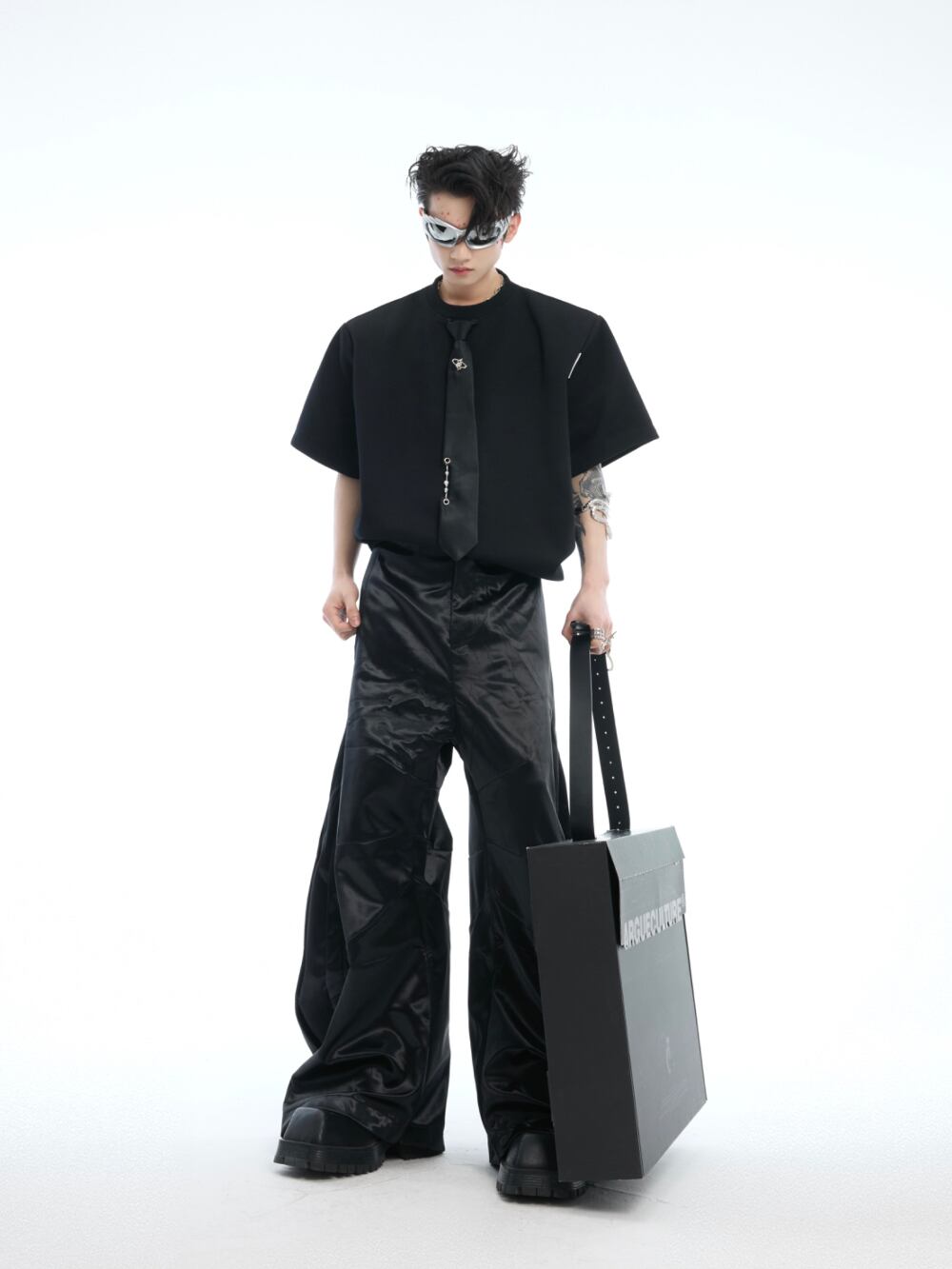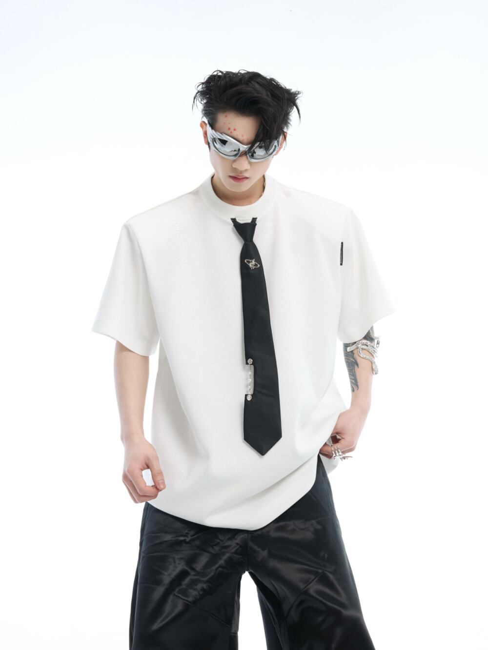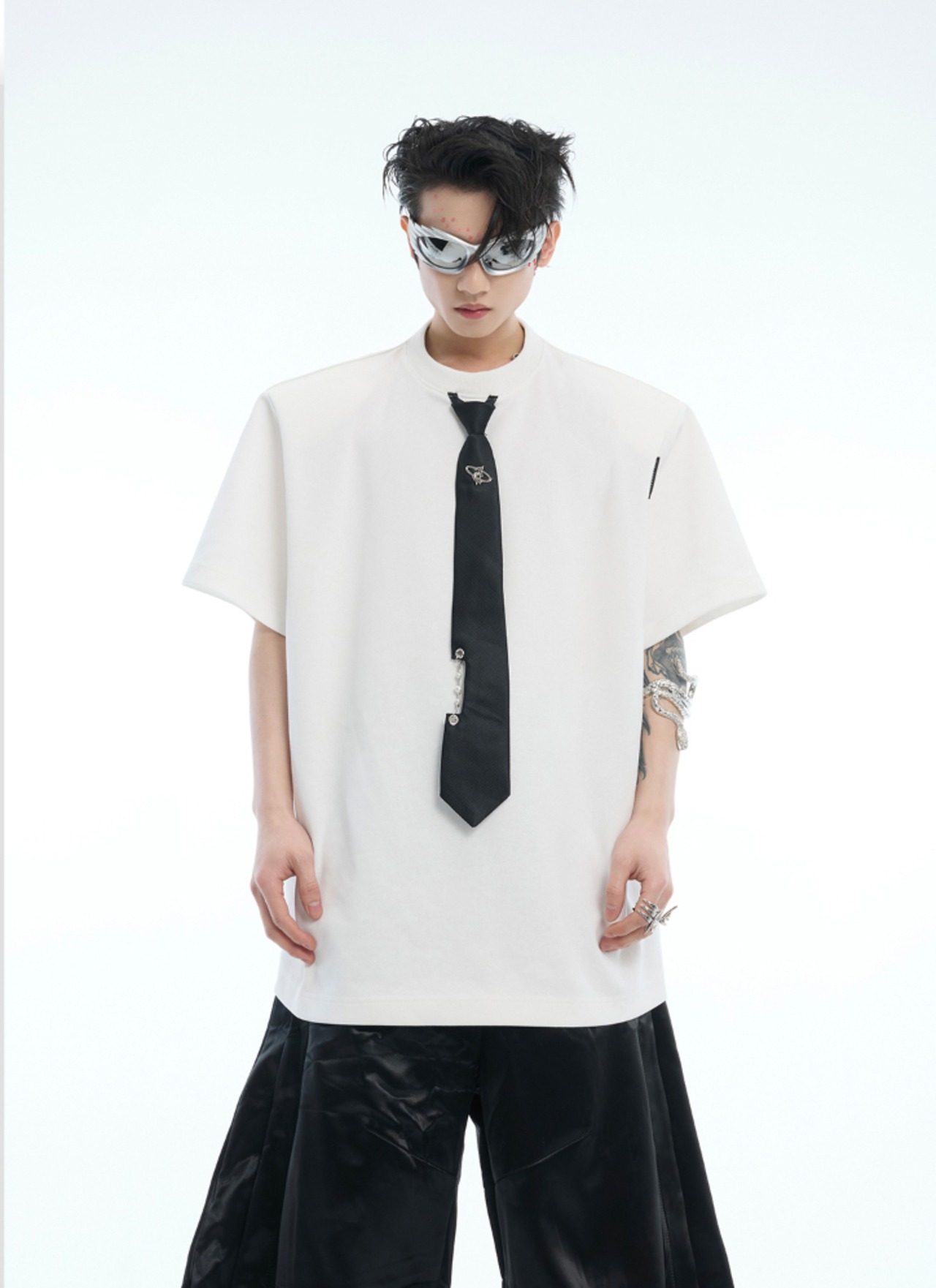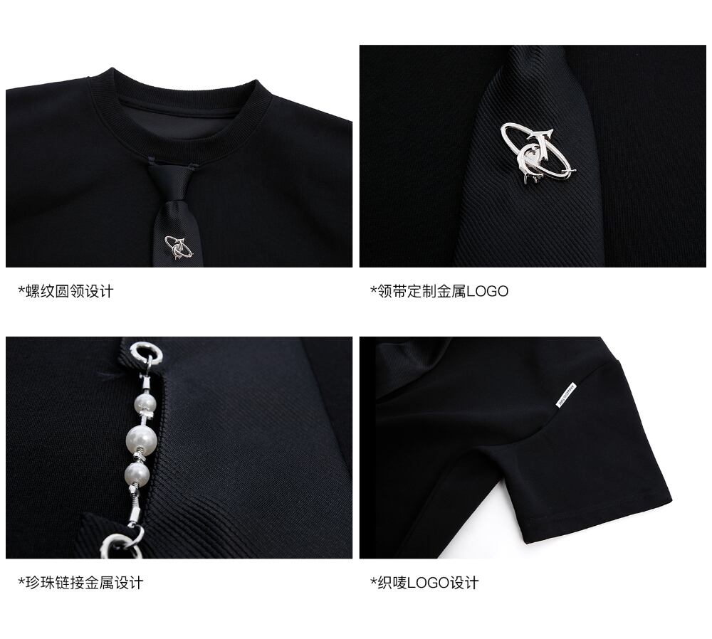 Argue Culture Tシャツロゴ入りネクタイ飾りゆったり肩パッド