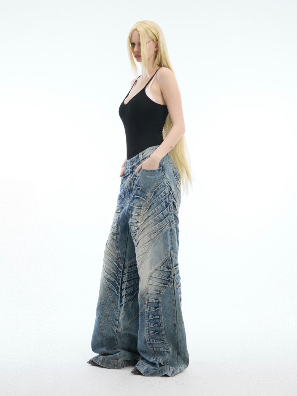 Argue Culture ワイド デニムパンツ ウォッシュド ジーンズ
