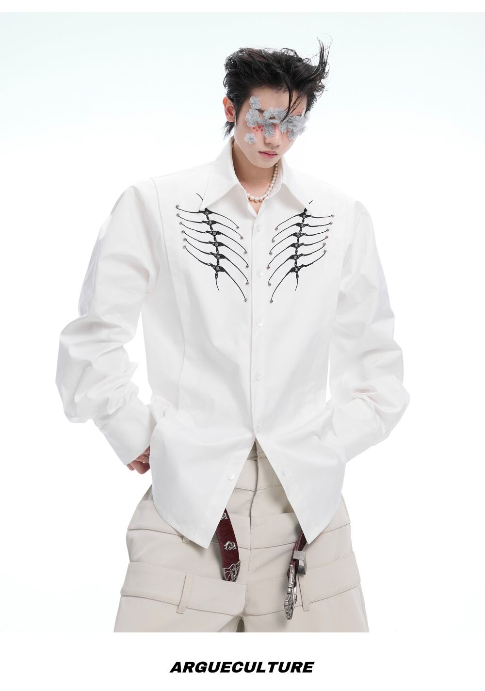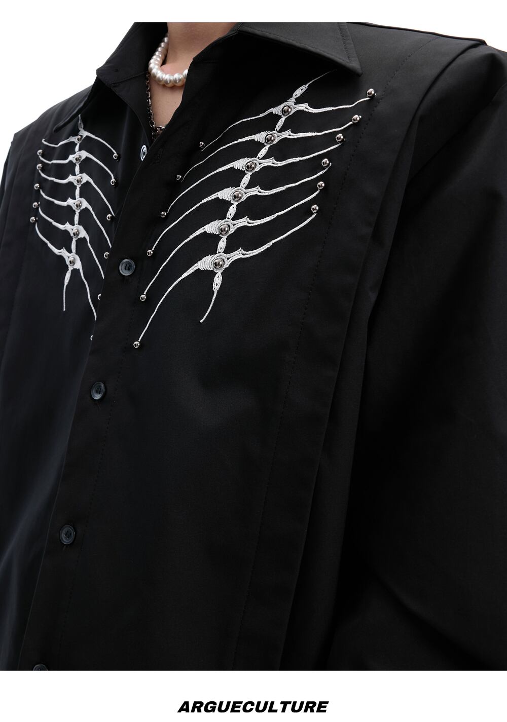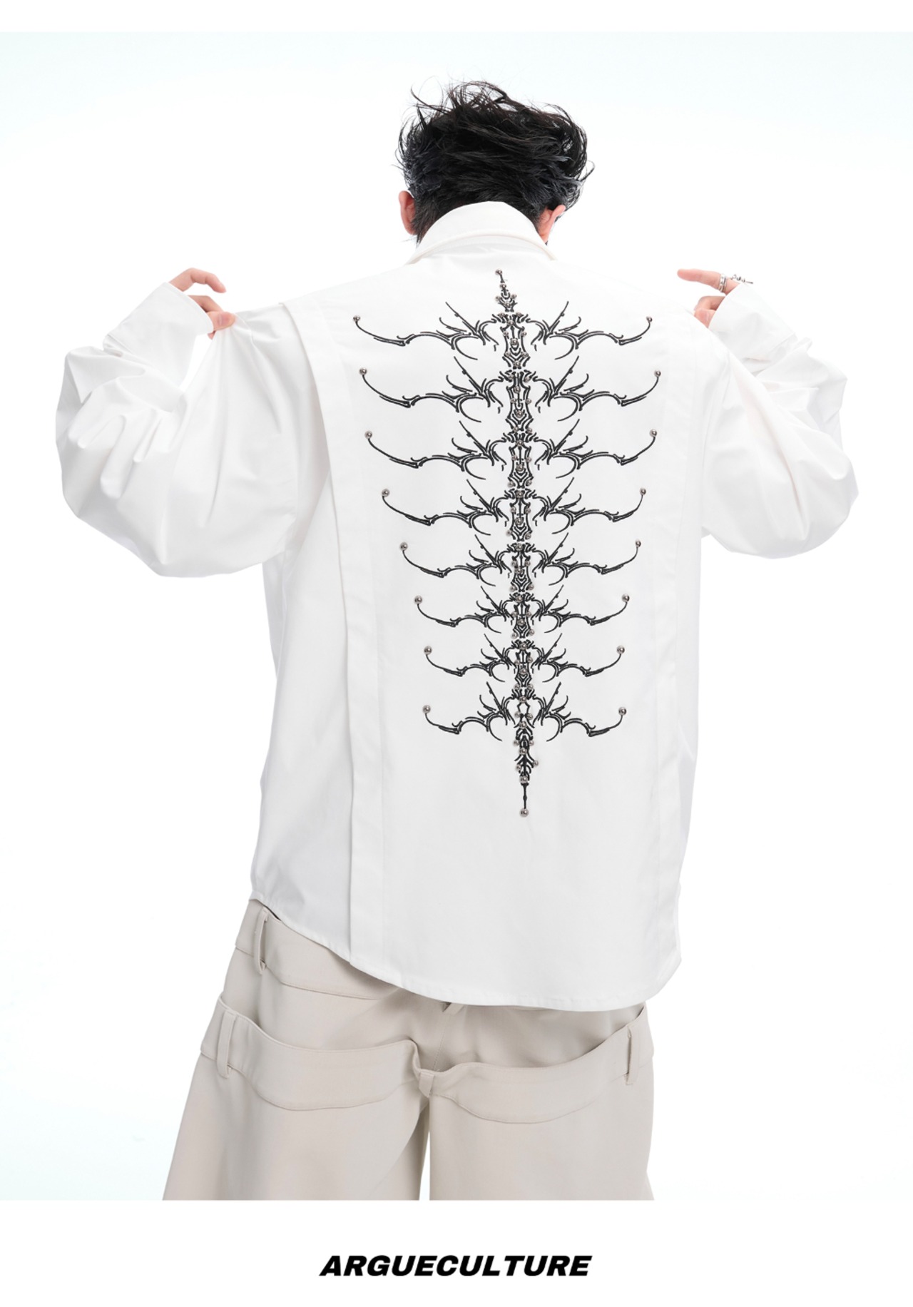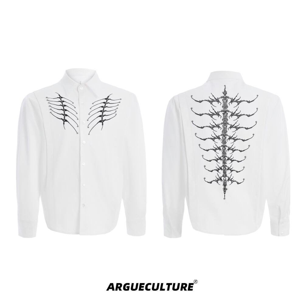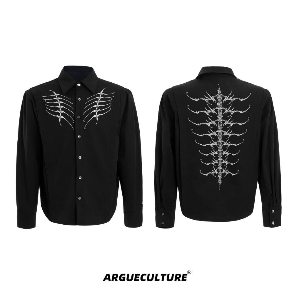 Argue Culture 長袖シャツ背骨刺繍スタッズ入りおしゃれユニセックス