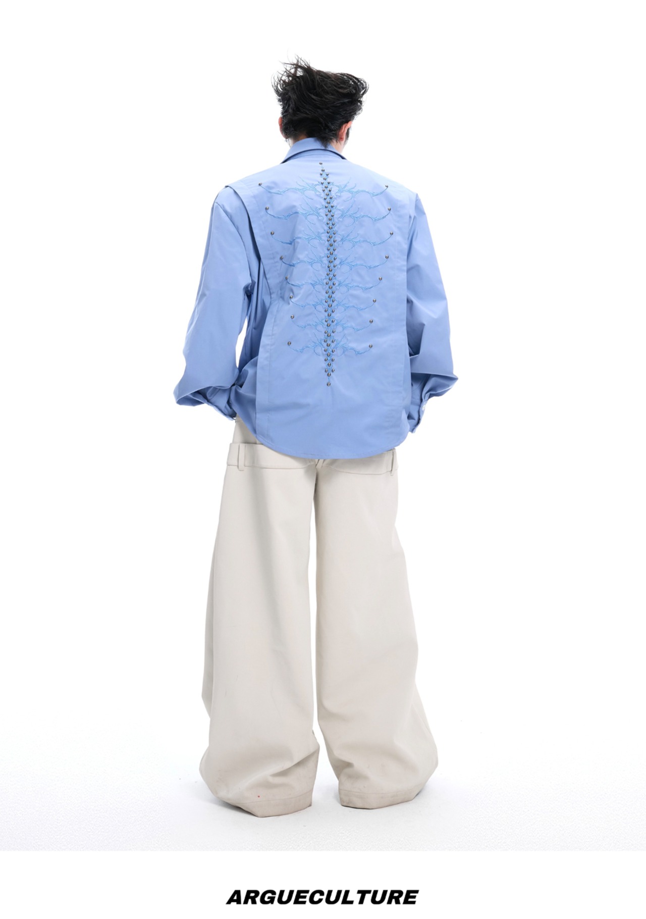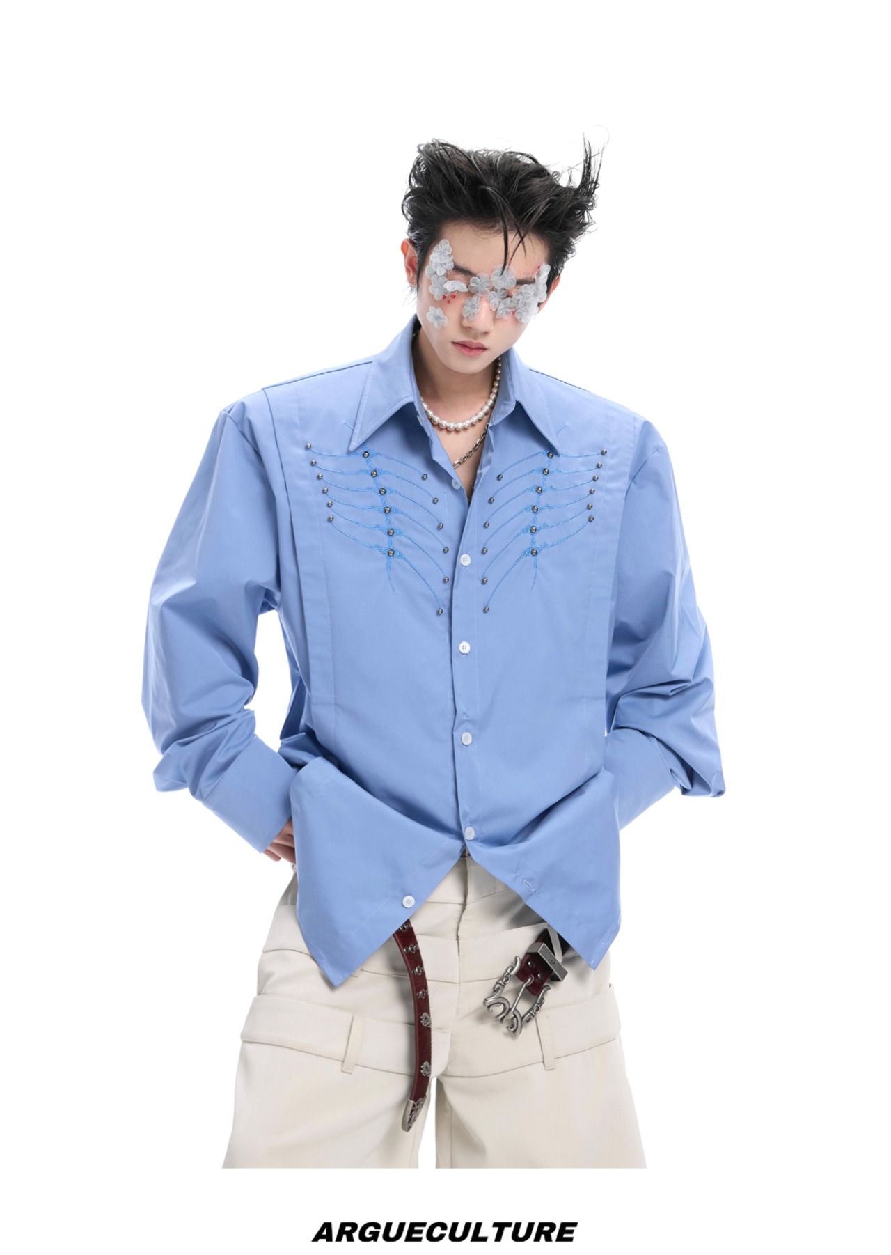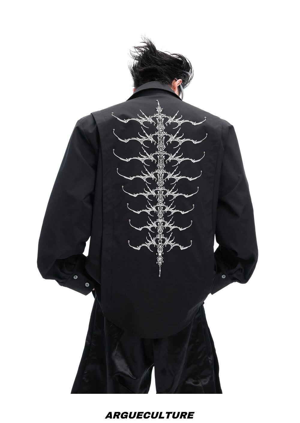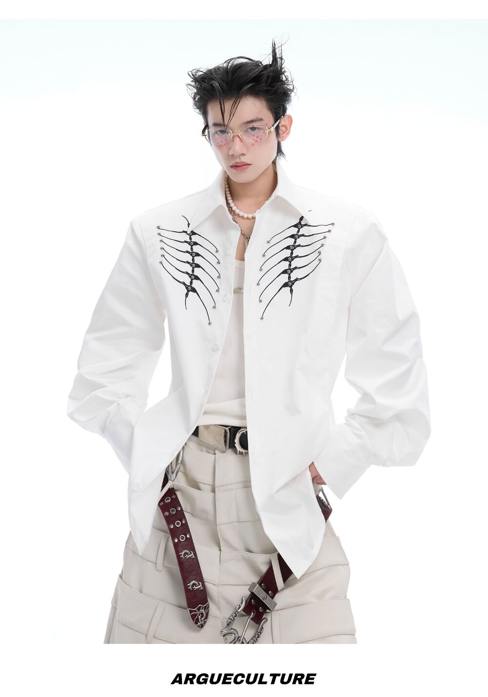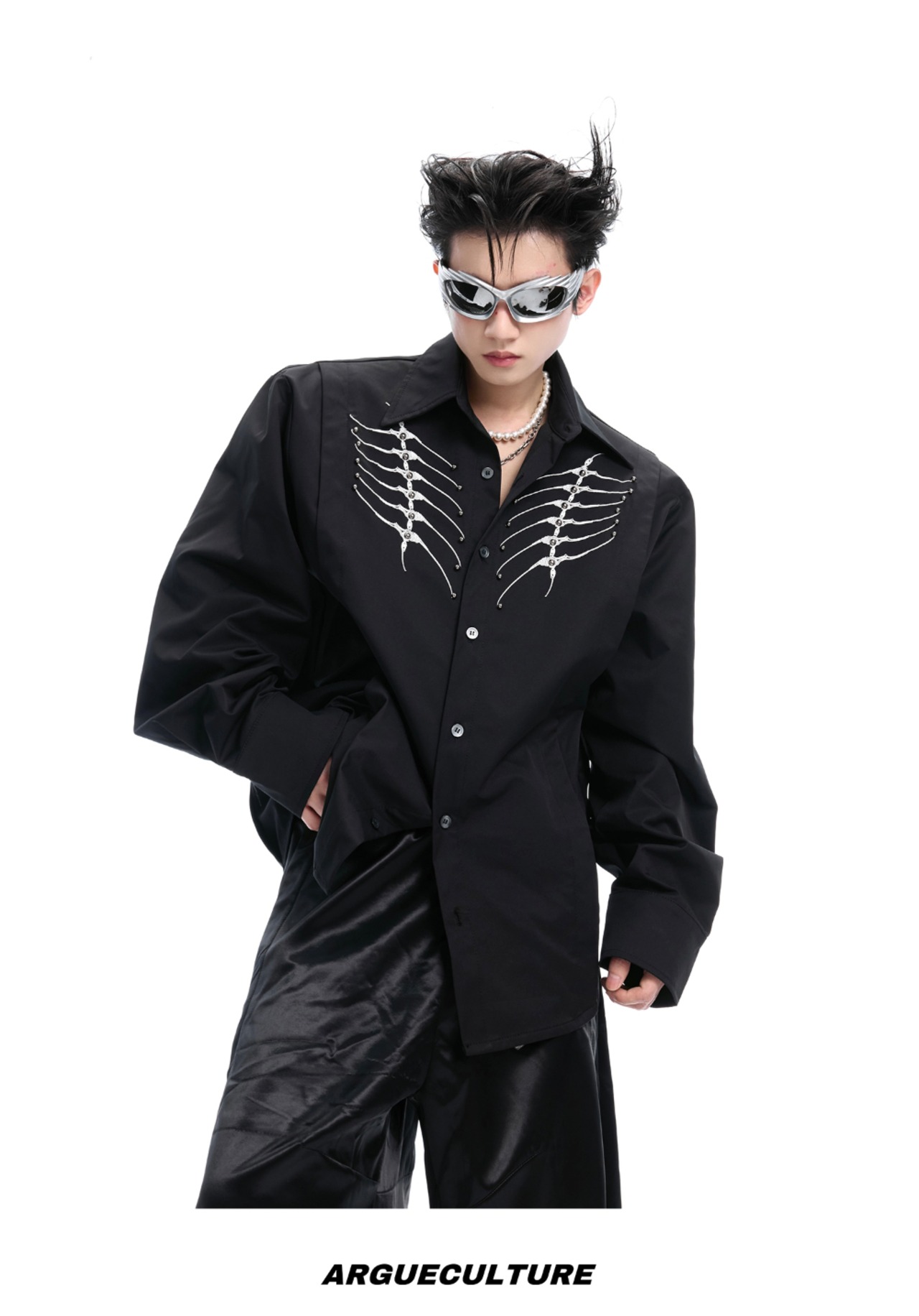 Argue Culture 長袖シャツ背骨刺繍スタッズ入りおしゃれユニセックス