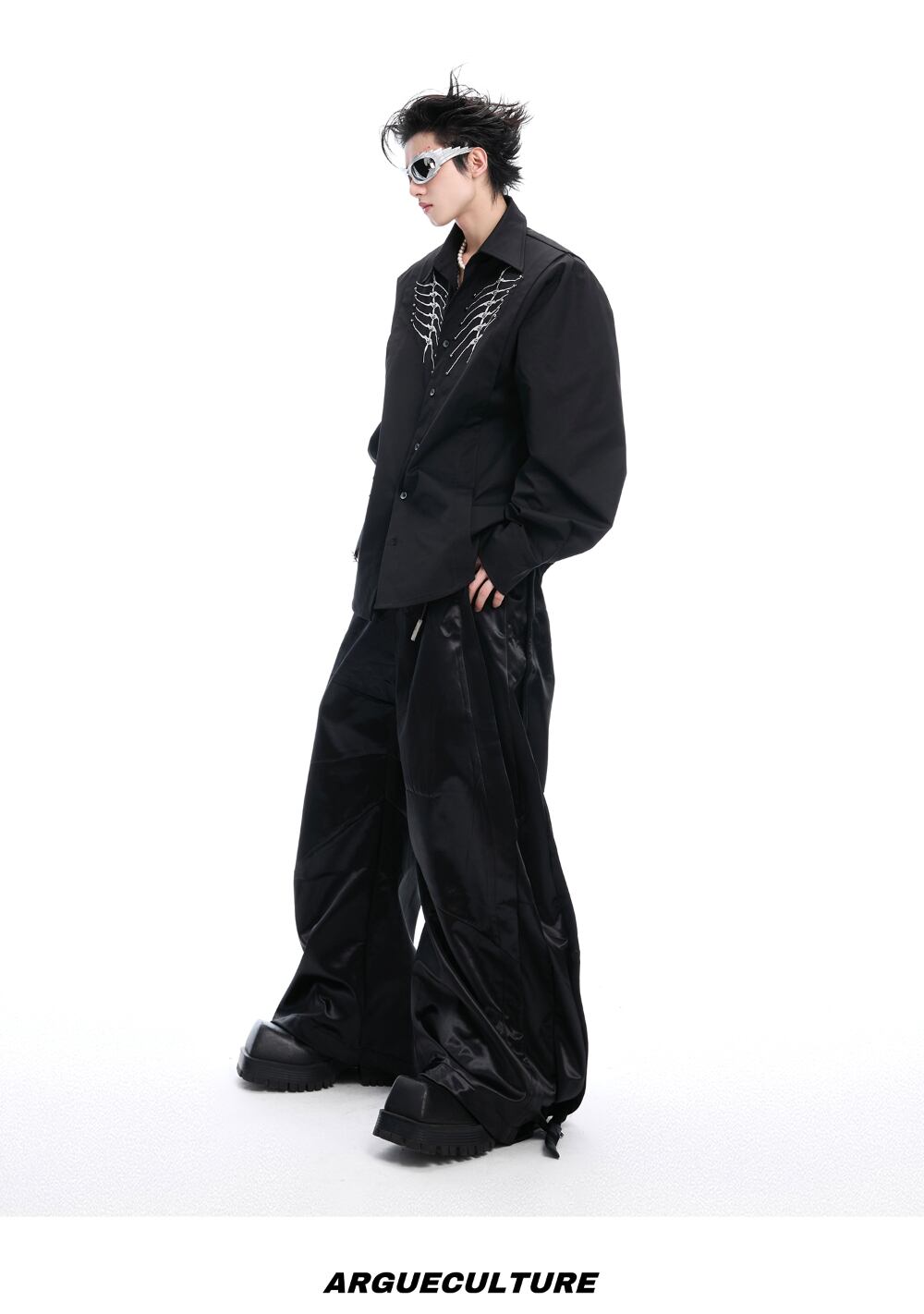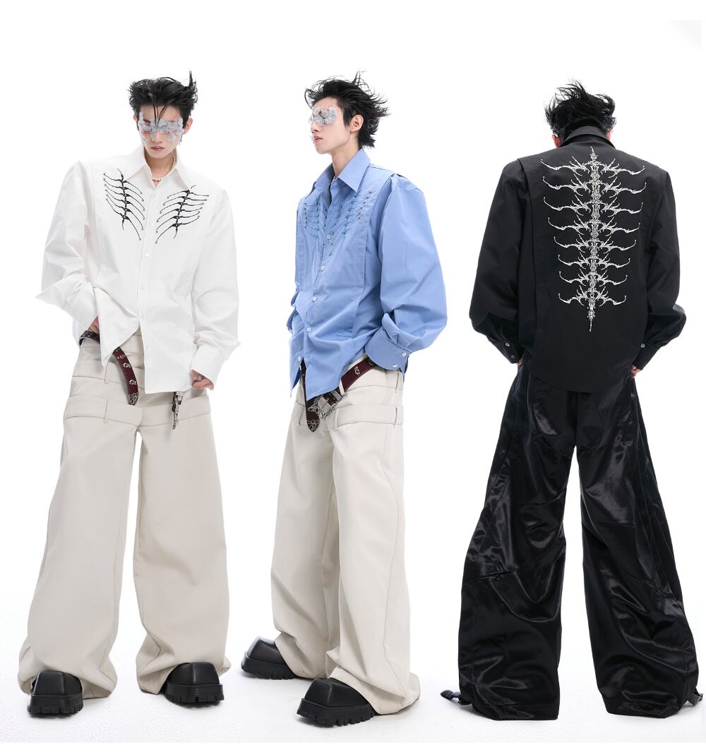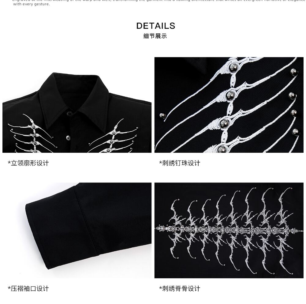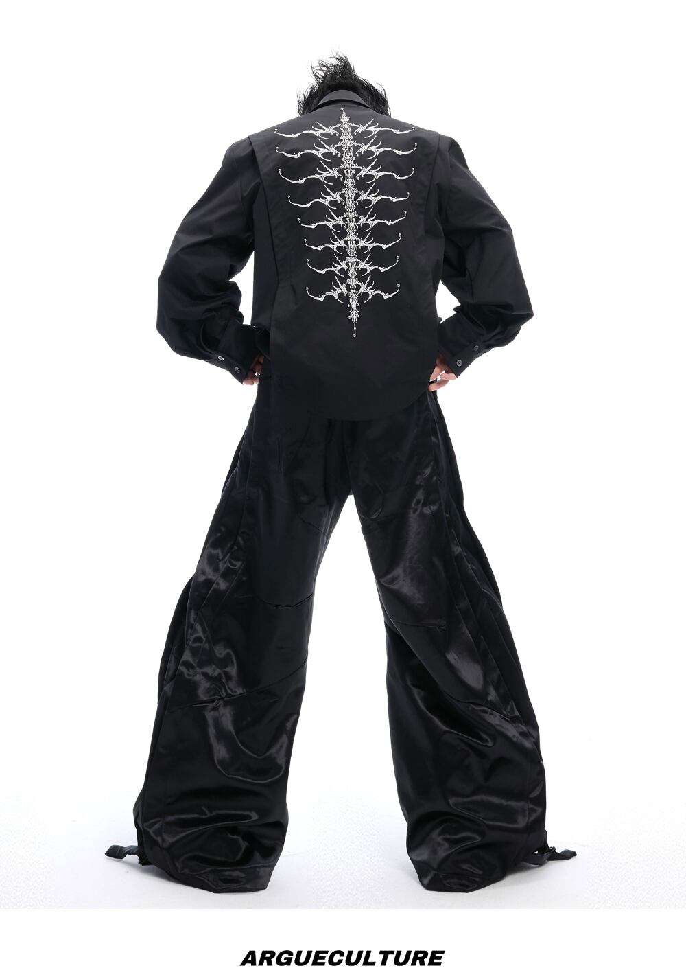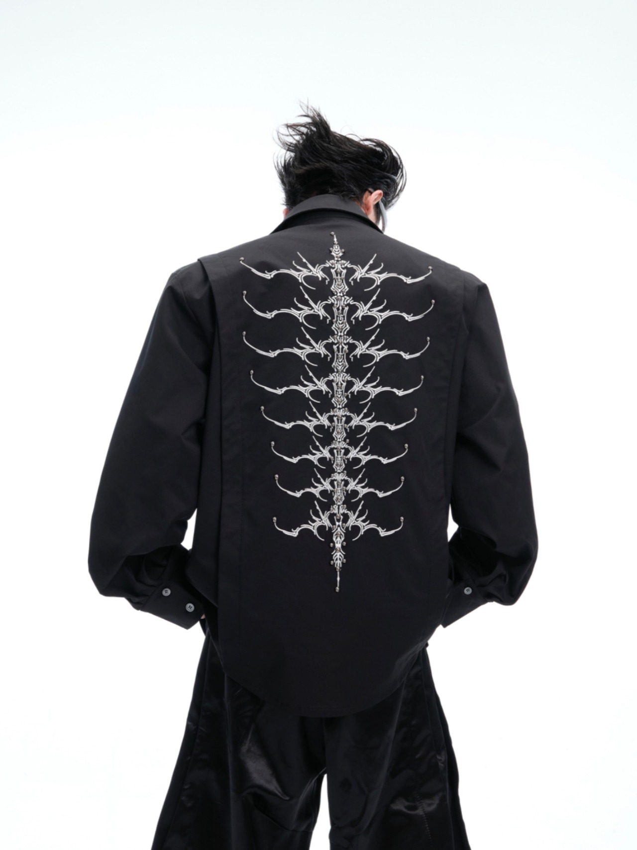 Argue Culture 長袖シャツ背骨刺繍スタッズ入りおしゃれユニセックス