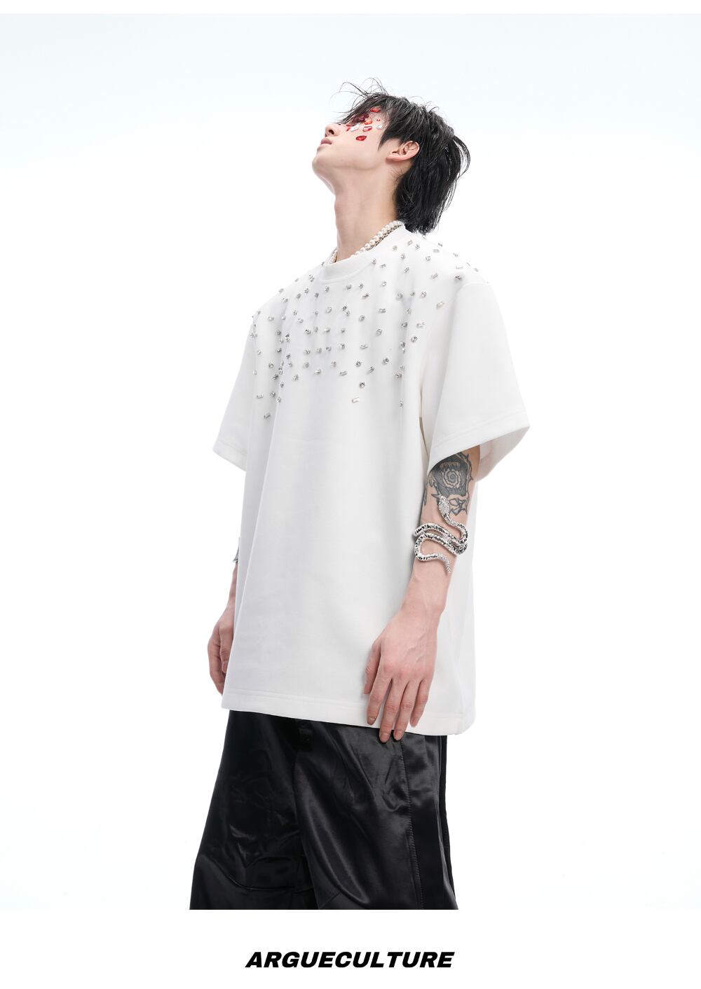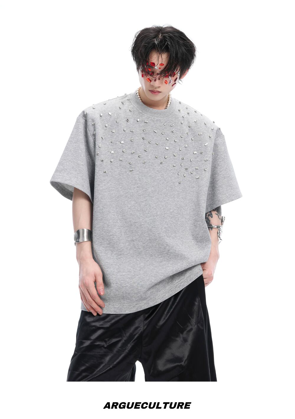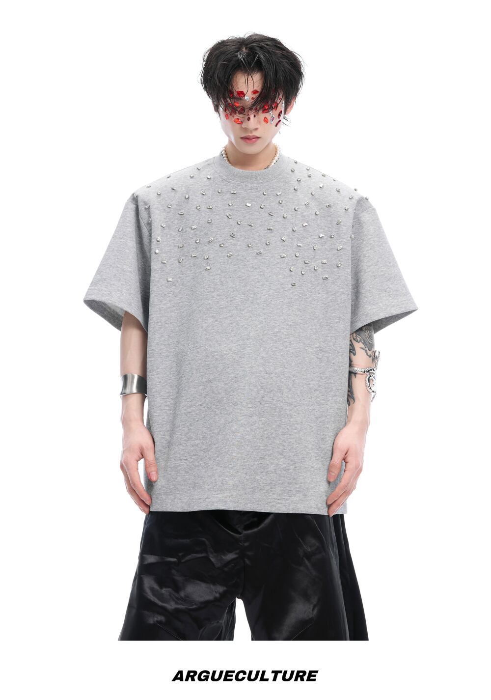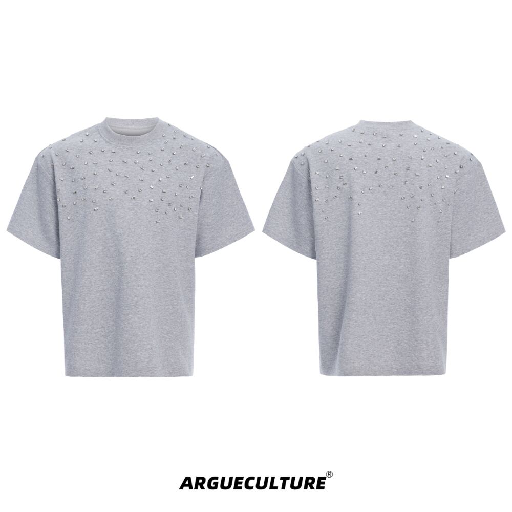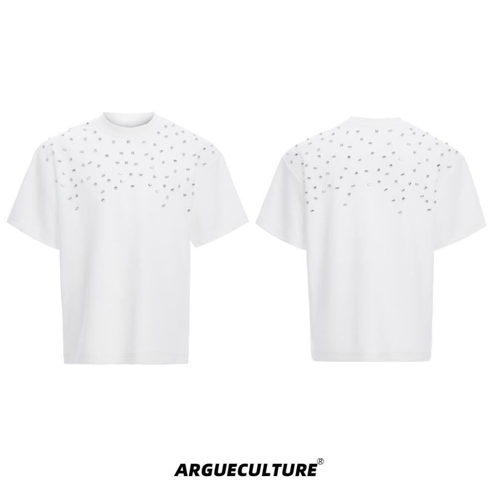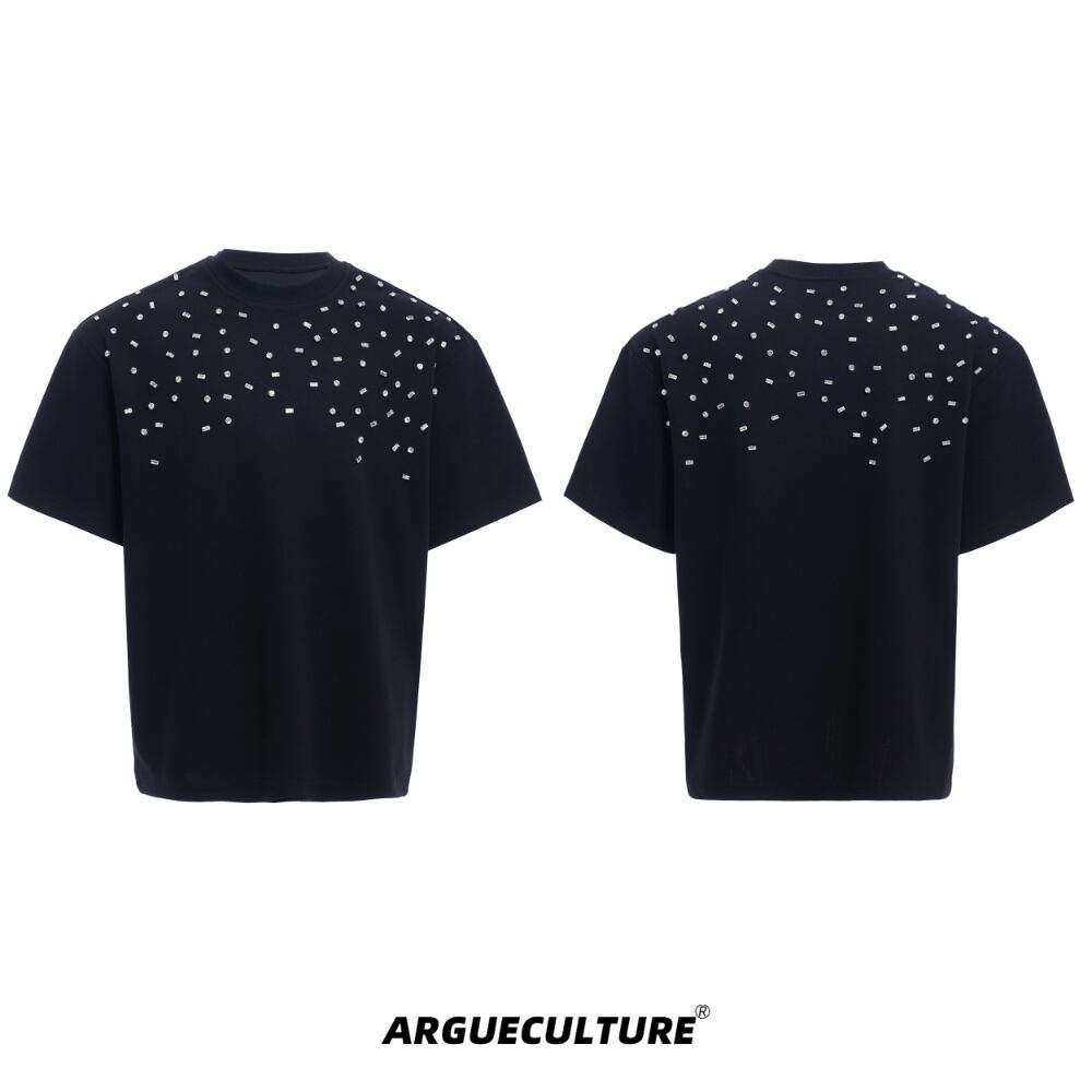 Argue Culture 半袖Tシャツロゴ入りビジュー付き男女兼用