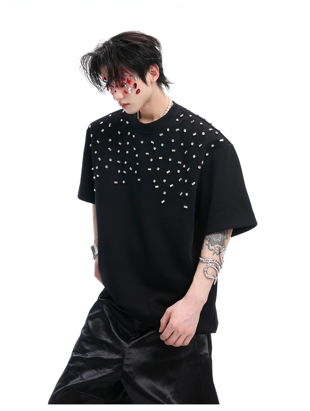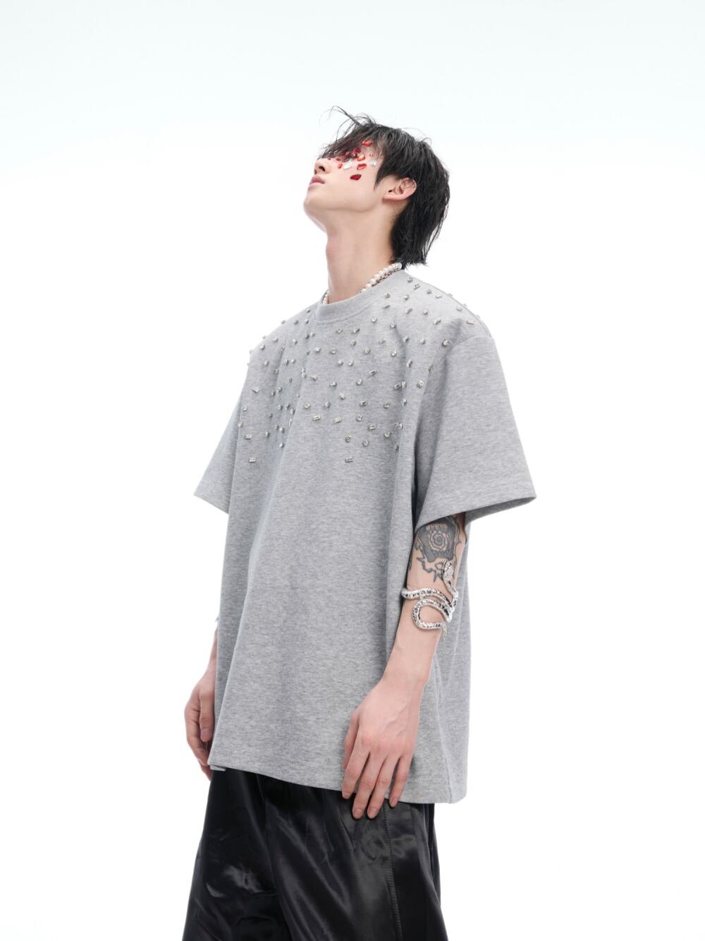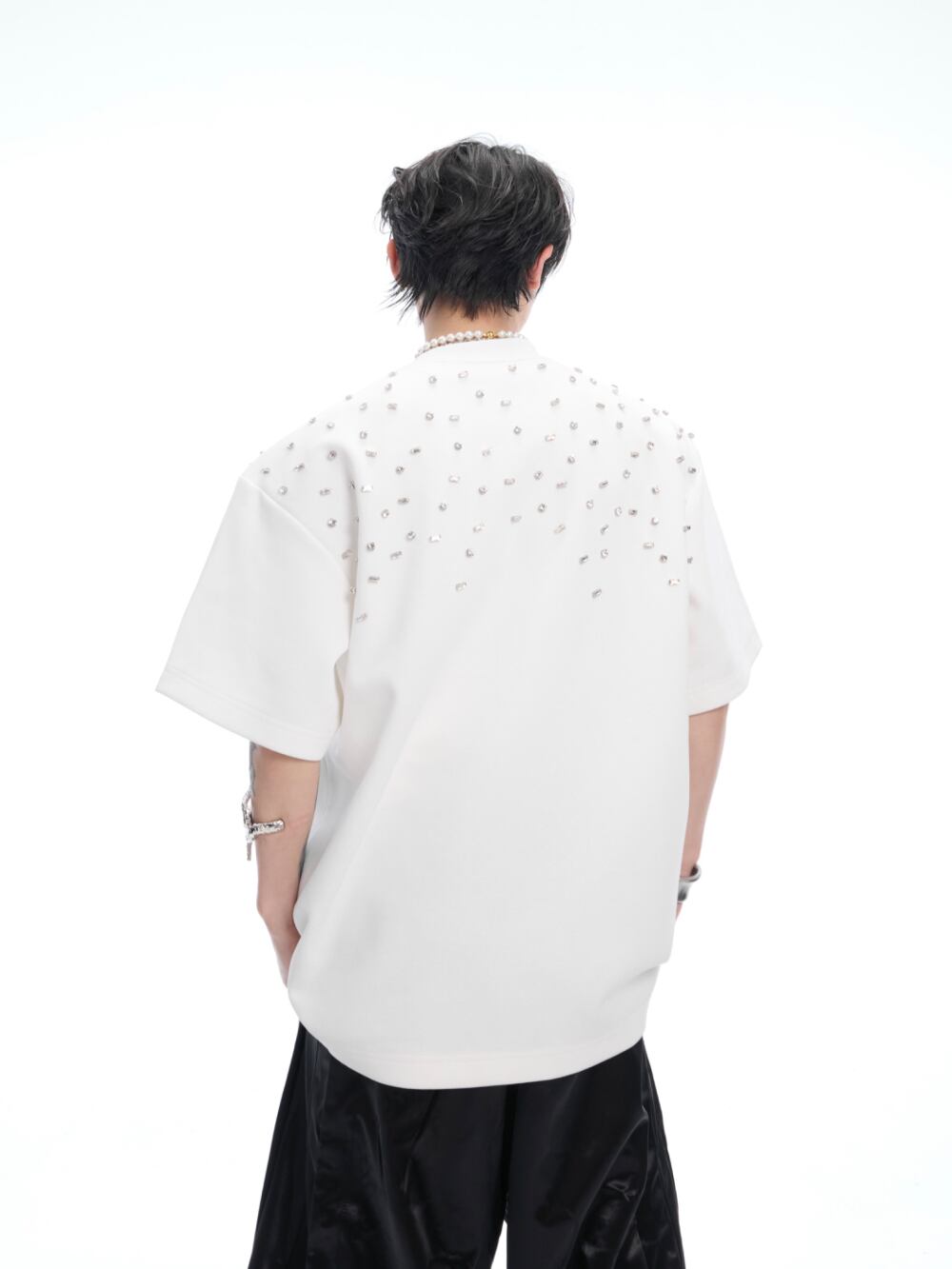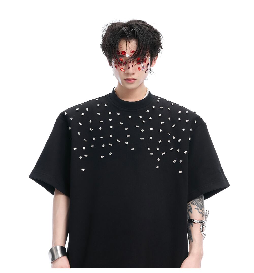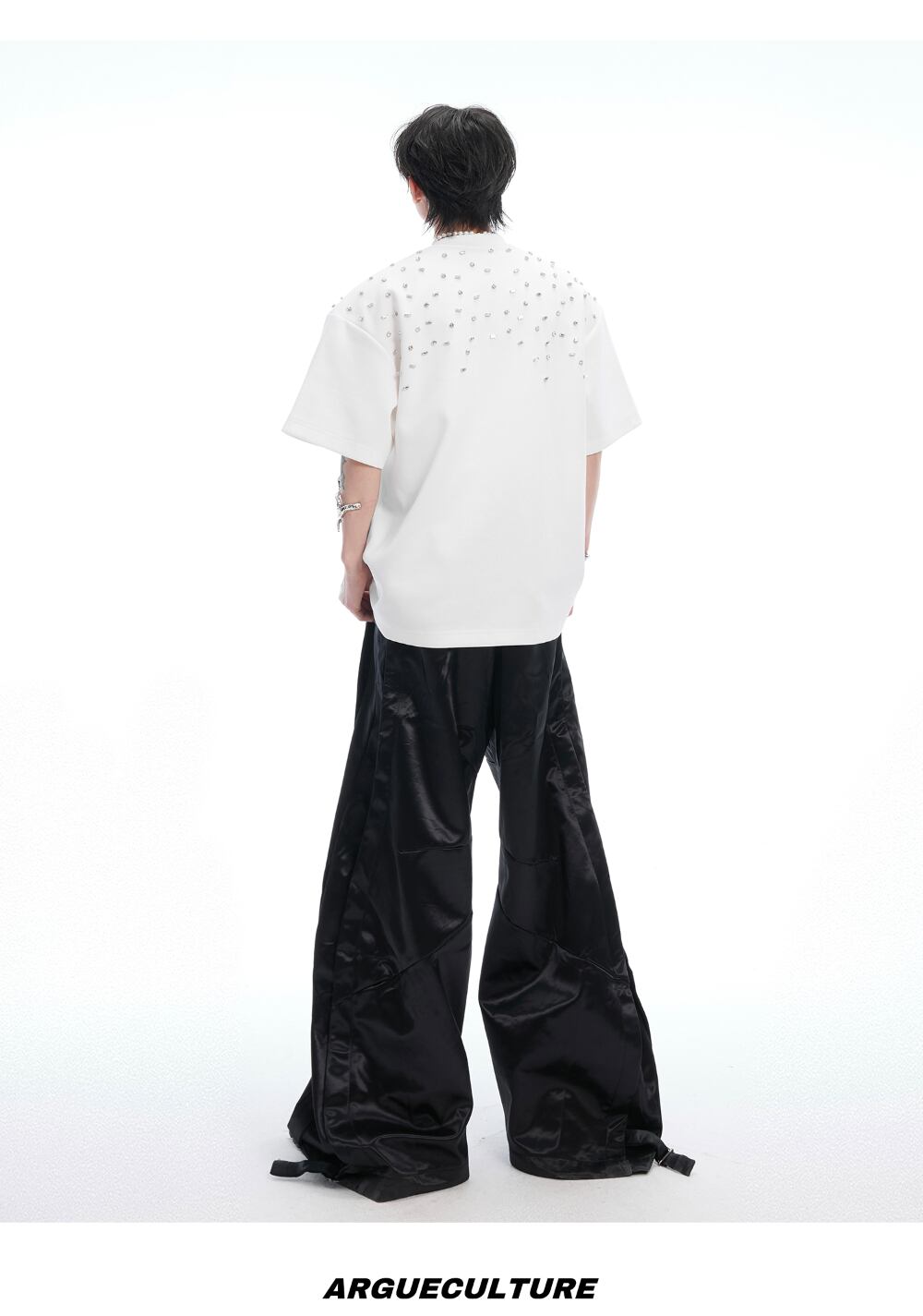Argue Culture 半袖Tシャツロゴ入りビジュー付き男女兼用