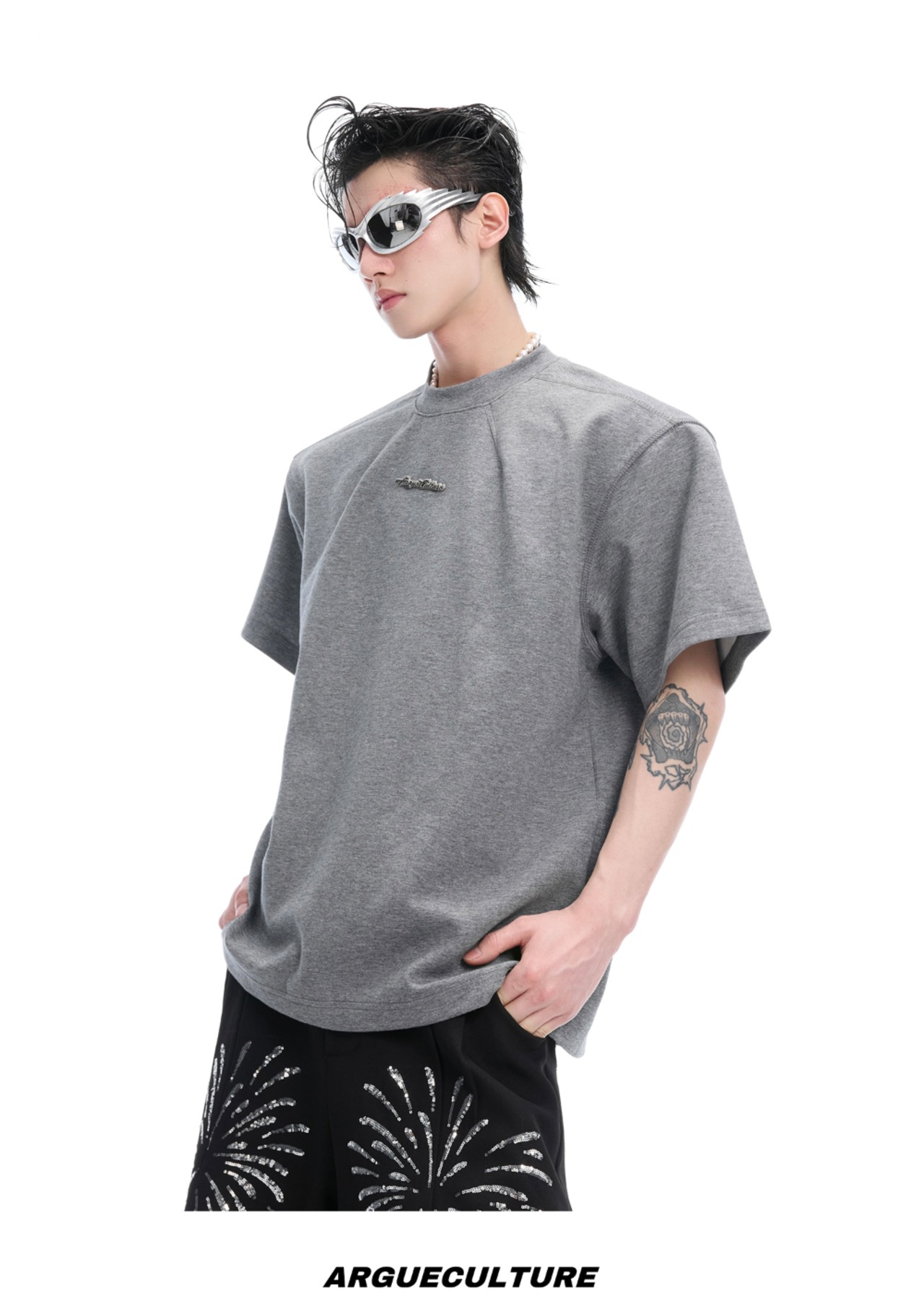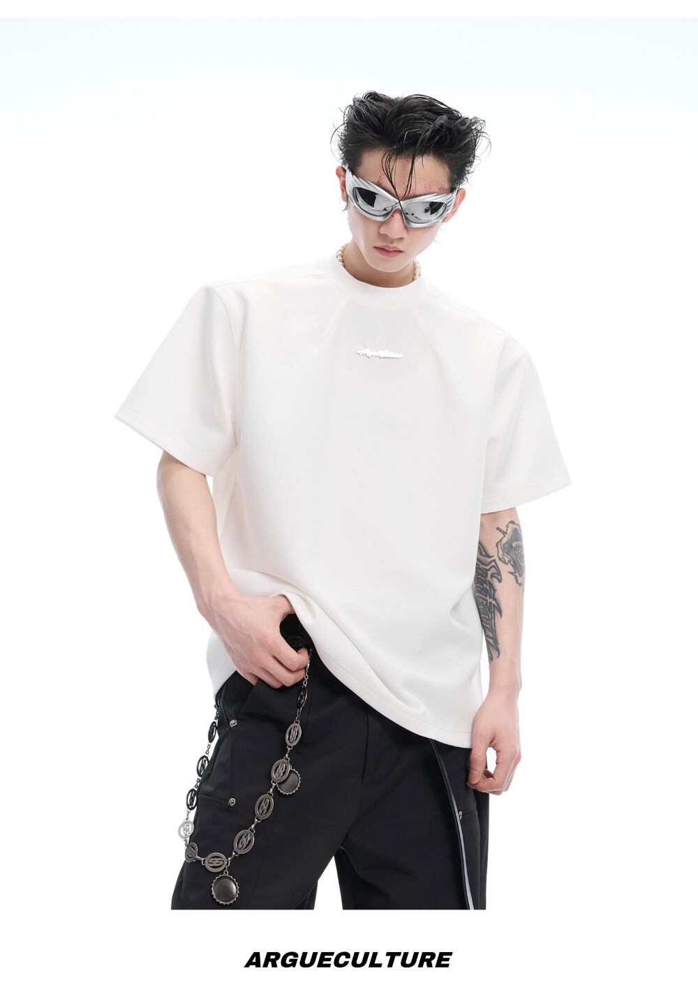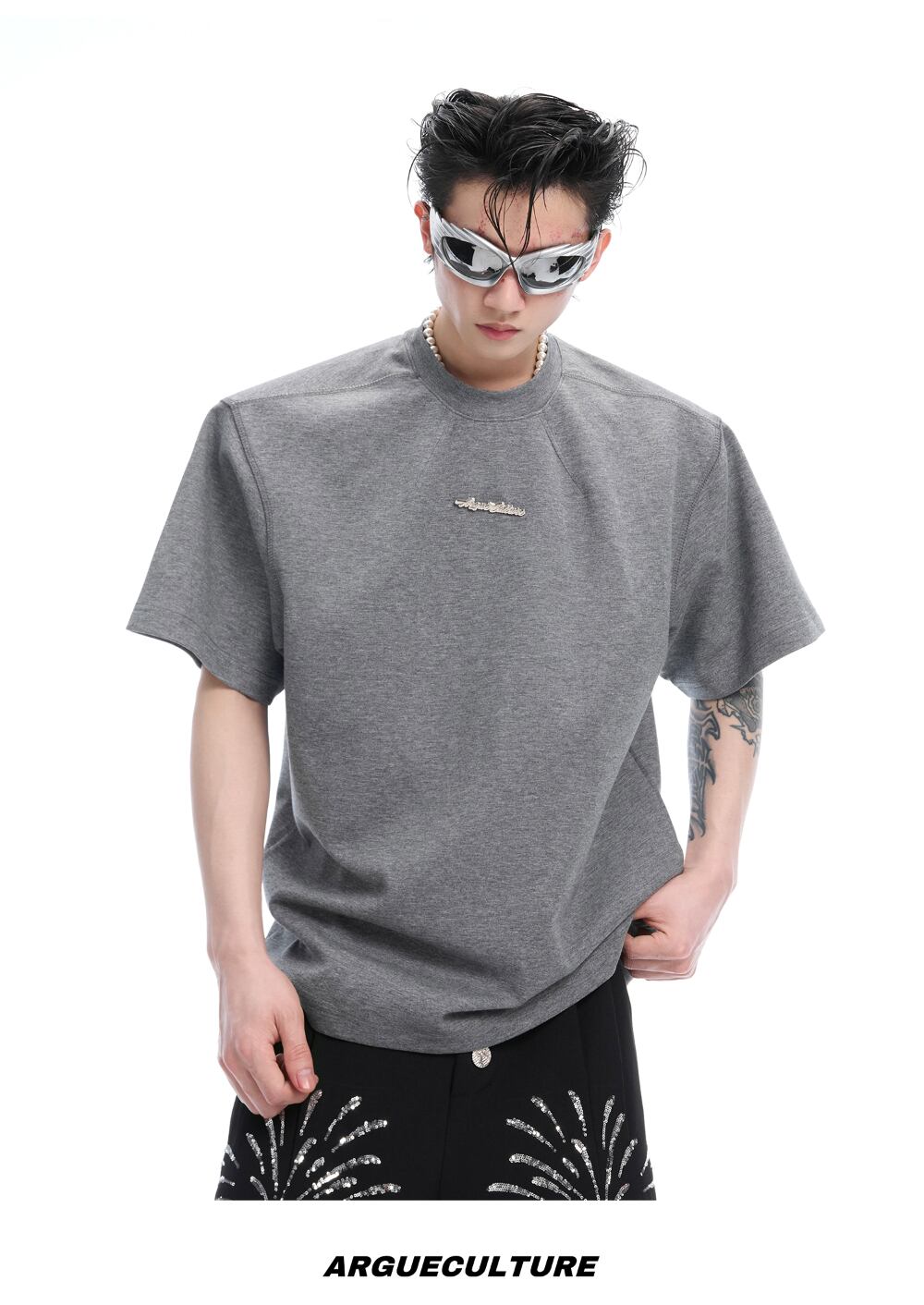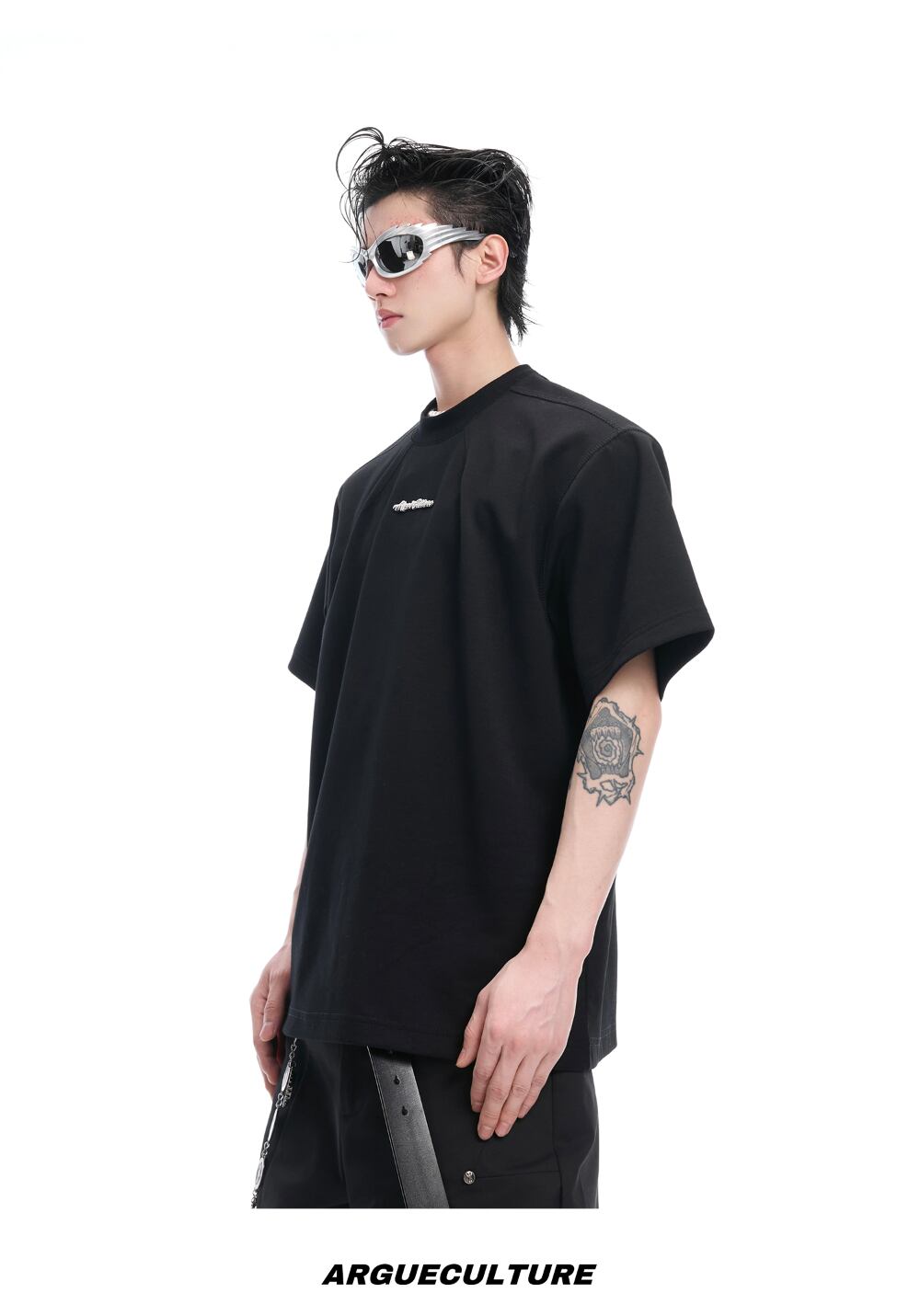 Argue Culture ベースTシャツロゴ入りシンプルゆったり男女兼用