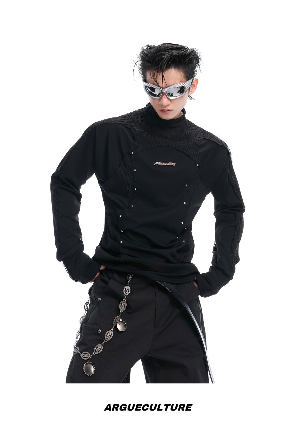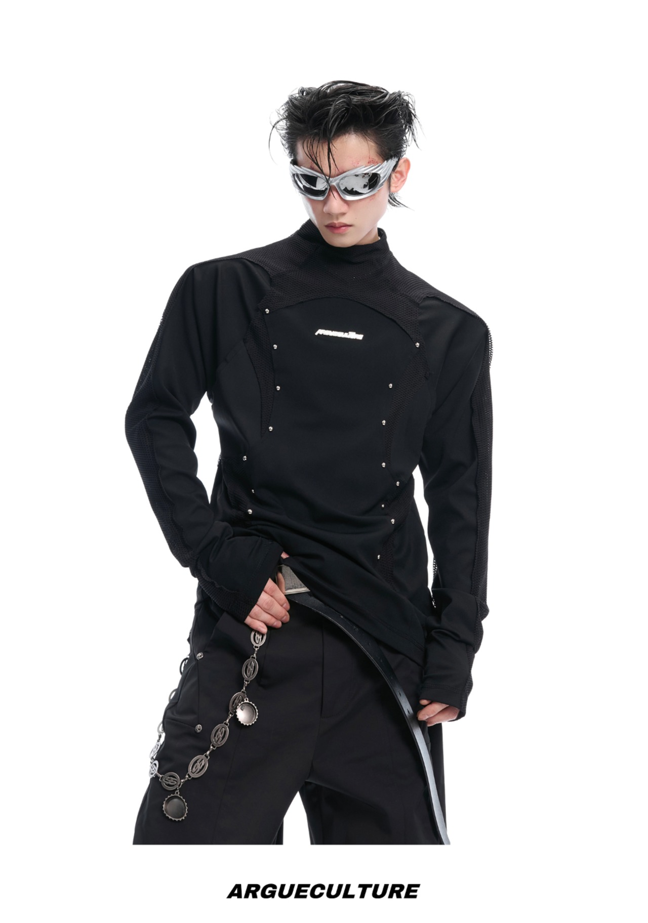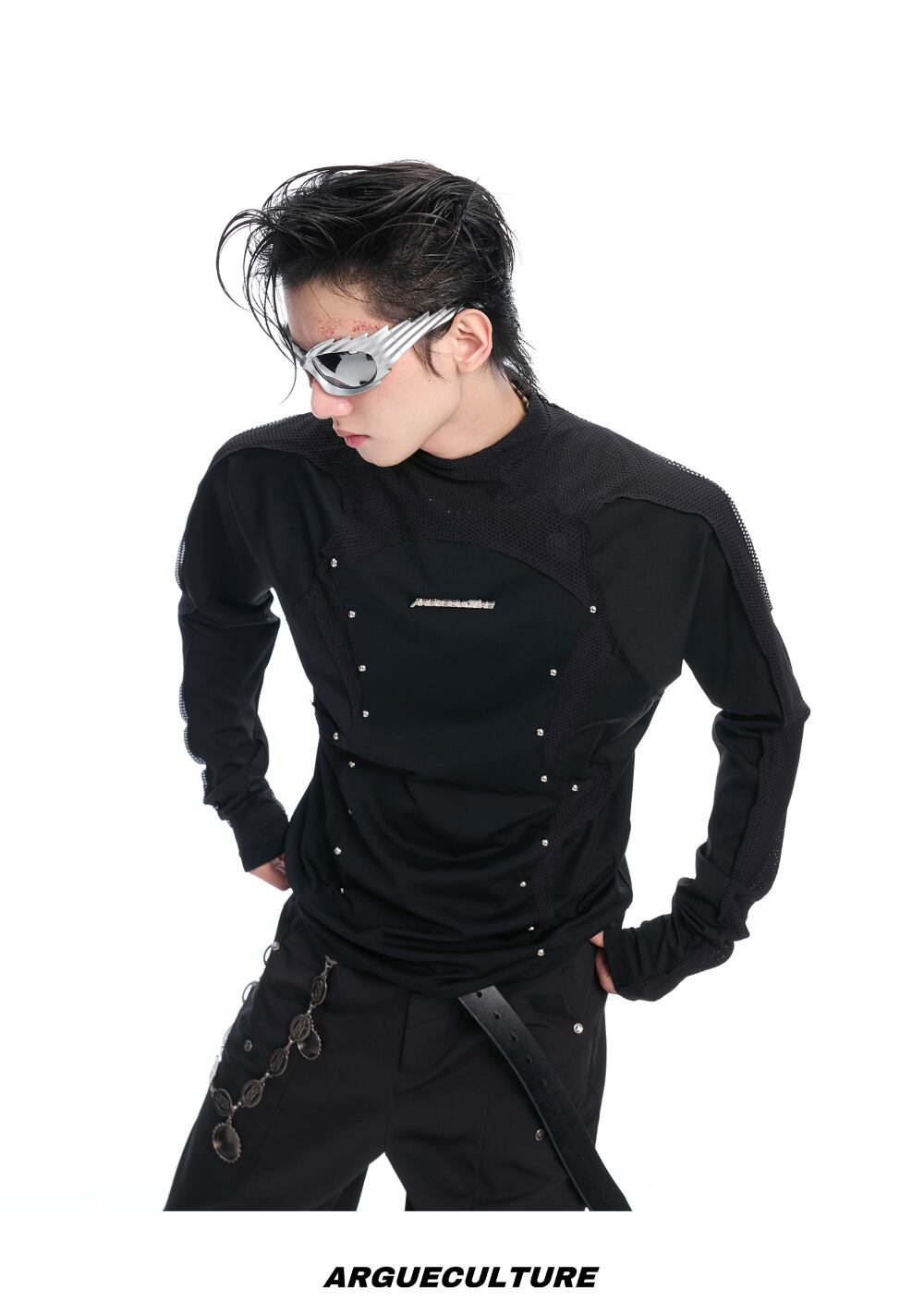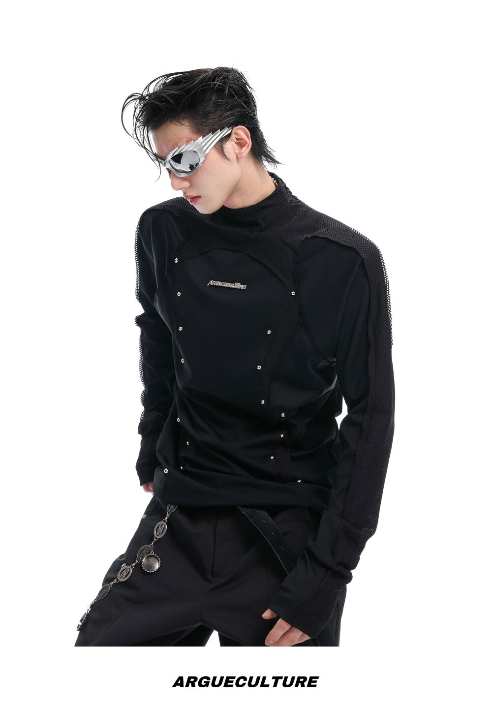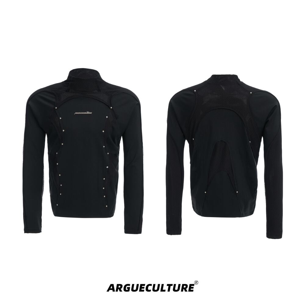 Argue Culture メッシュ切替スリムロンTスタッズインナーロゴ