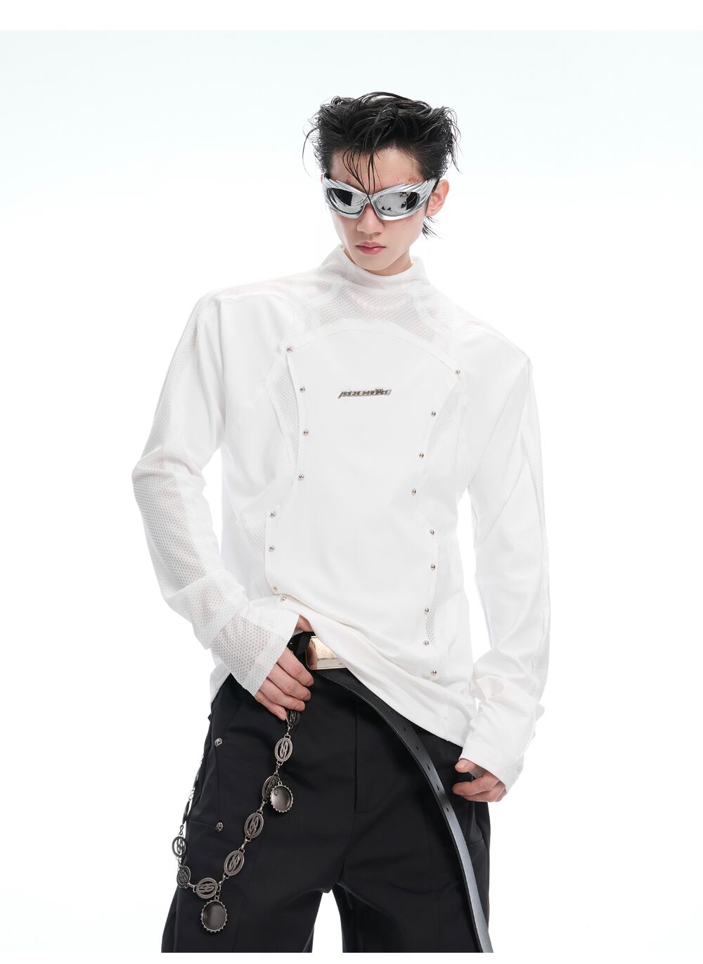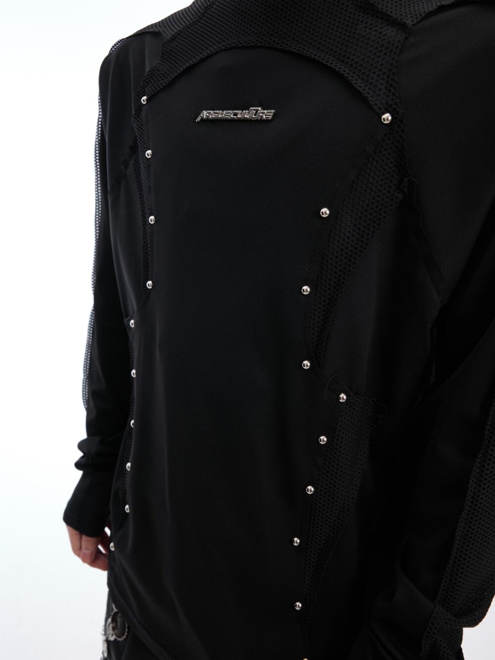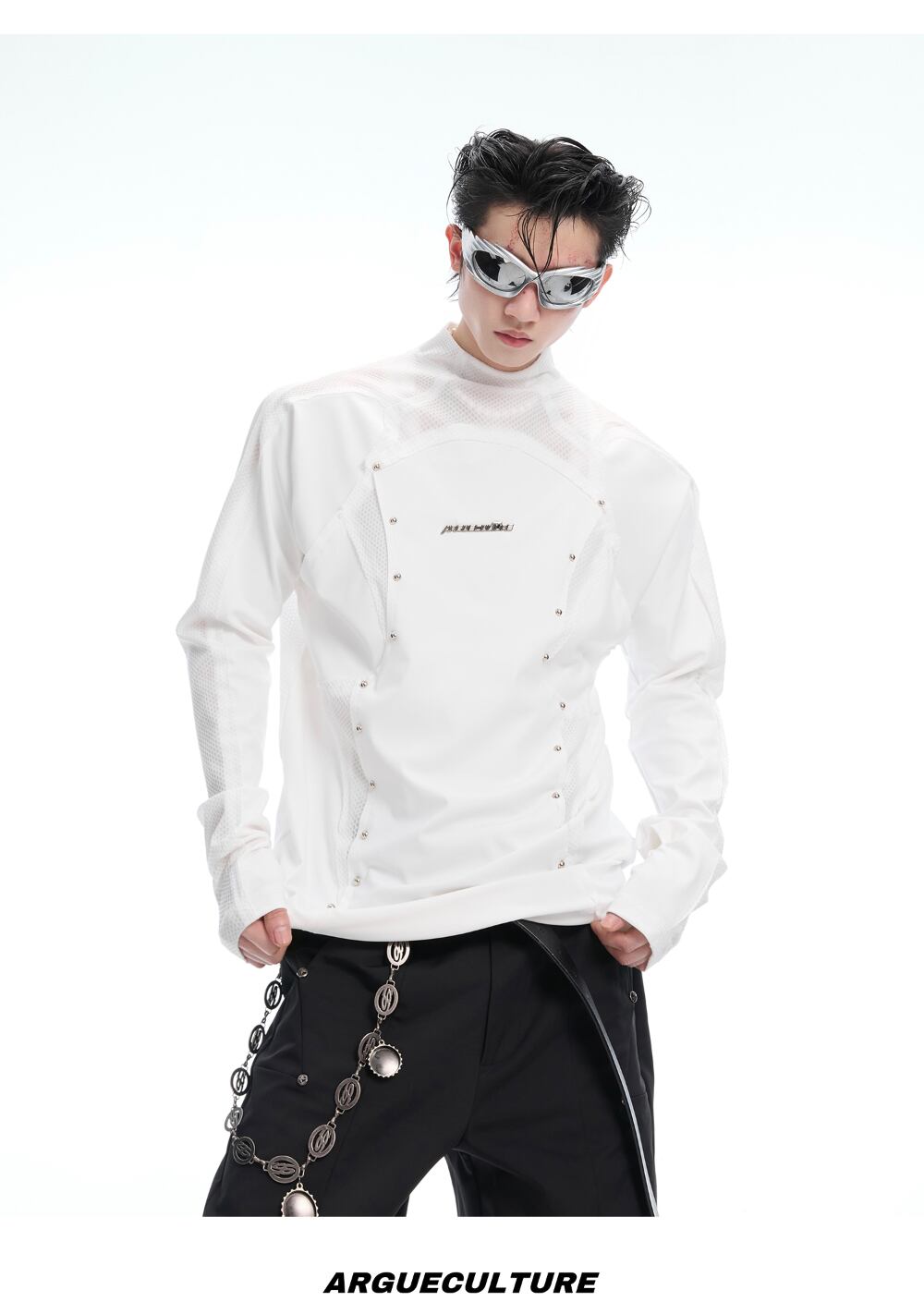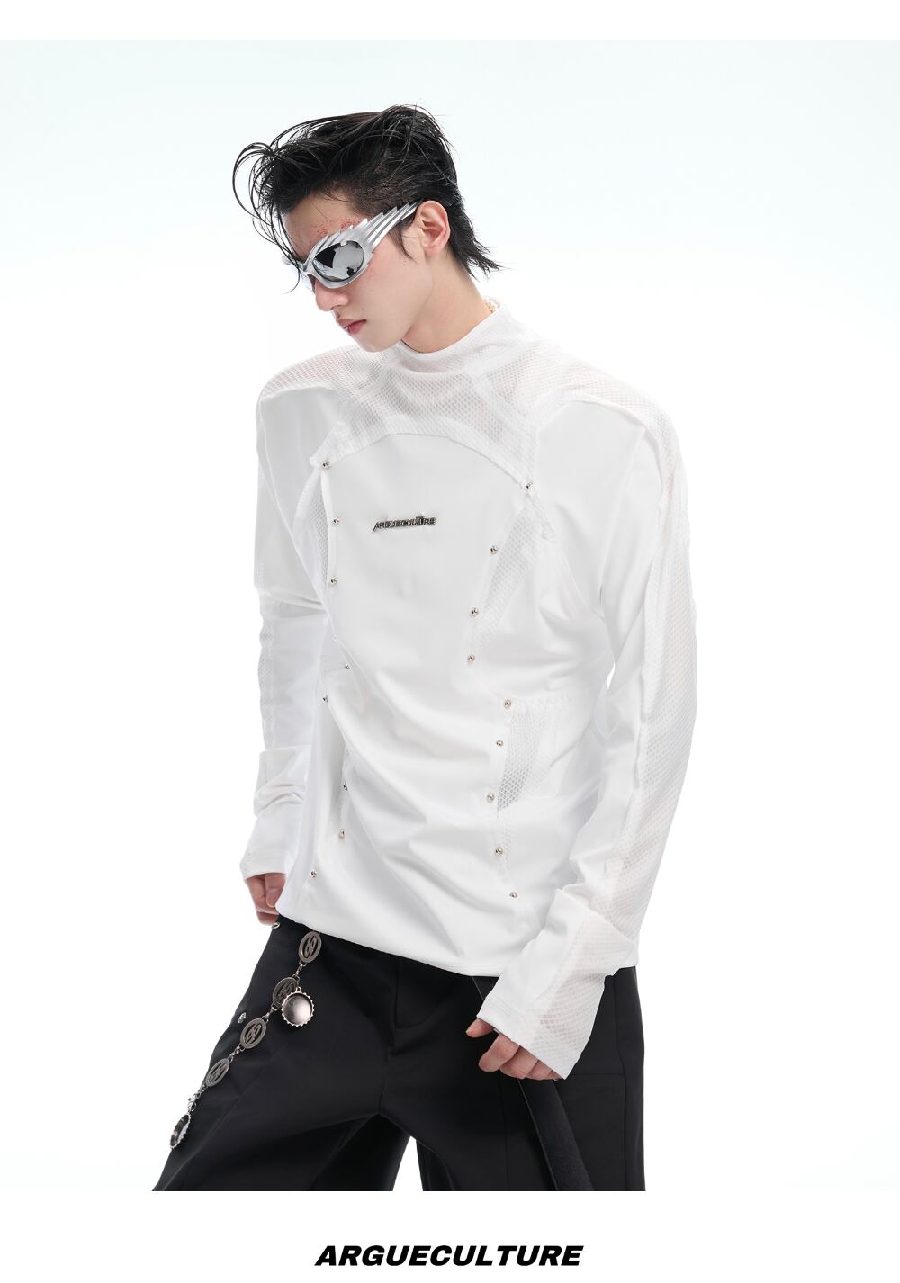Argue Culture メッシュ切替スリムロンTスタッズインナーロゴ