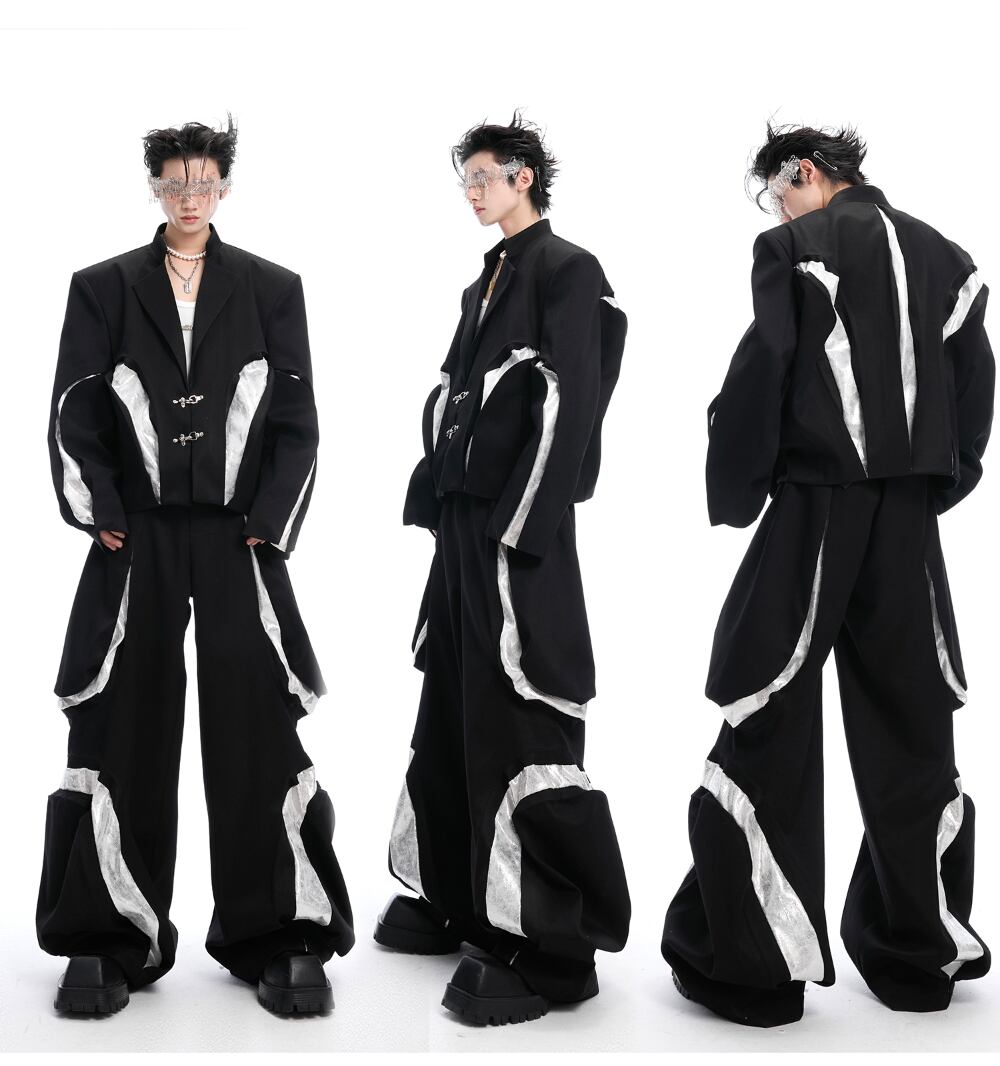 Argue Culture 上下スーツセットジャケットカーゴパンツ配色切替