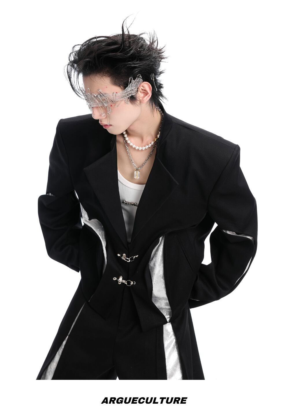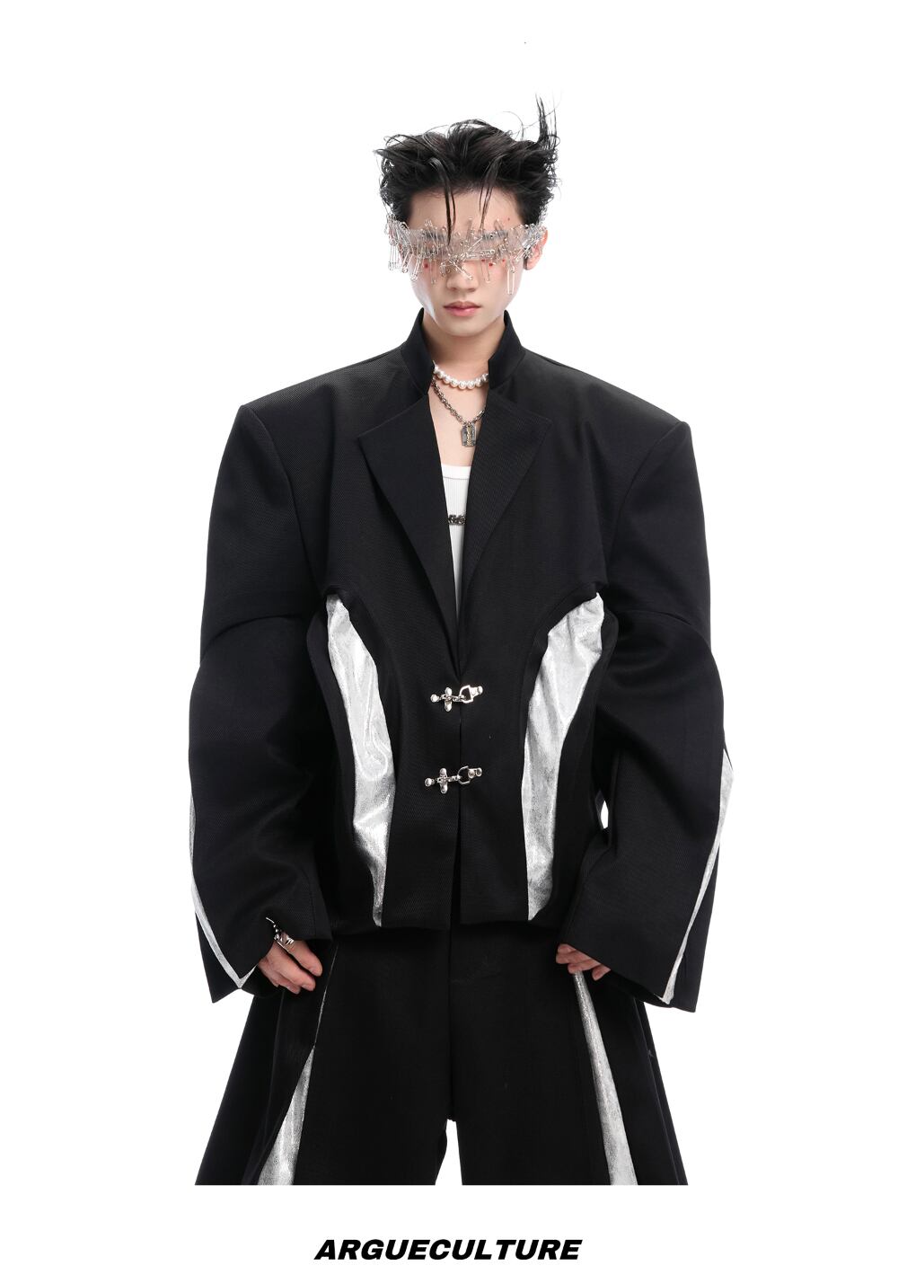 Argue Culture ショート丈テーラードジャケット配色切替おしゃれ