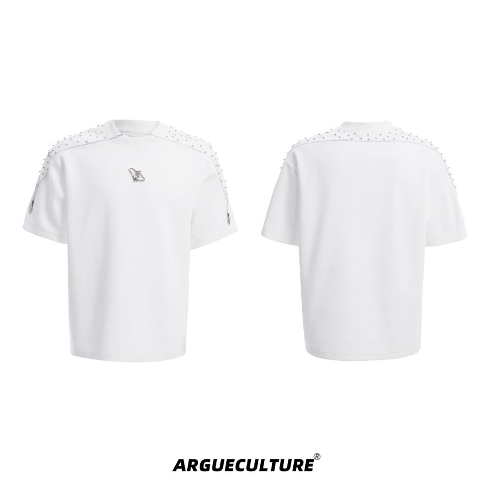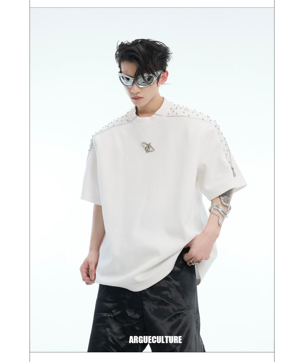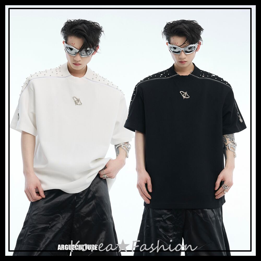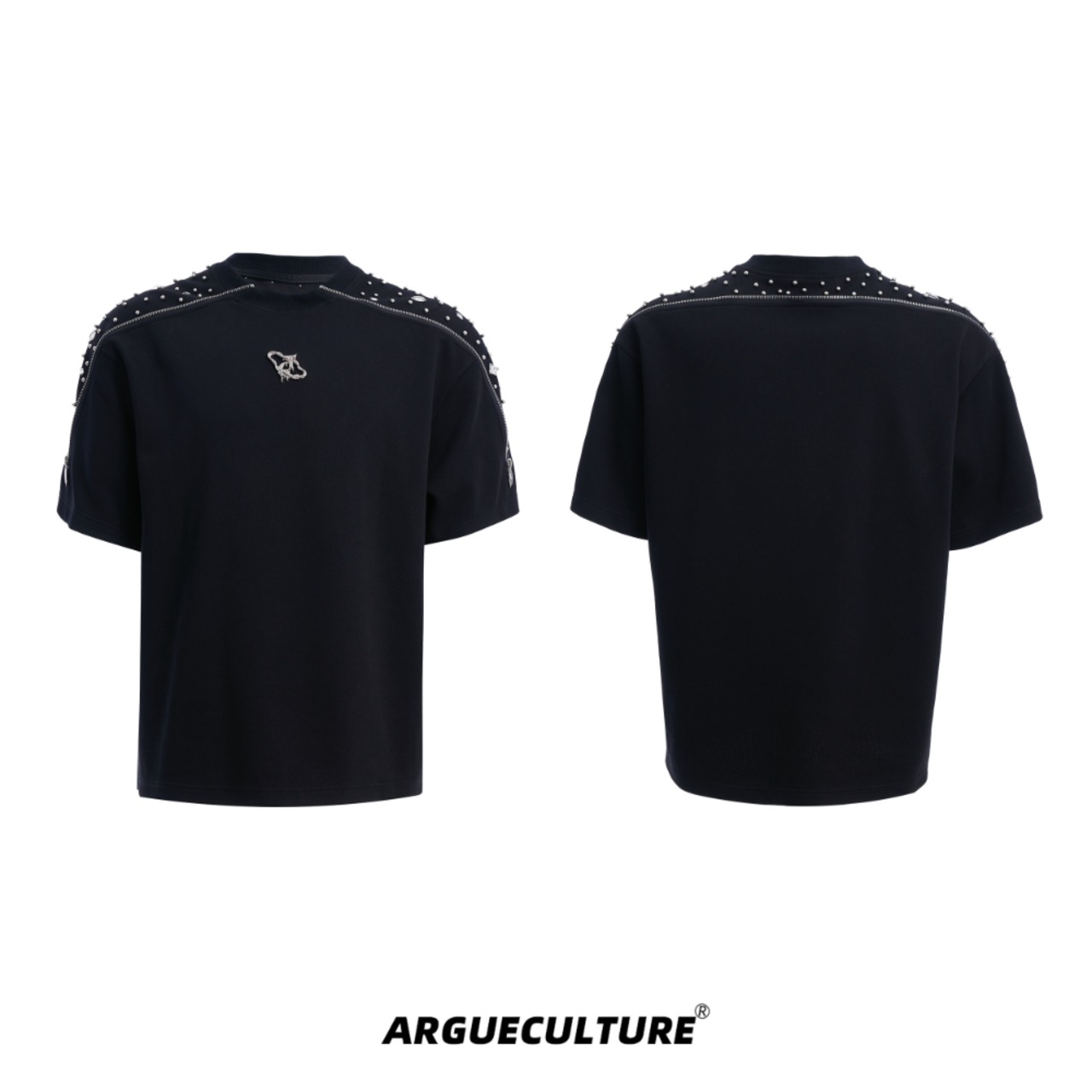 Argue Culture 半袖Tシャツスタッズゆったりビジュー付きロゴ入