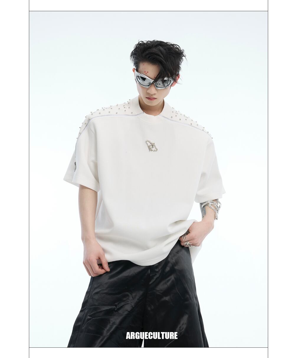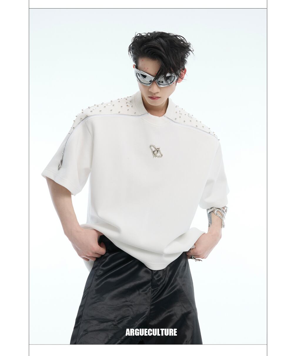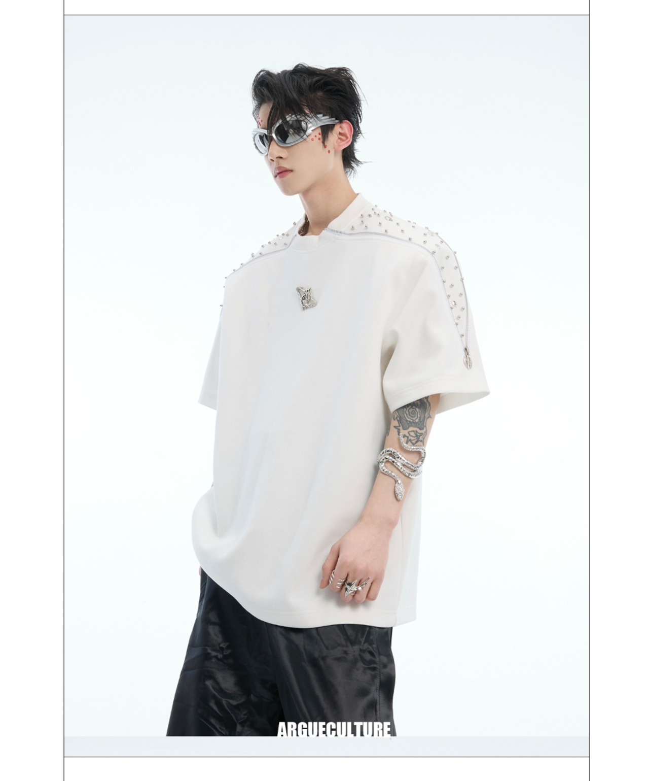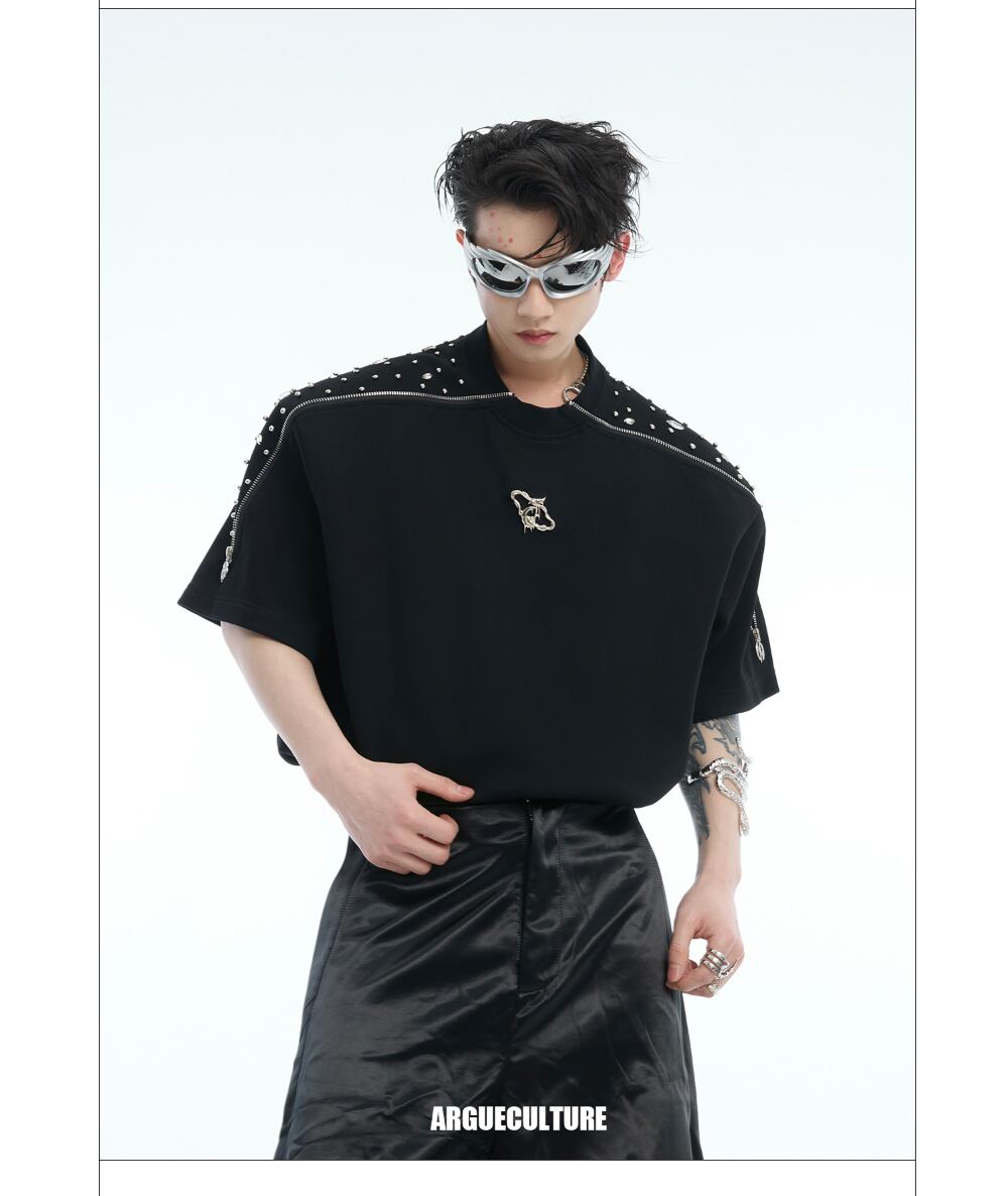 Argue Culture 半袖Tシャツスタッズゆったりビジュー付きロゴ入