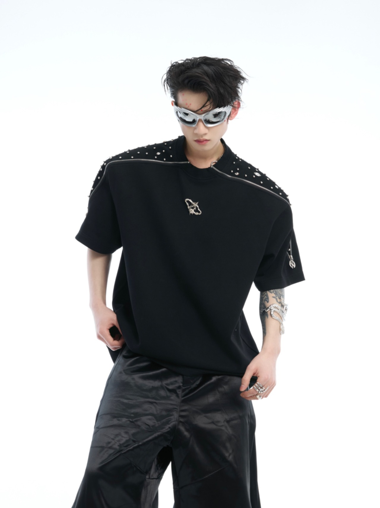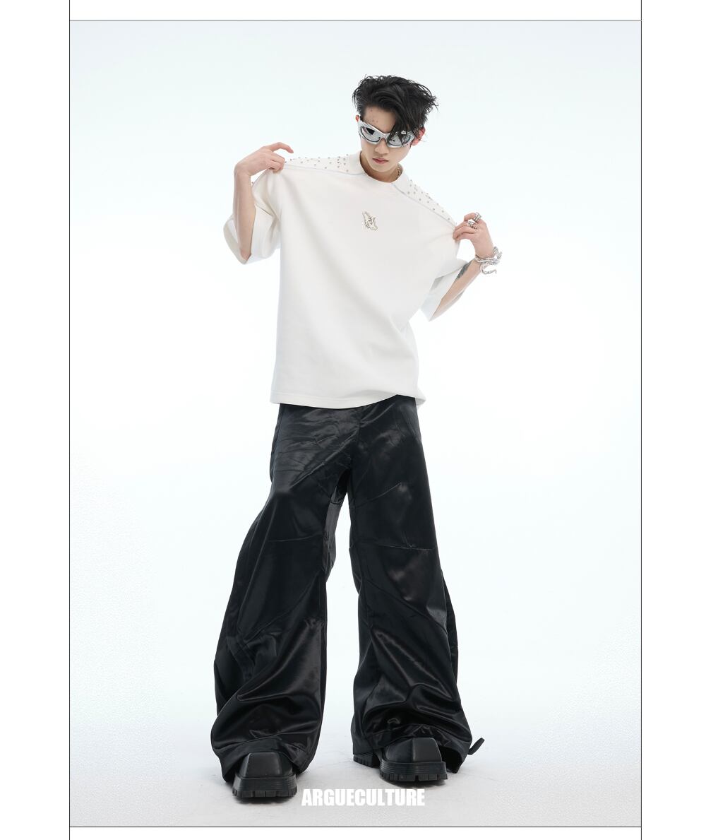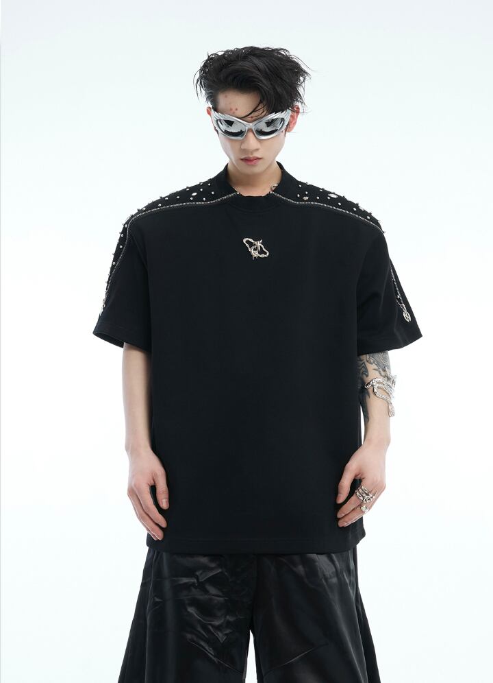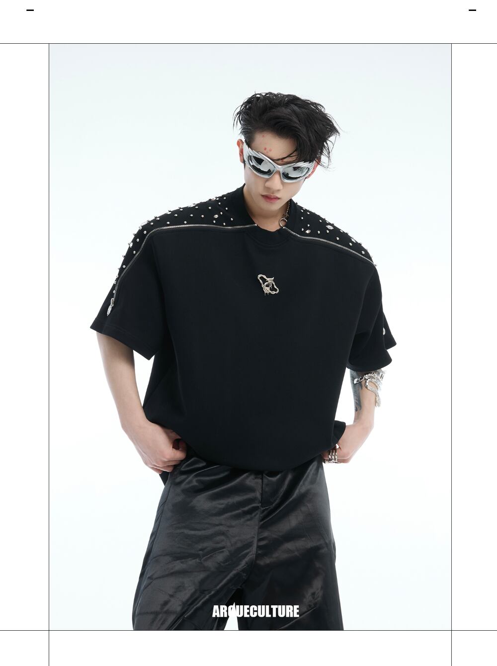 Argue Culture 半袖Tシャツスタッズゆったりビジュー付きロゴ入
