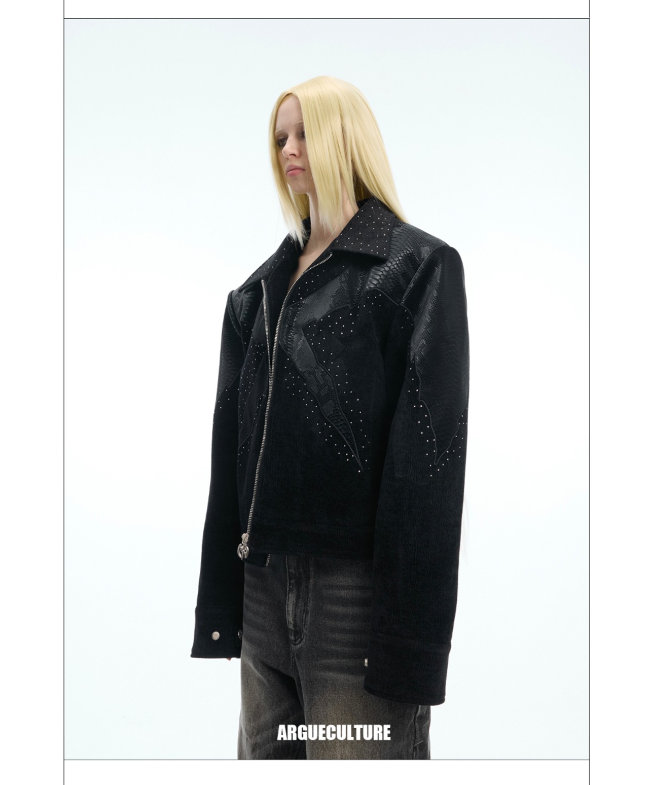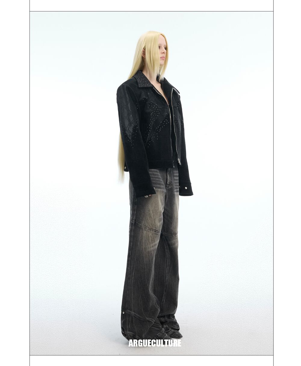Argue Culture フェイクレザー切替ジャケットクロコダイル柄