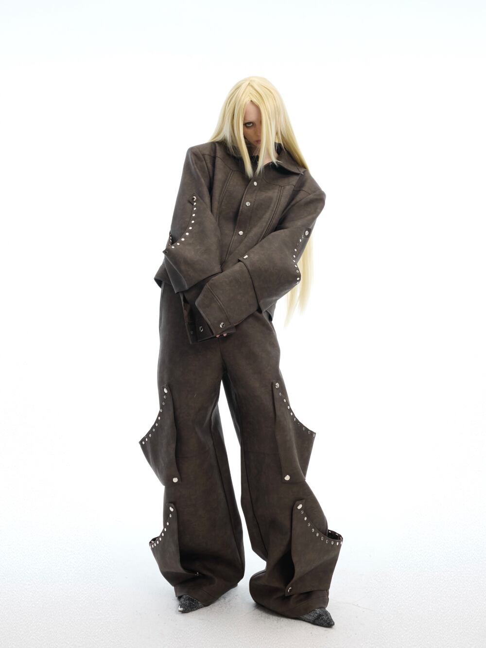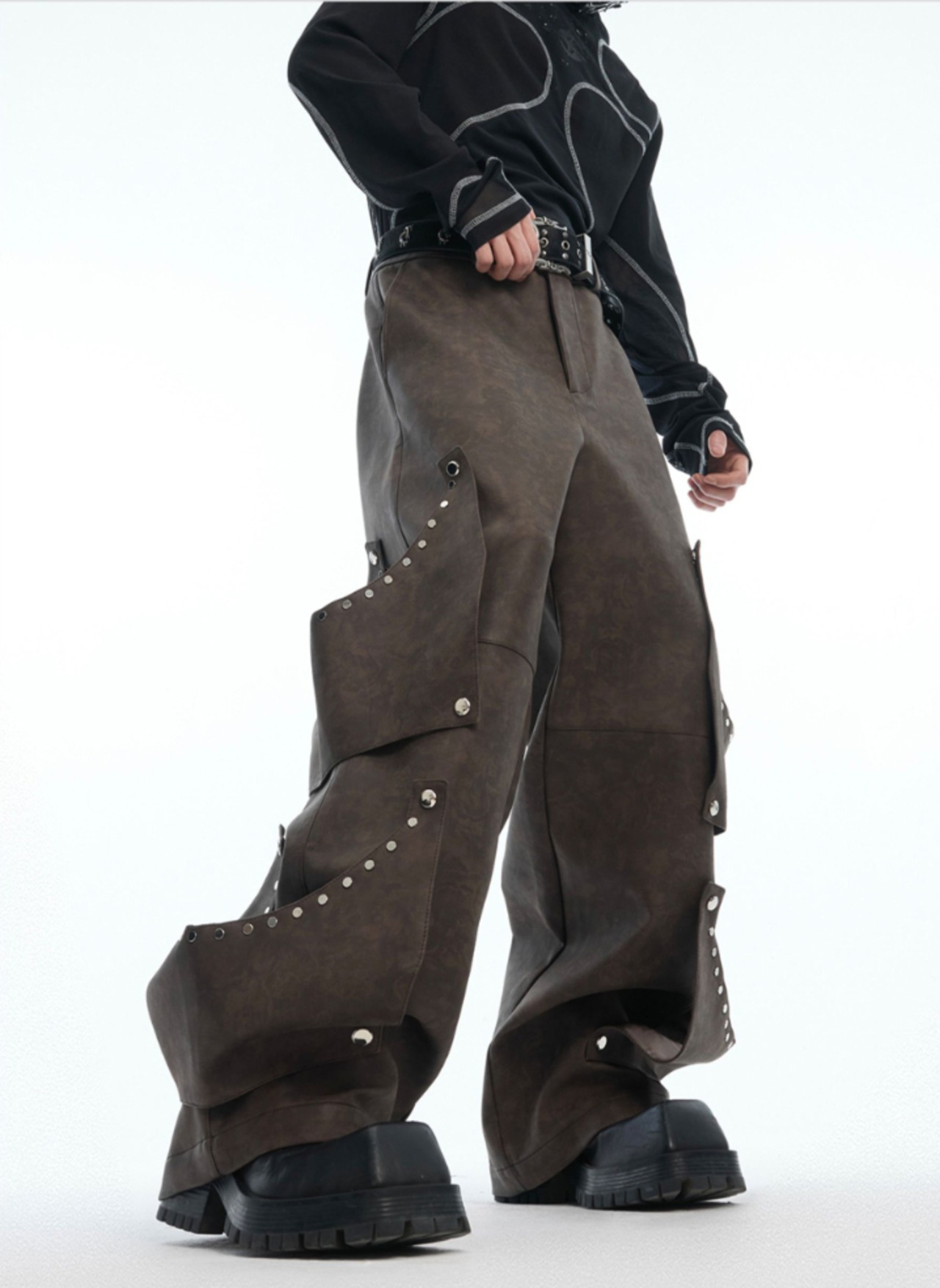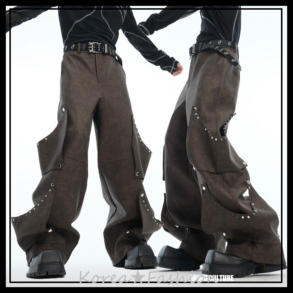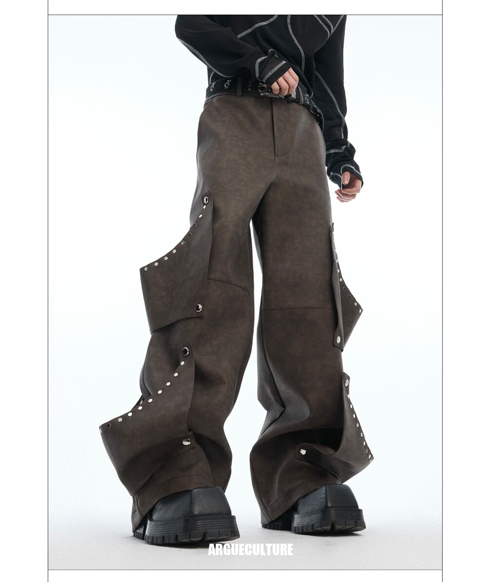 Argue Culture フェイクレザーパンツストリートスタッズ切り替え