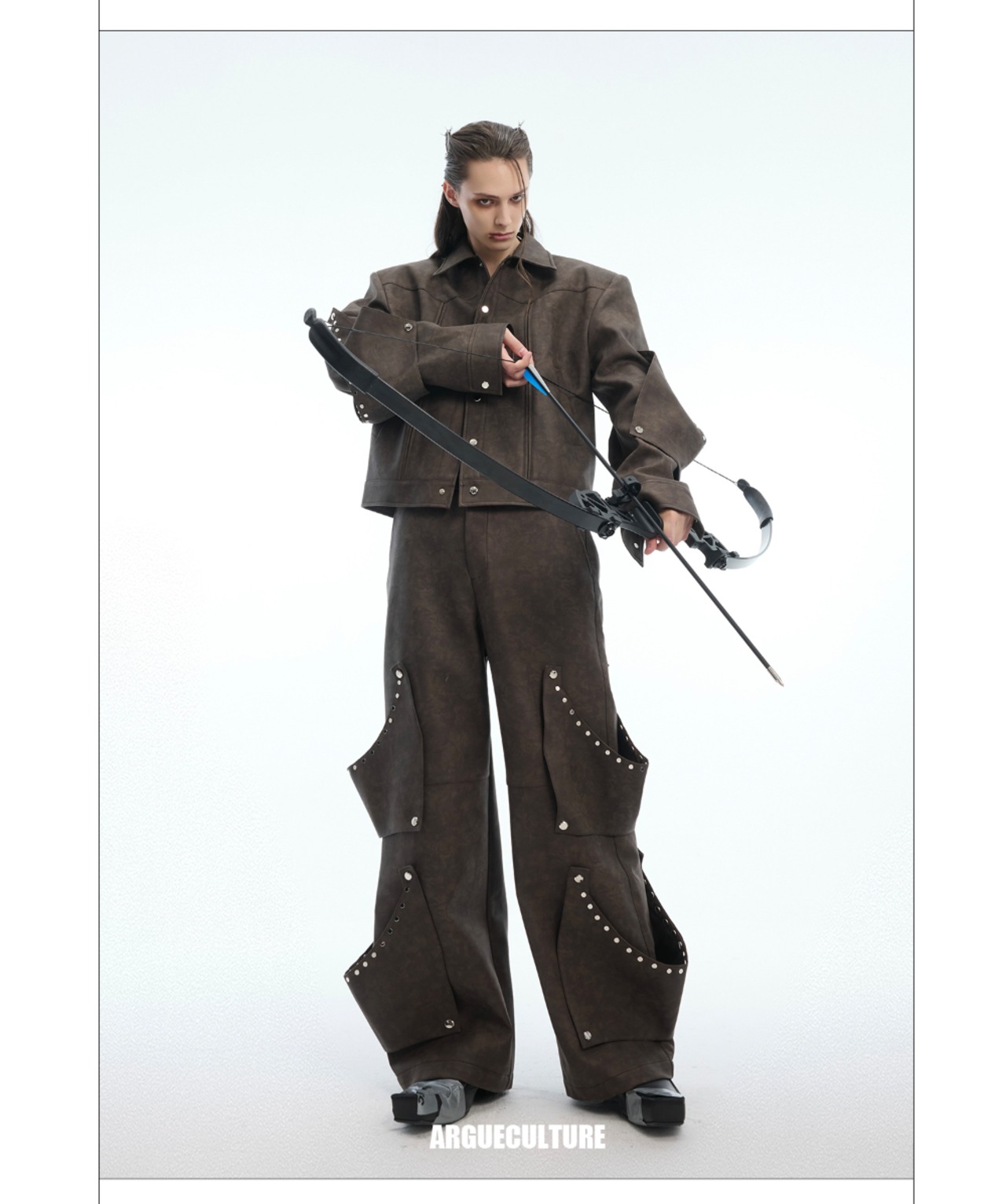 Argue Culture フェイクレザージャケットスタッズ切替ストリート