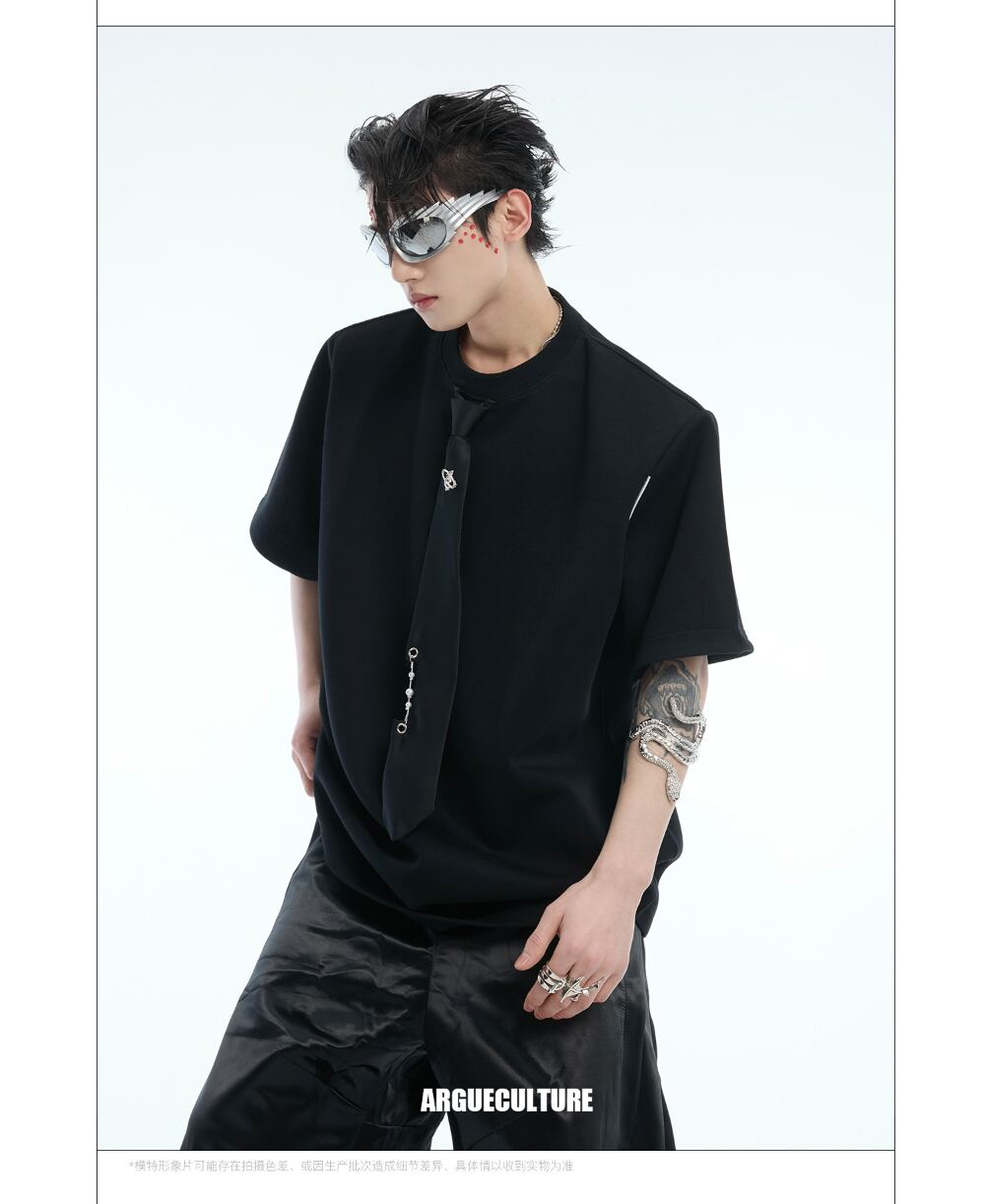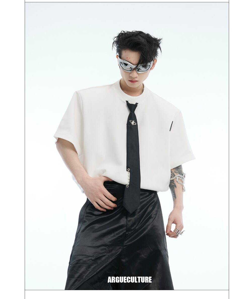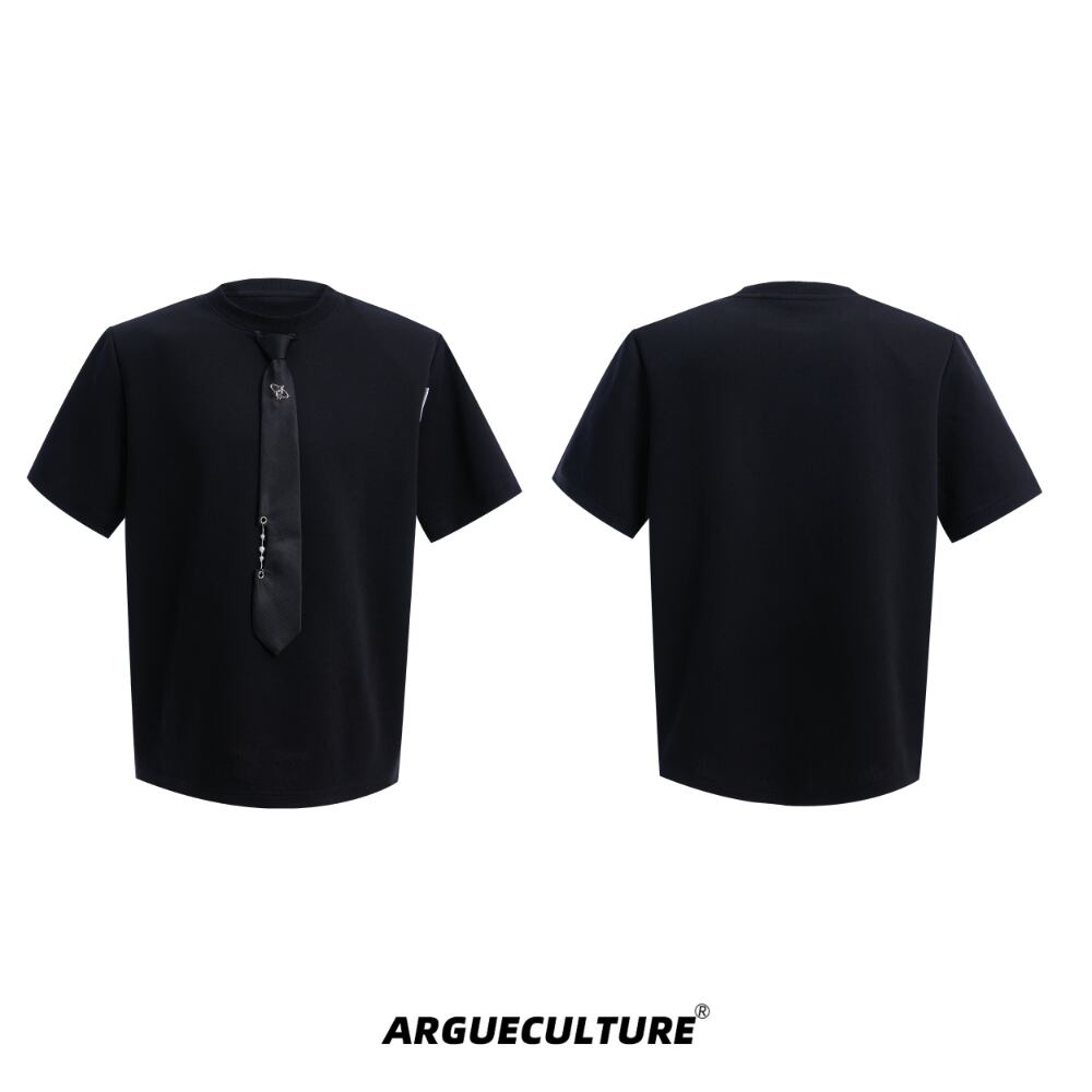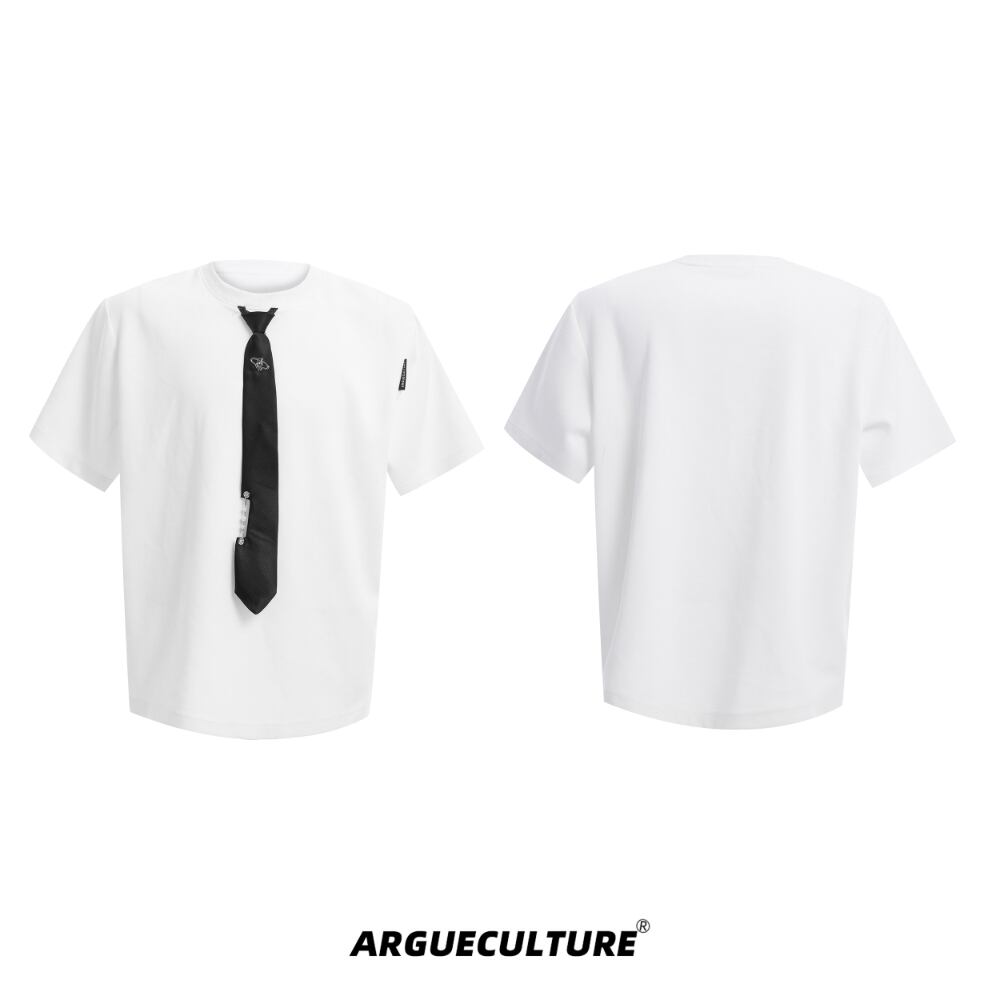 Argue Culture Tシャツロゴ入りネクタイ飾りゆったり肩パッド
