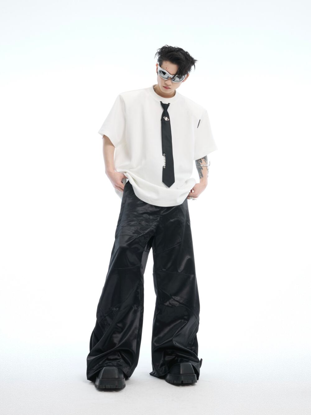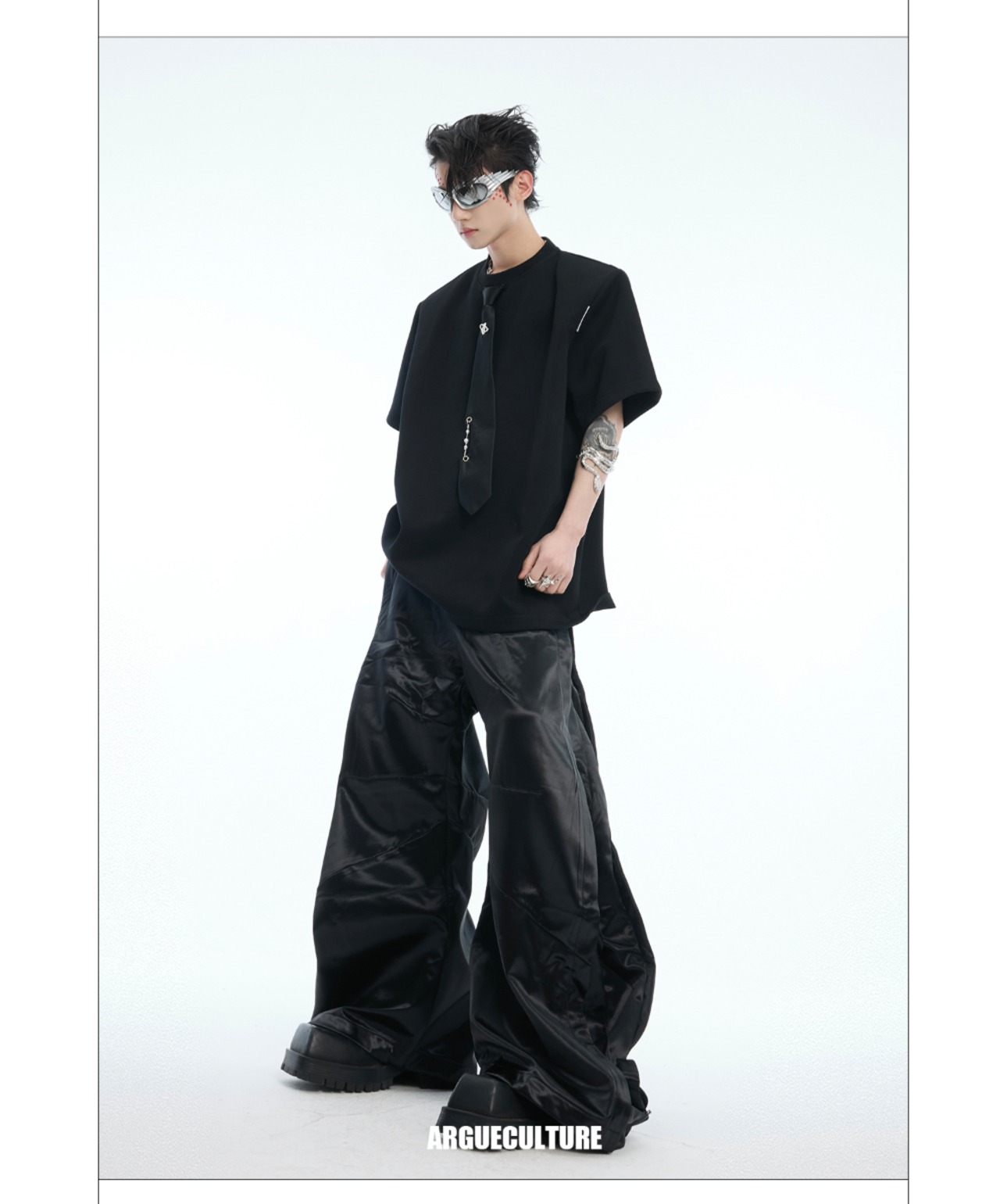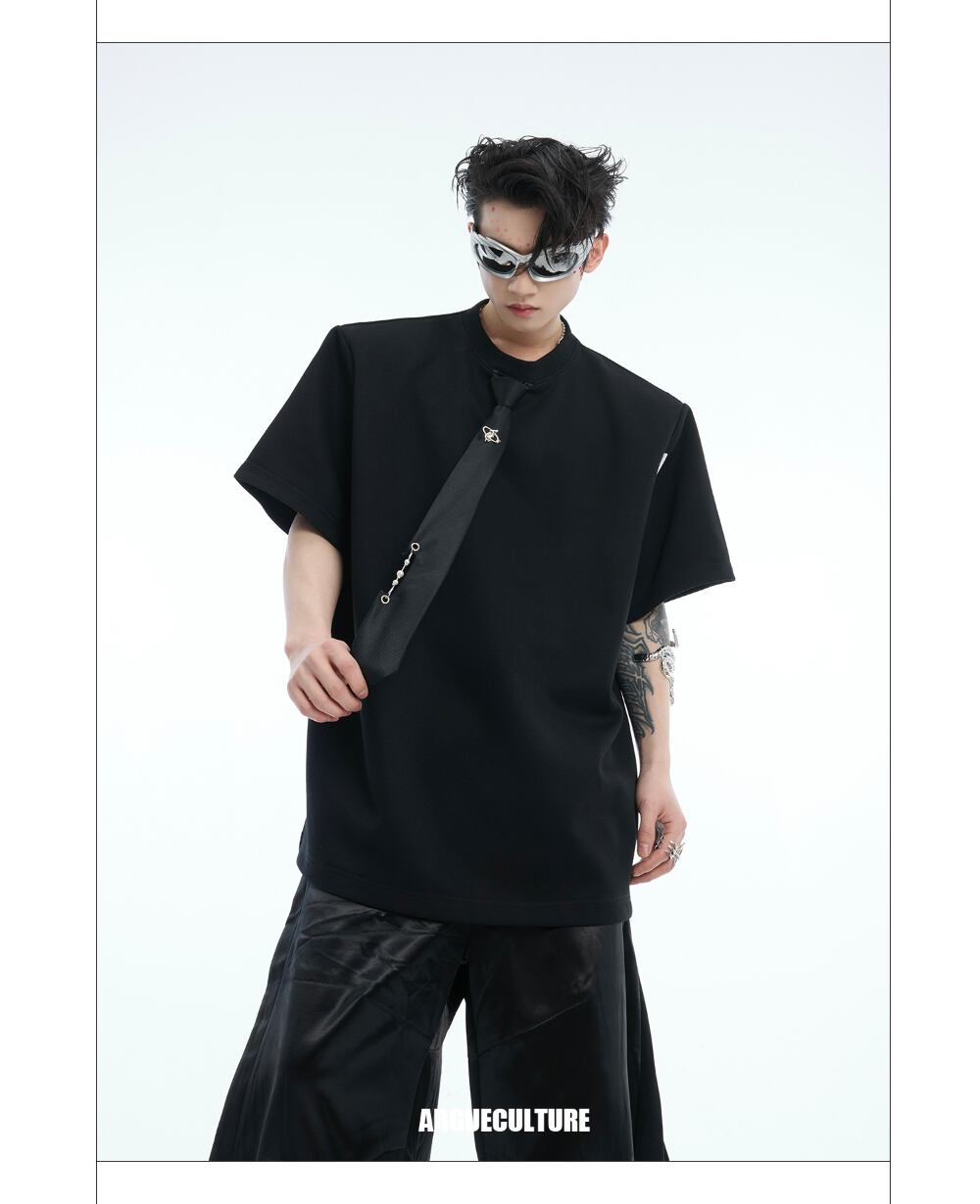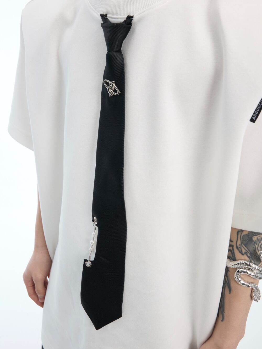 Argue Culture Tシャツロゴ入りネクタイ飾りゆったり肩パッド