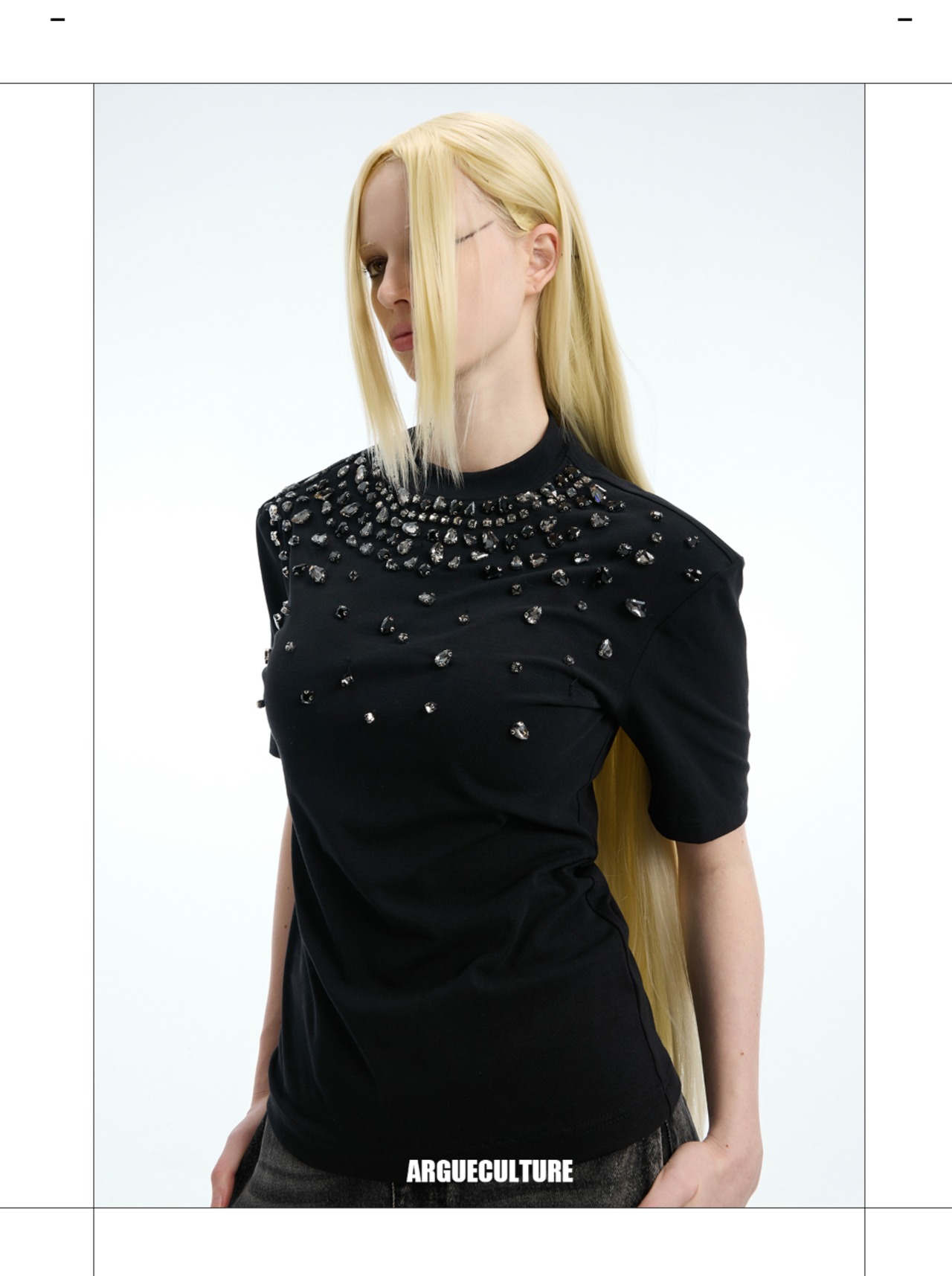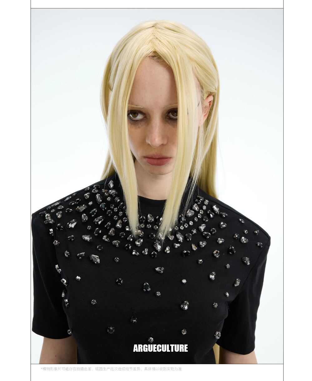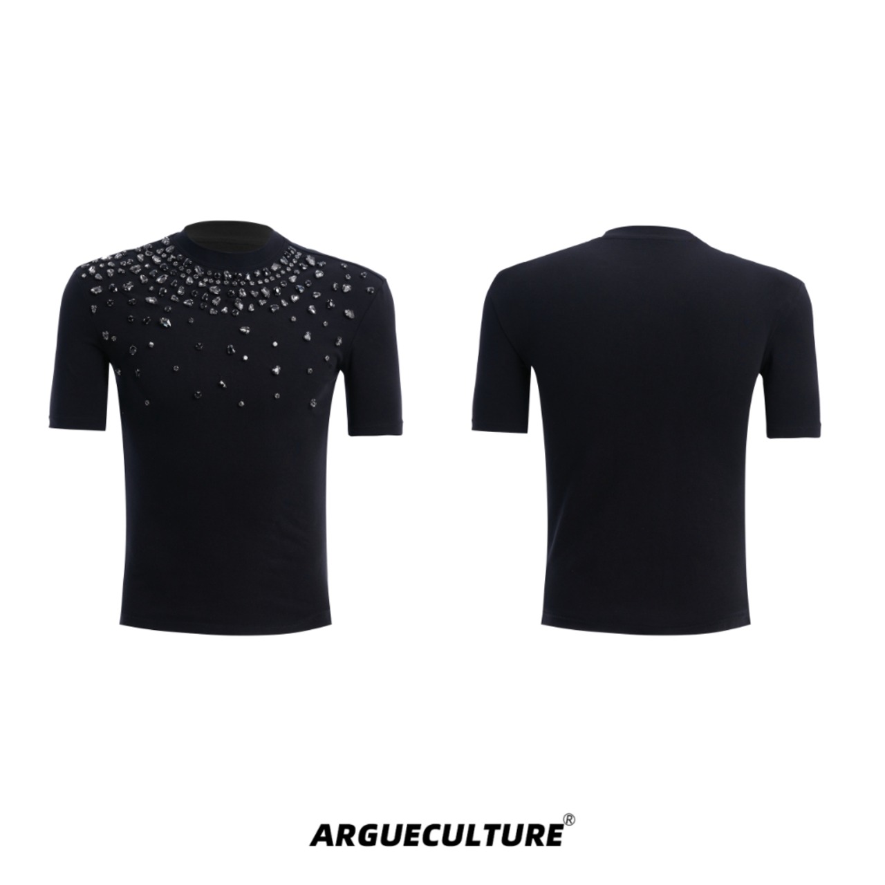Argue CultureスリムTシャツ半袖ビジュー付きインナーおしゃれ
