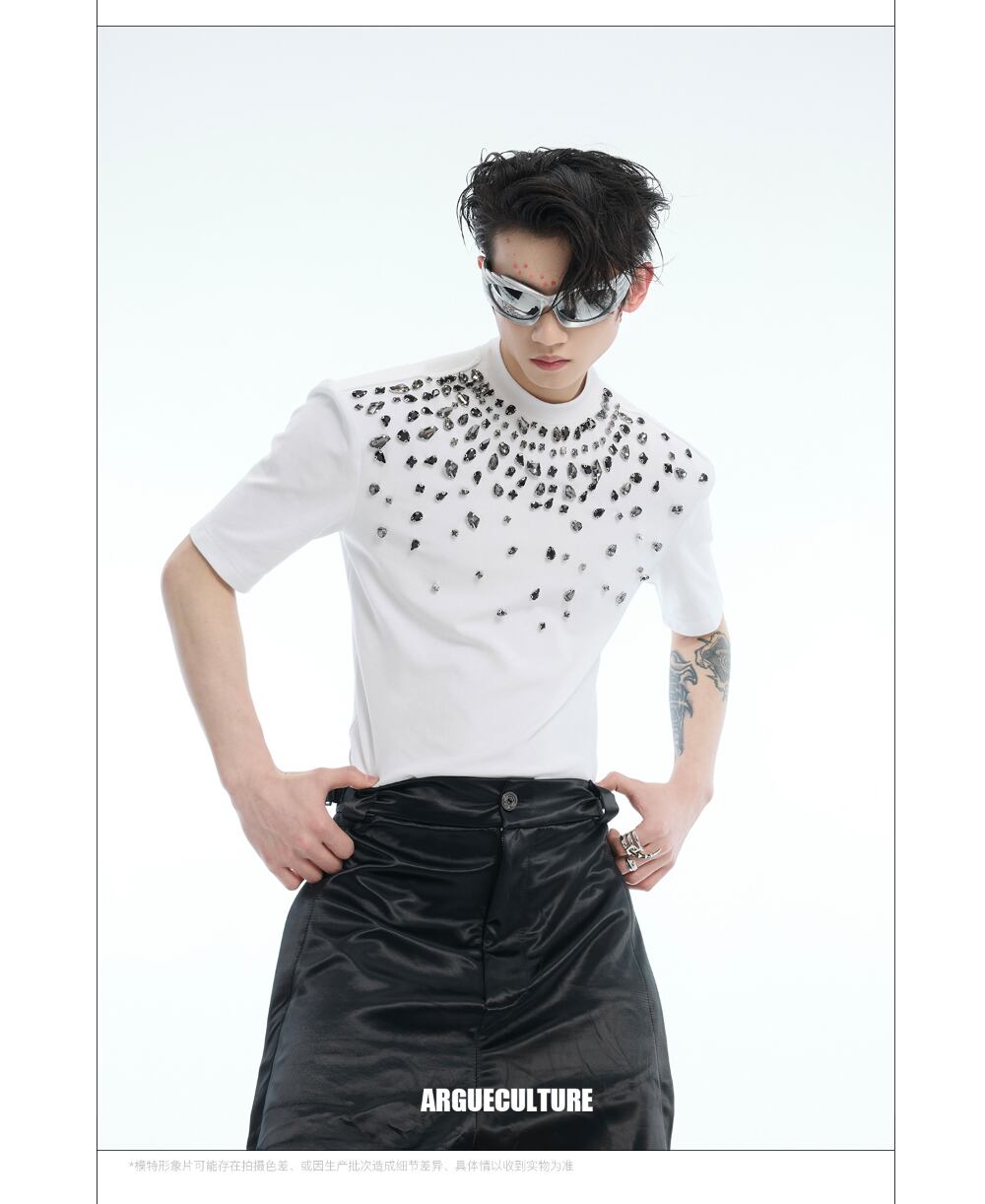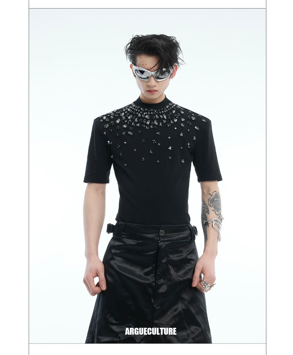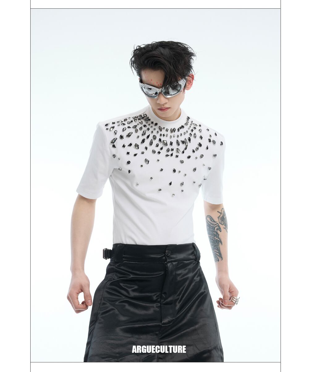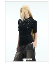Argue CultureスリムTシャツ半袖ビジュー付きインナーおしゃれ