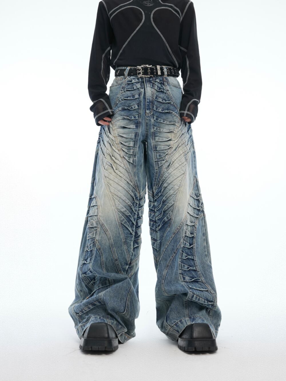 Argue Culture ワイド デニムパンツ ジーンズ ウォッシュド