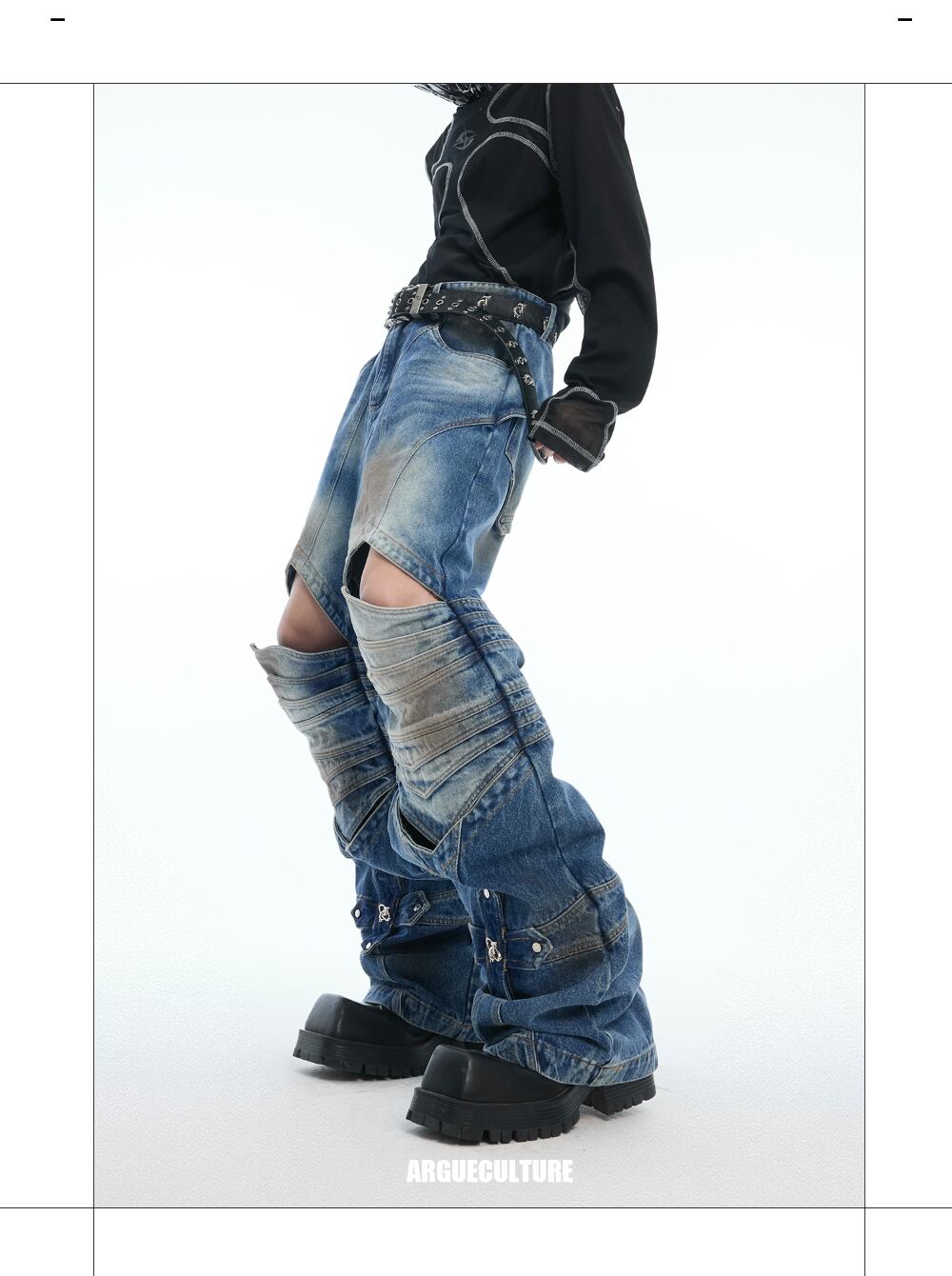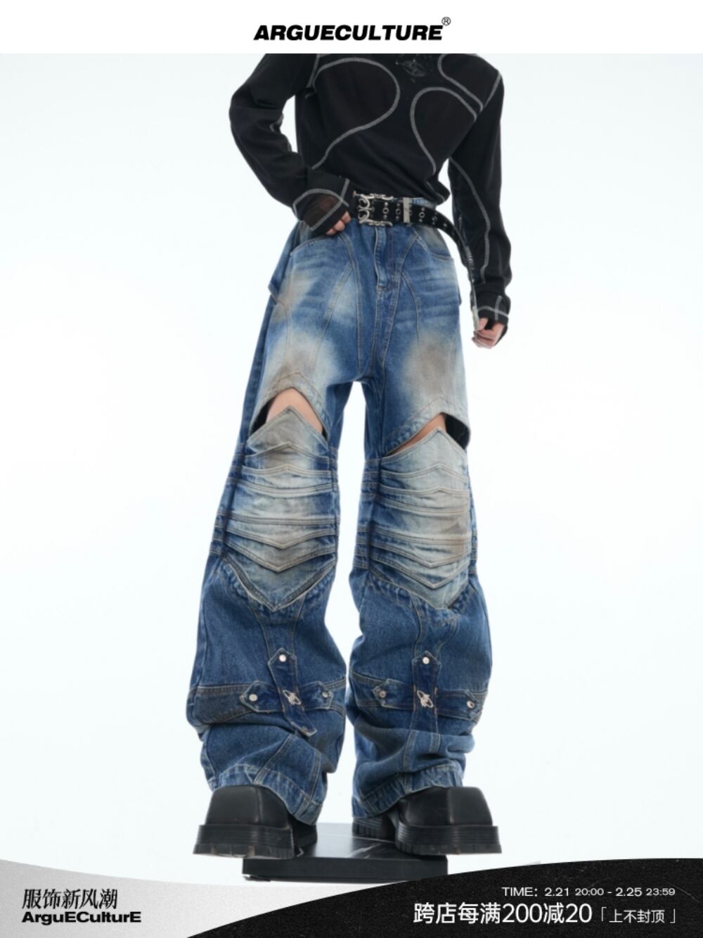 Argue Culture カットアウトデニムパンツジーンズウォッシュド