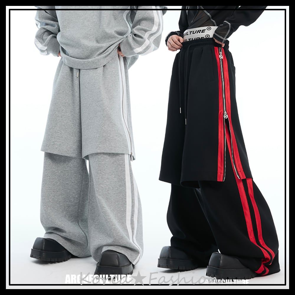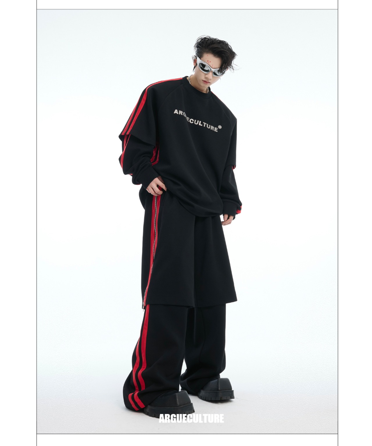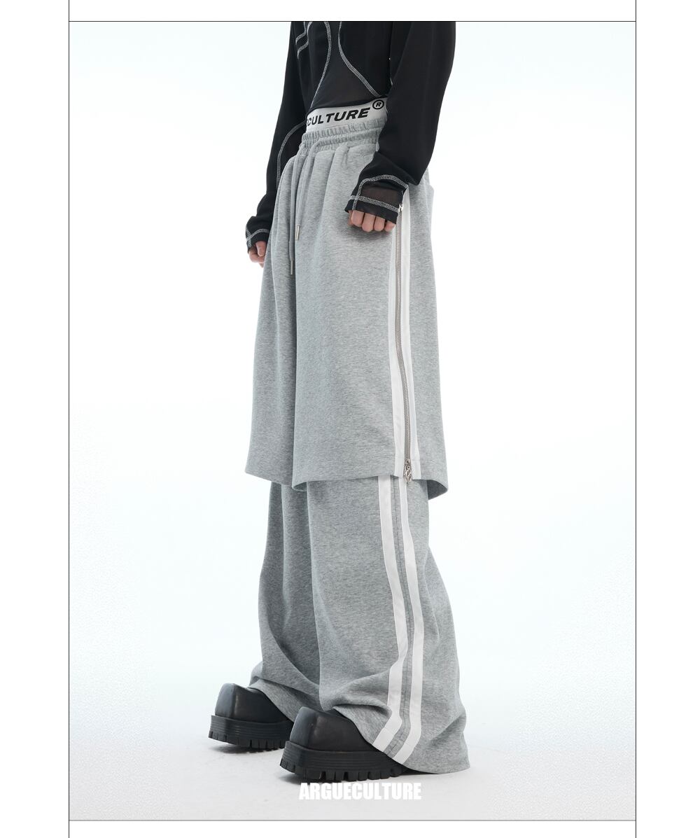 Argue Culture レイヤード風サイドラインスウェットパンツワイド