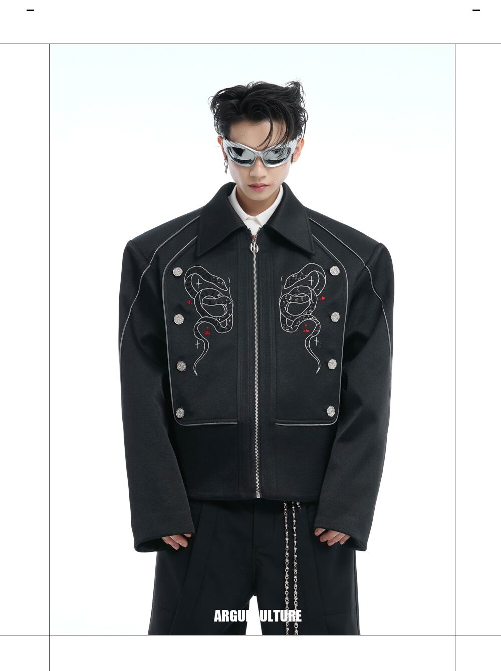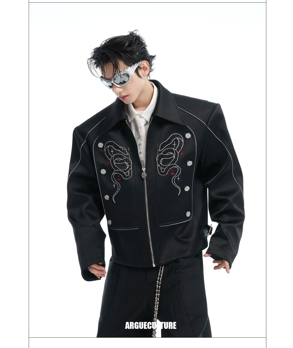 Argue Culture ジャケット蛇柄刺繍ブルゾンストリートおしゃれ