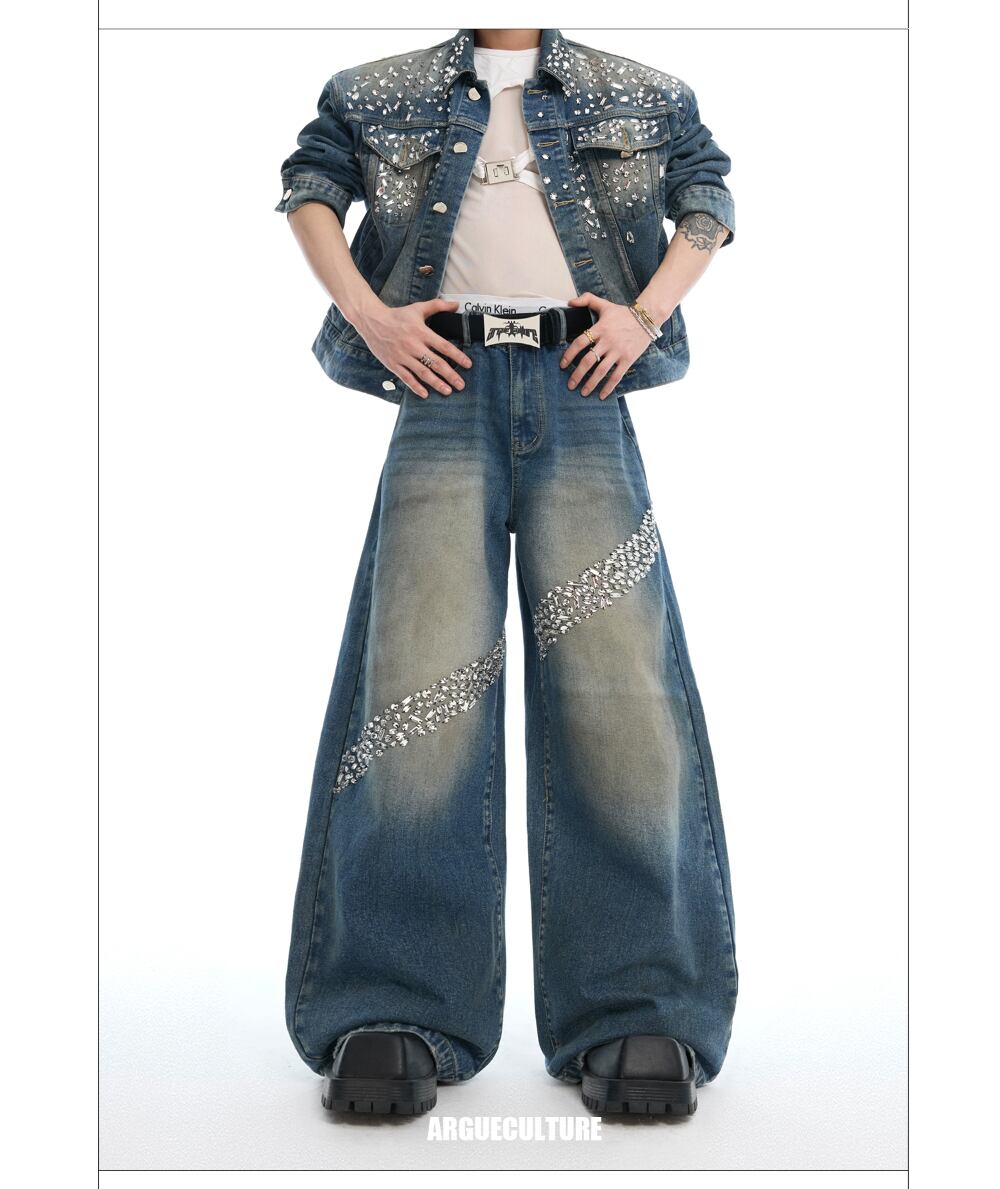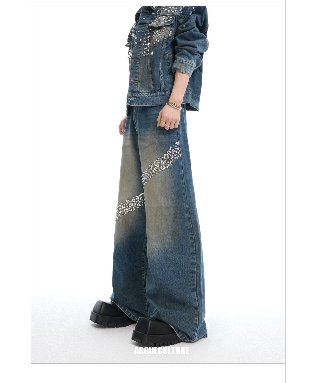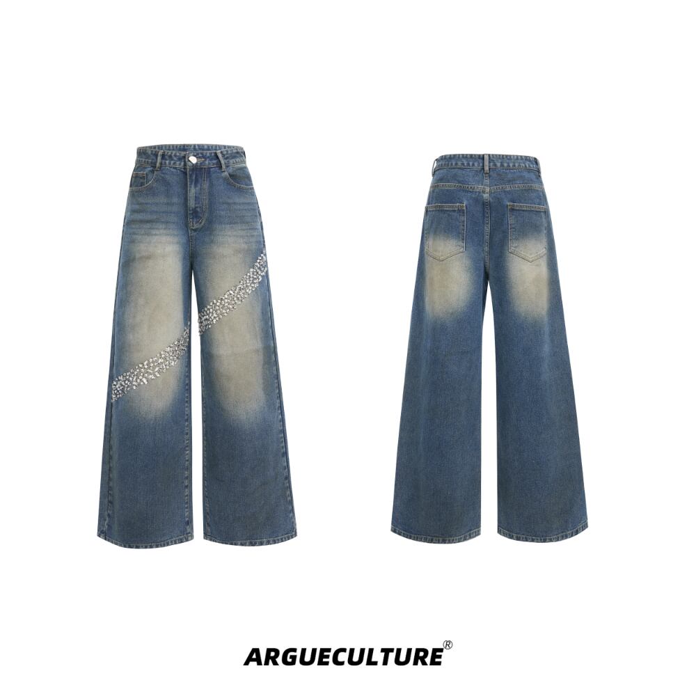 Argue Culture ワイドデニムパンツジーンズウォッシュドビジュー