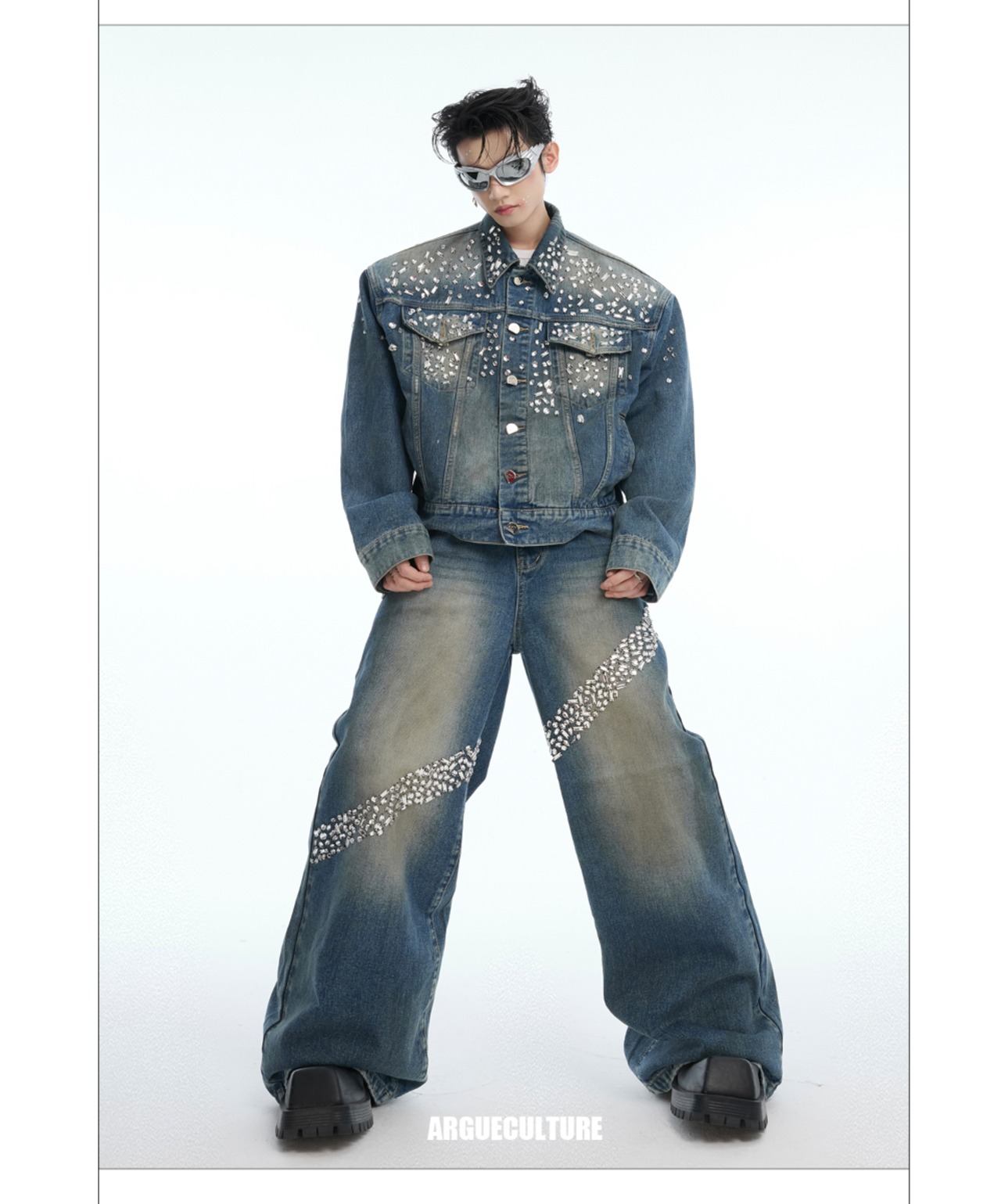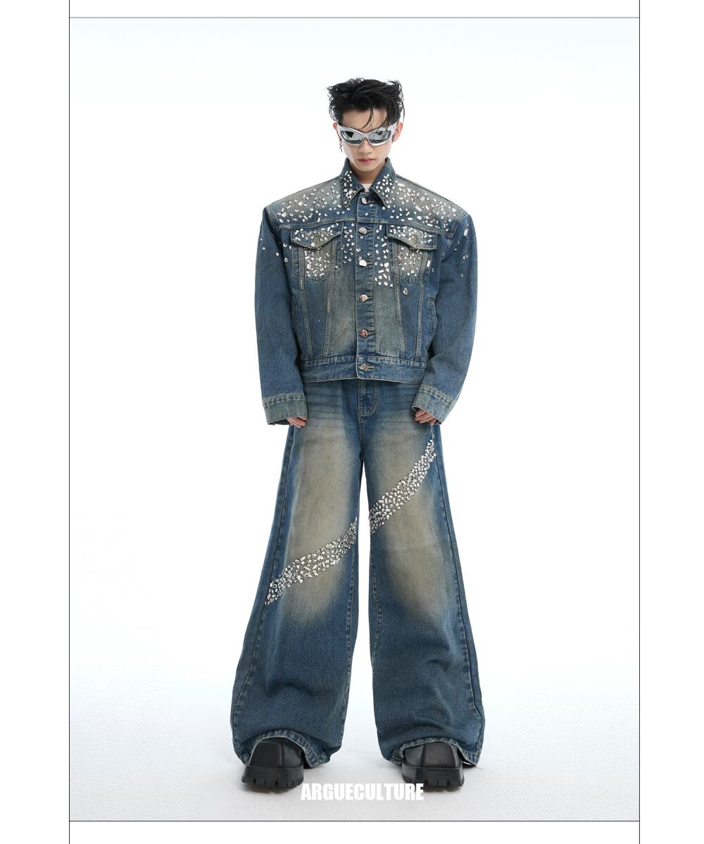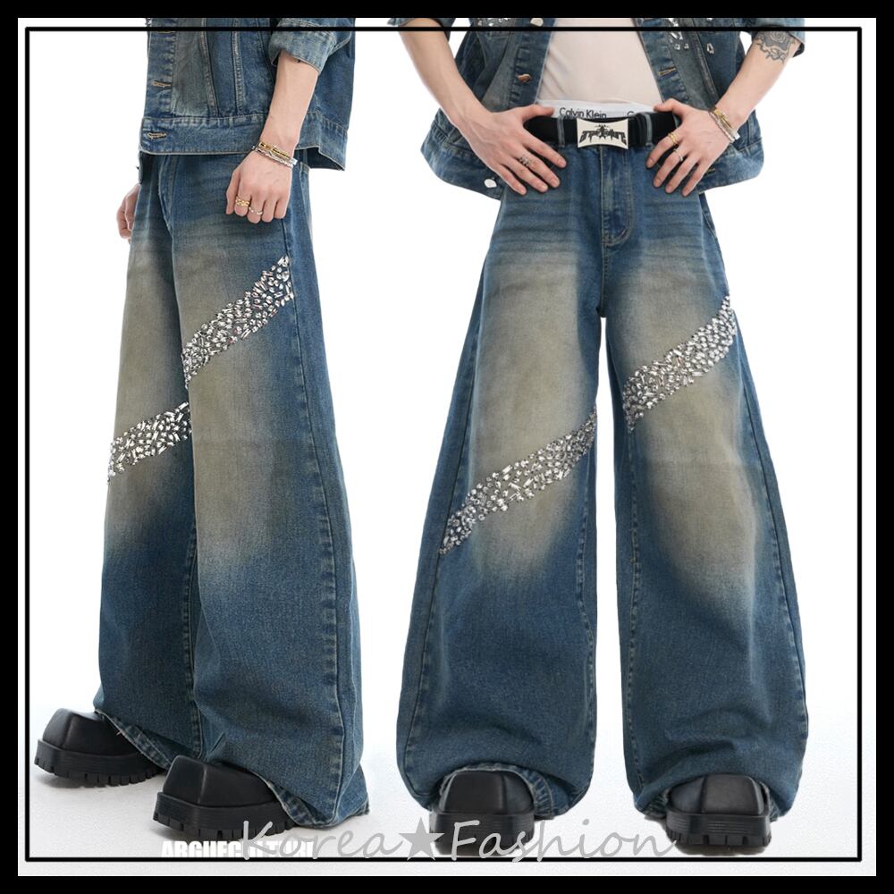 Argue Culture ワイドデニムパンツジーンズウォッシュドビジュー