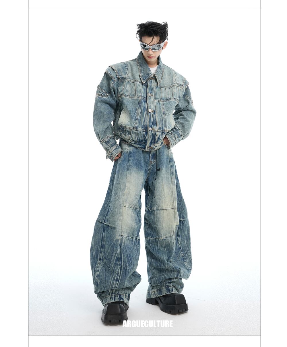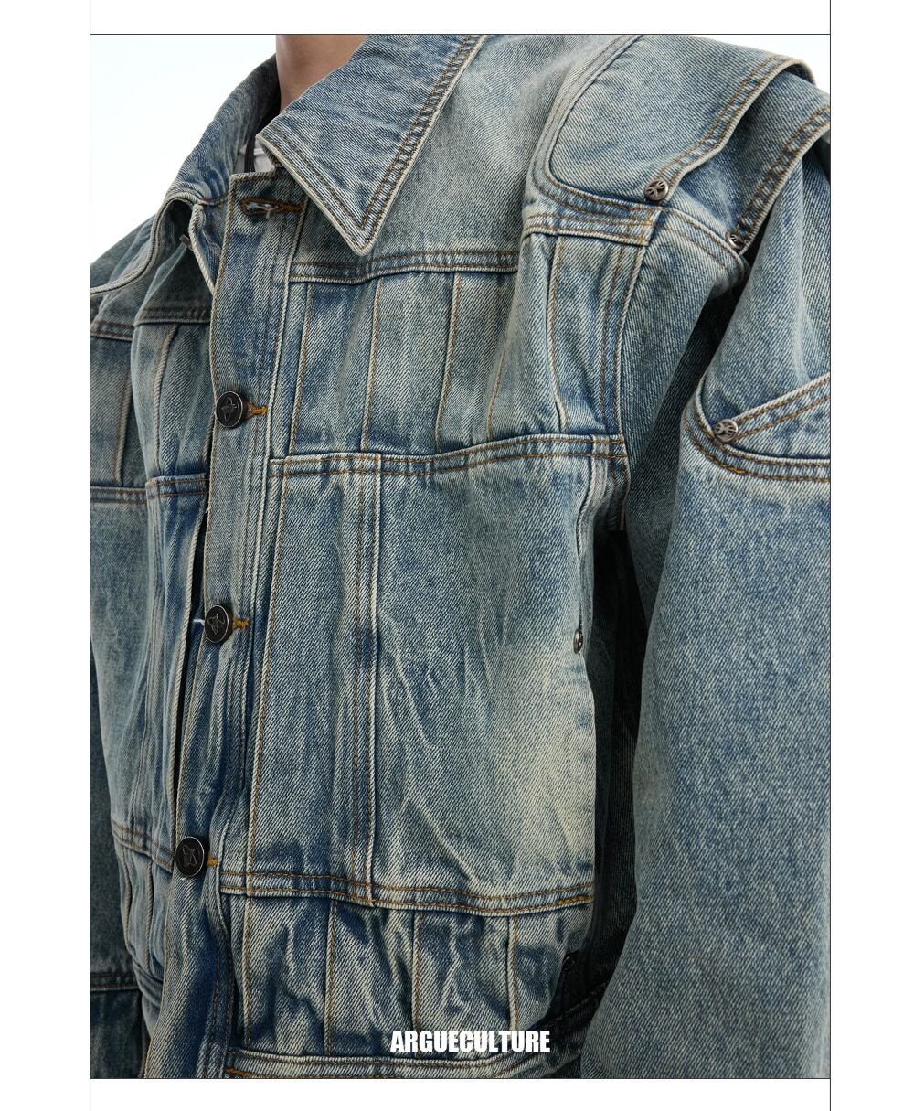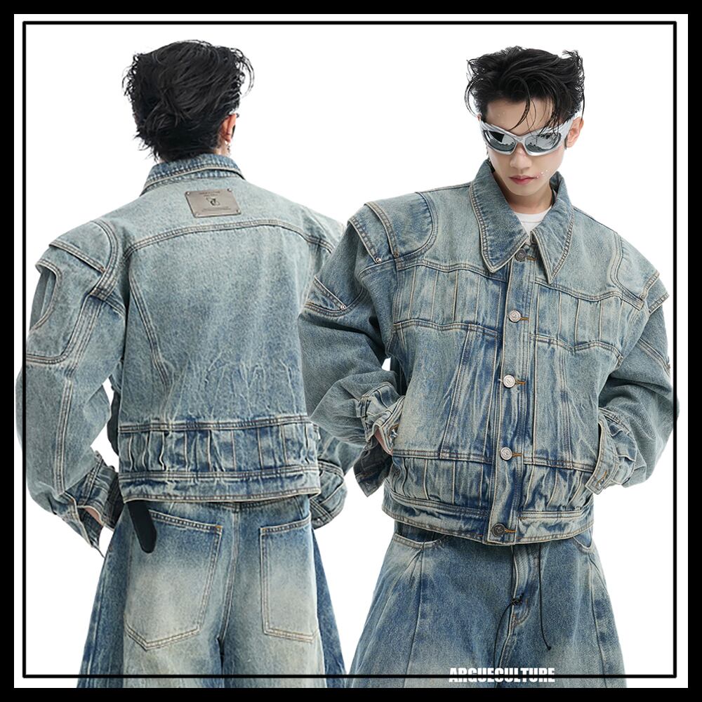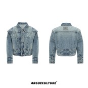 Argue Culture デニムジャケットウォッシュドメタルロゴ入りゆる