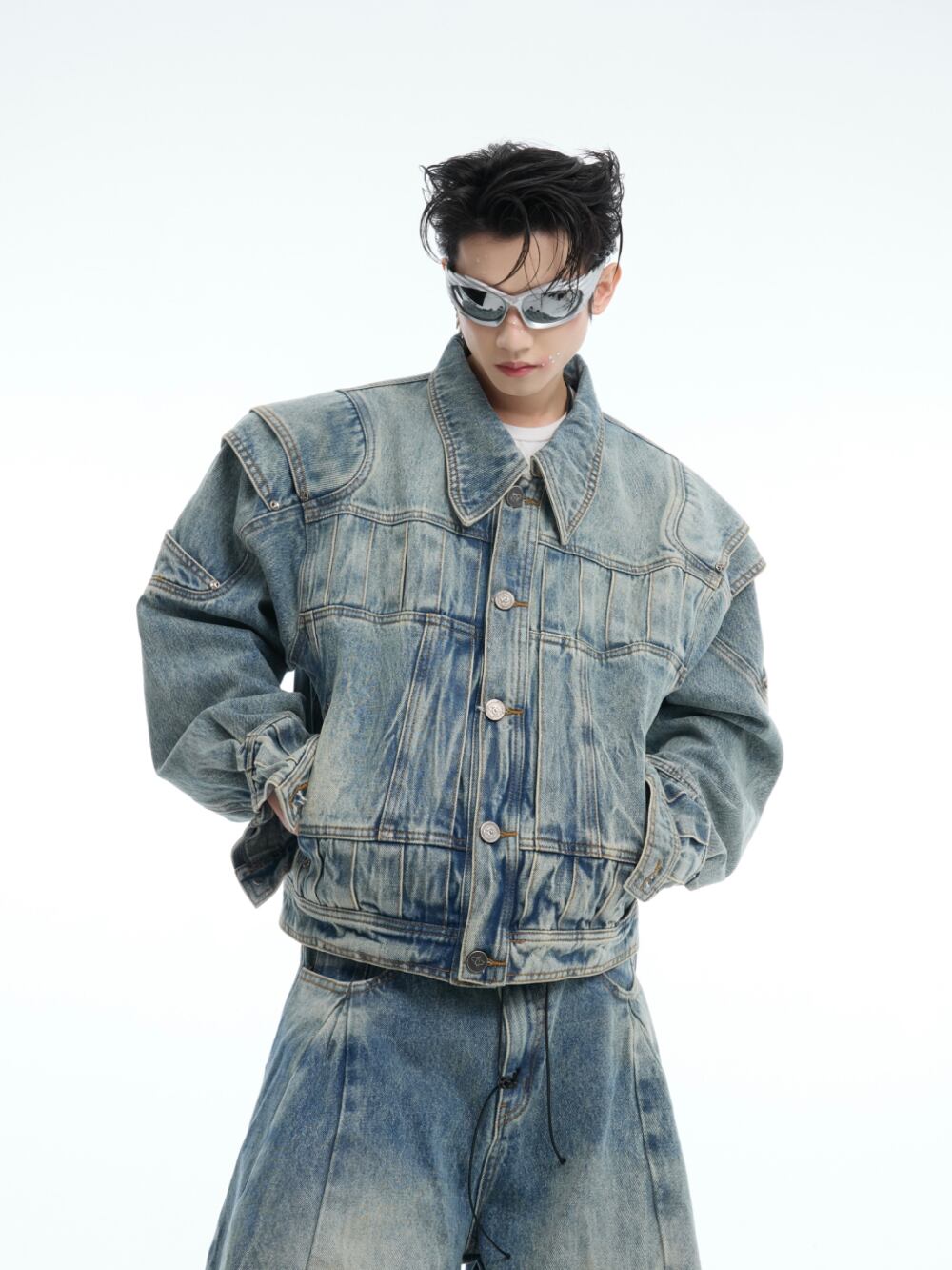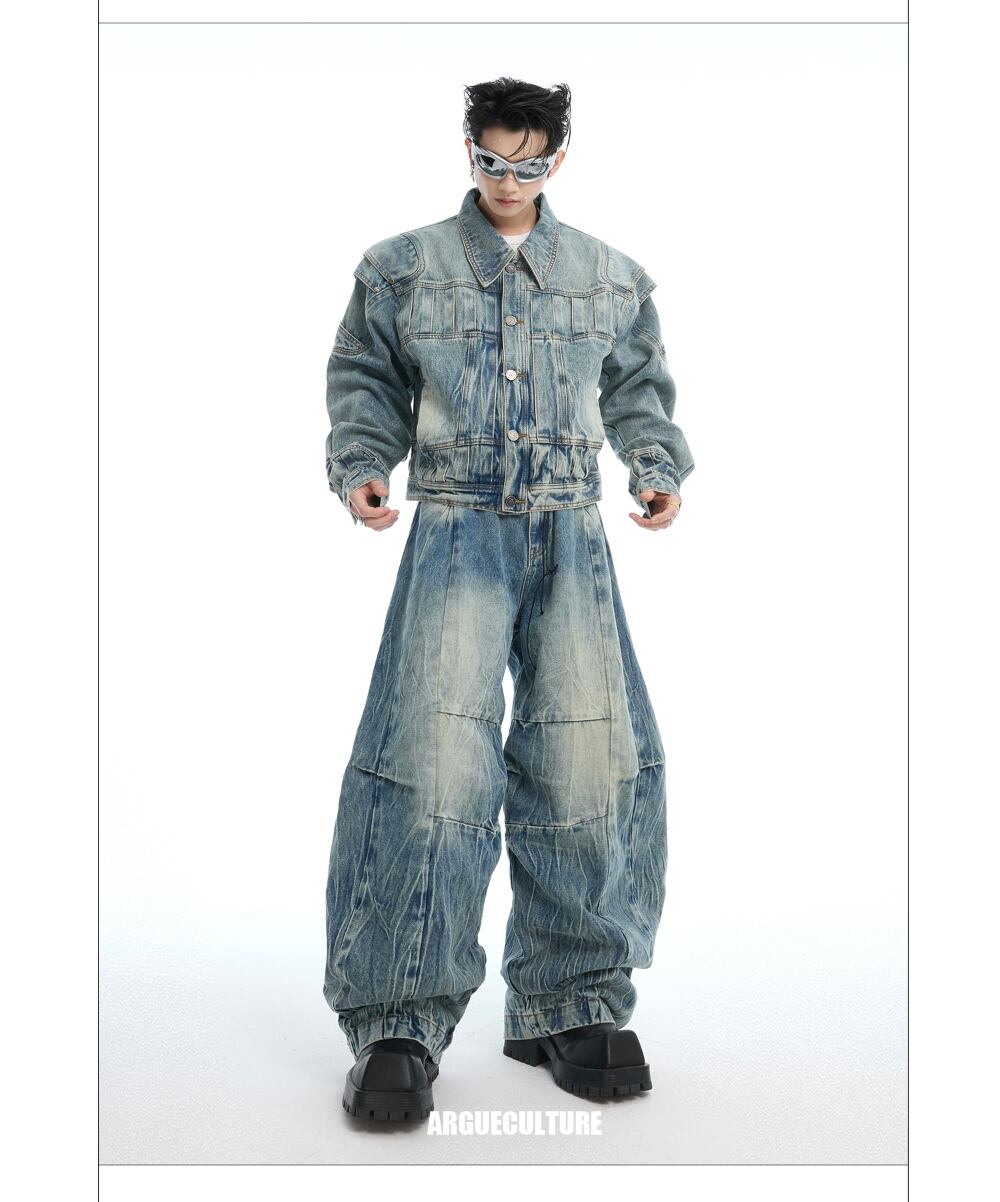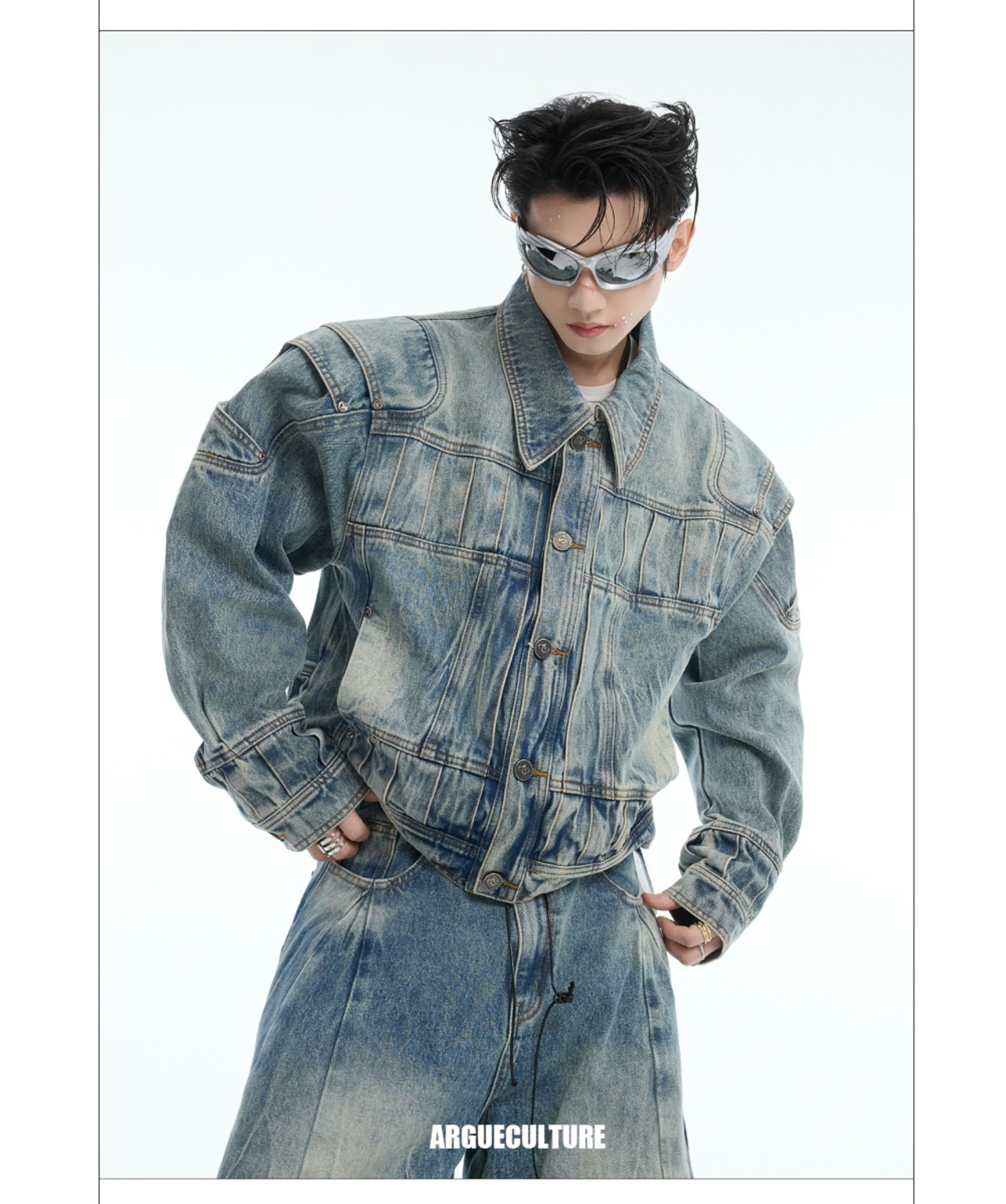 Argue Culture デニムジャケットウォッシュドメタルロゴ入りゆる