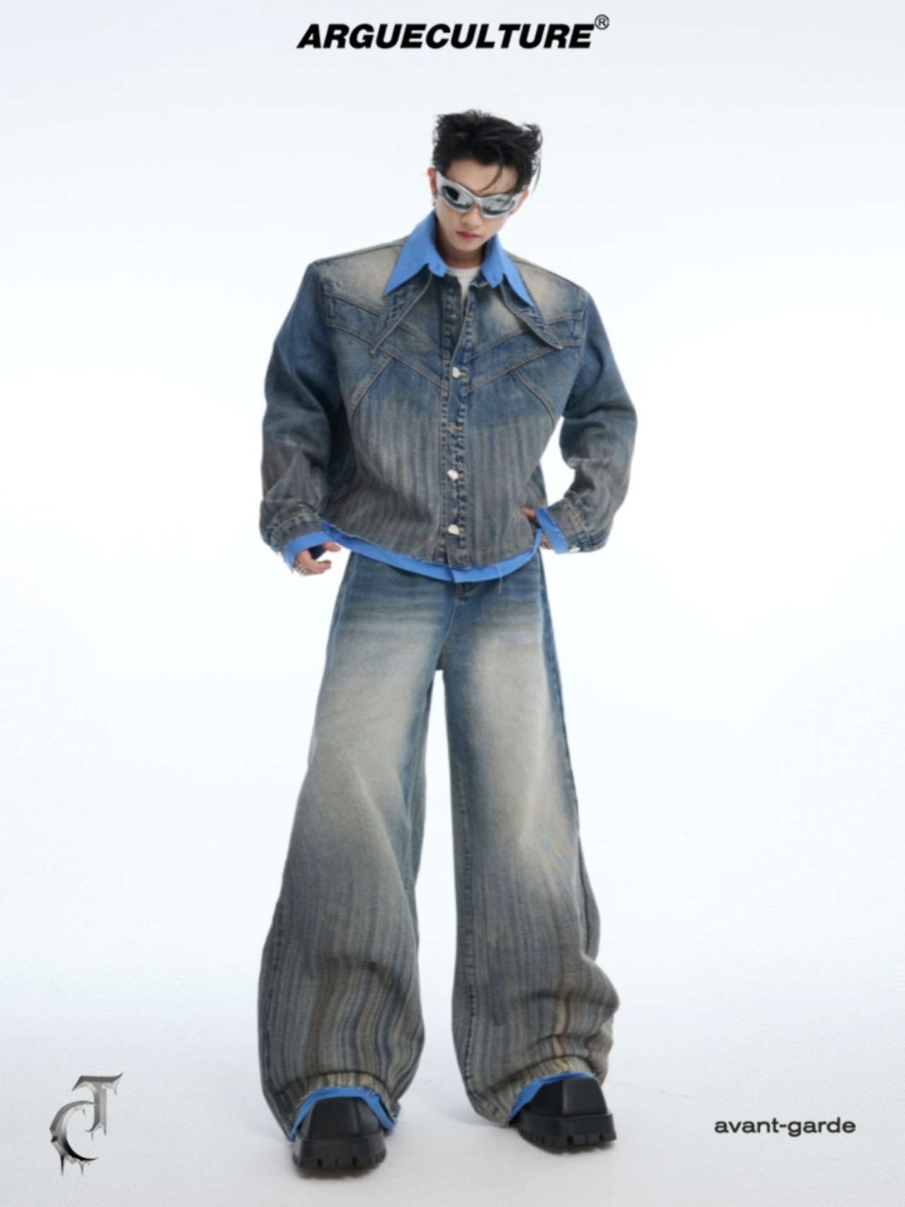 Argue Culture ワイドデニムパンツジーンズウォッシュド切替ゆる