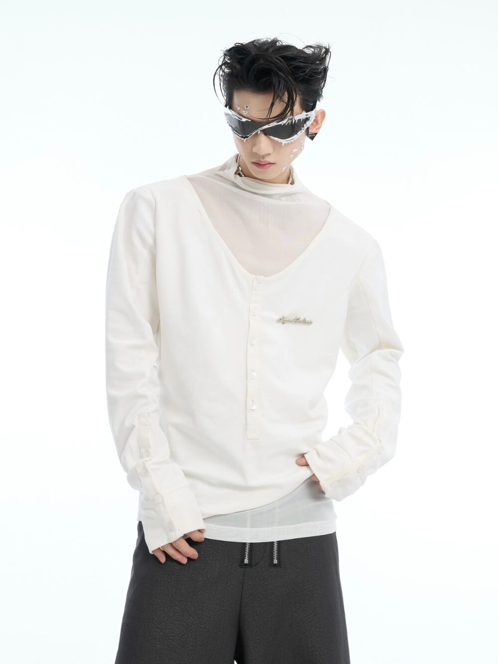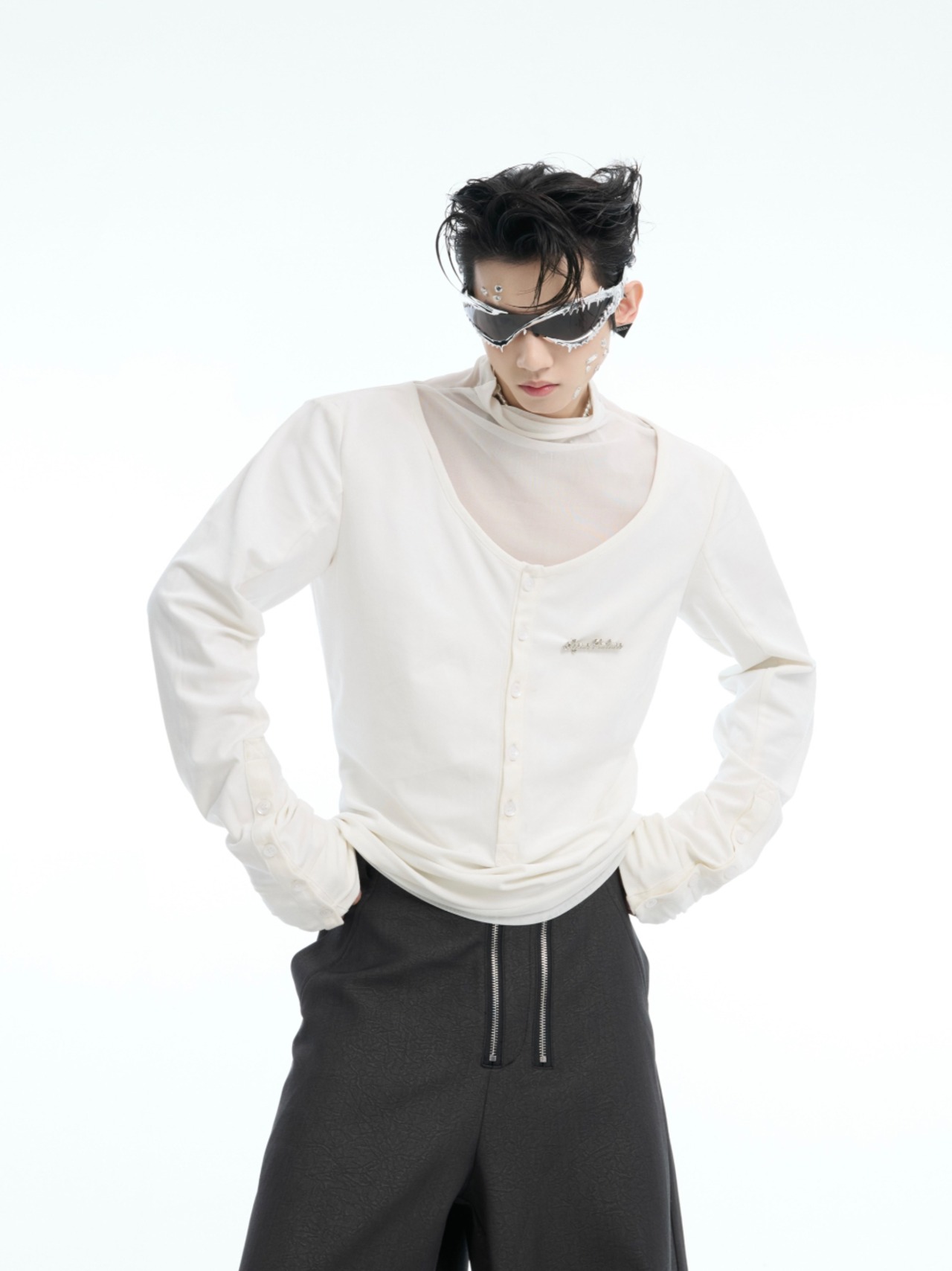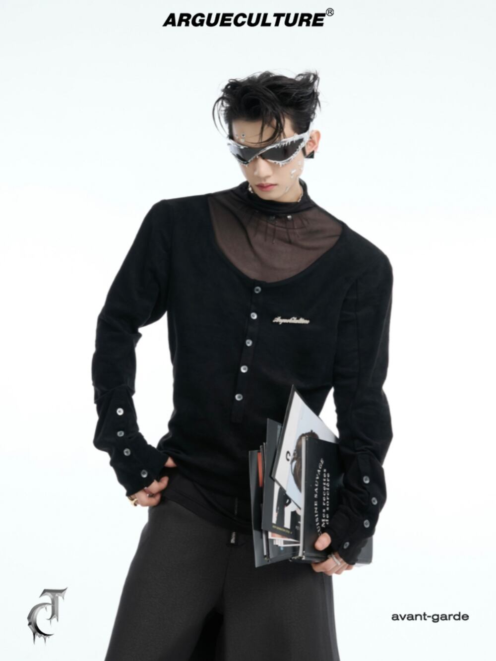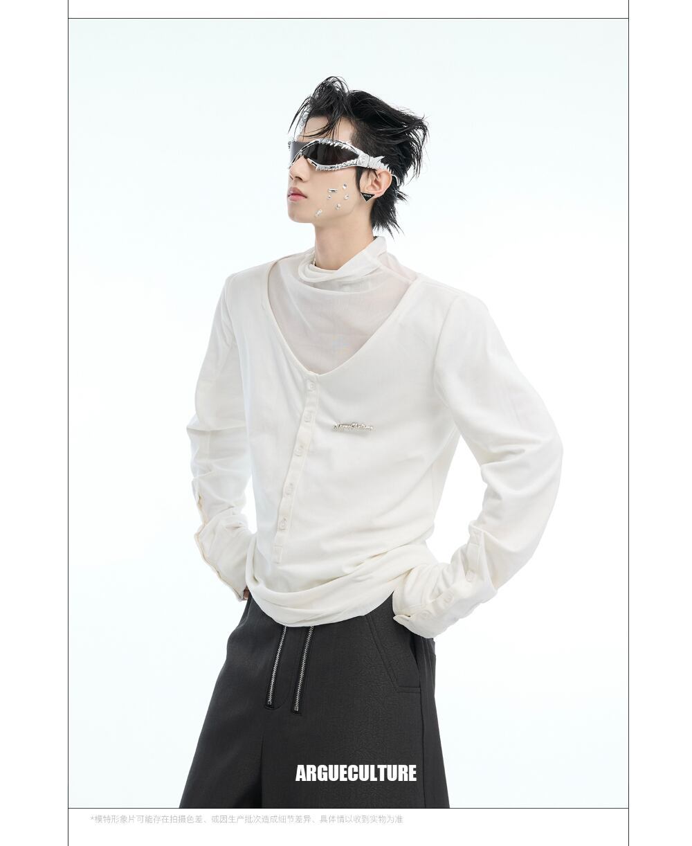 Argue Culture メッシュ切替スリムロンTレイヤードインナーロゴ