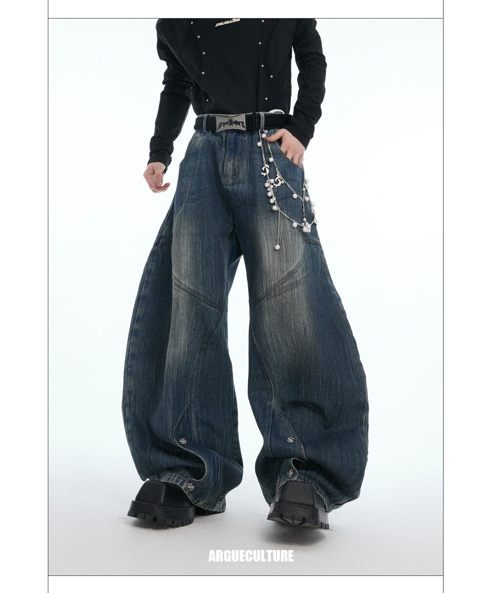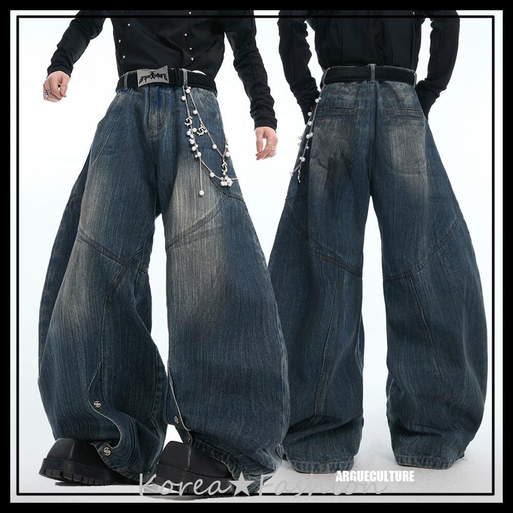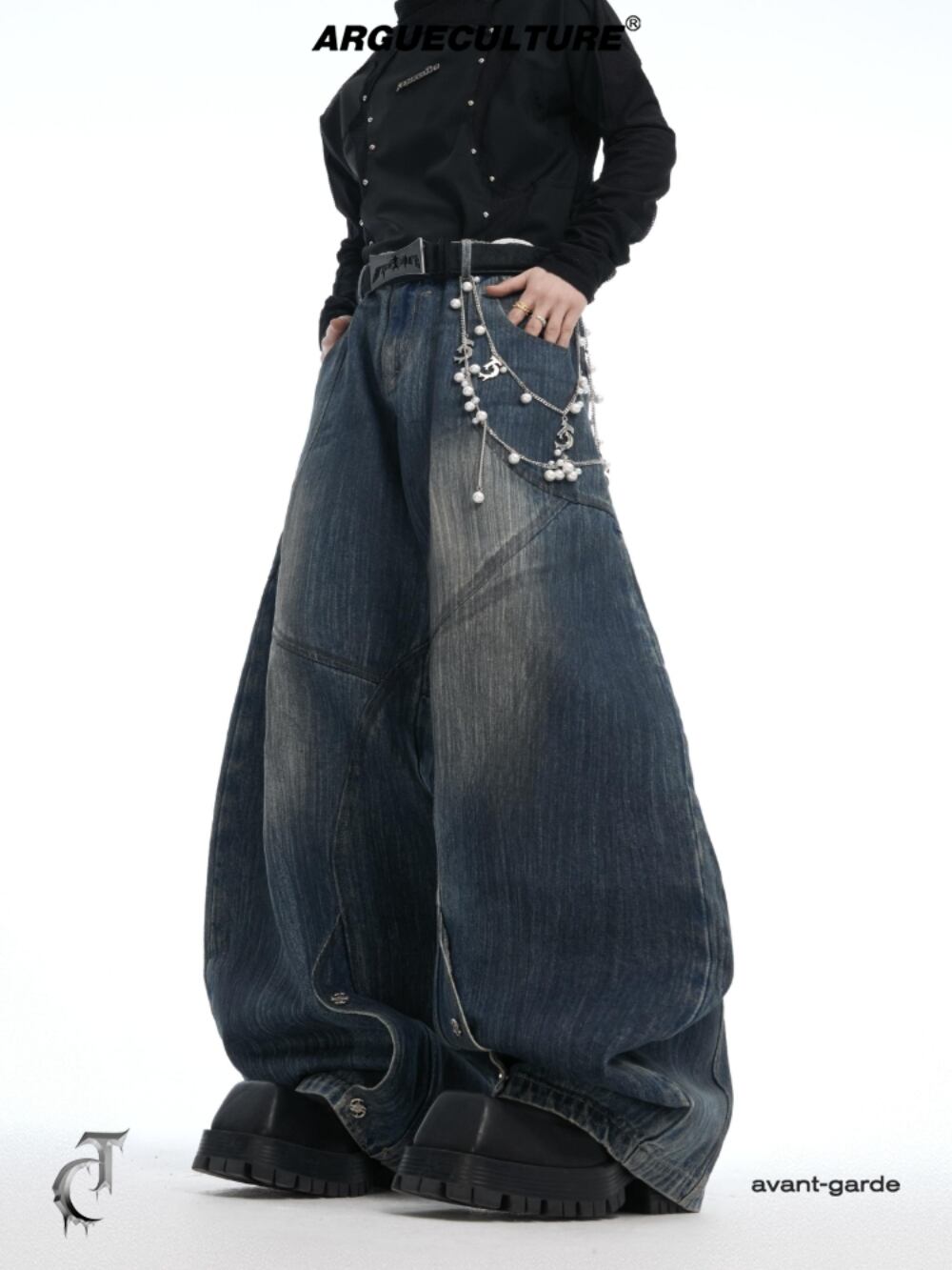 ArgueCulture変形シルエットボリュームカーブジーンズチェーン付