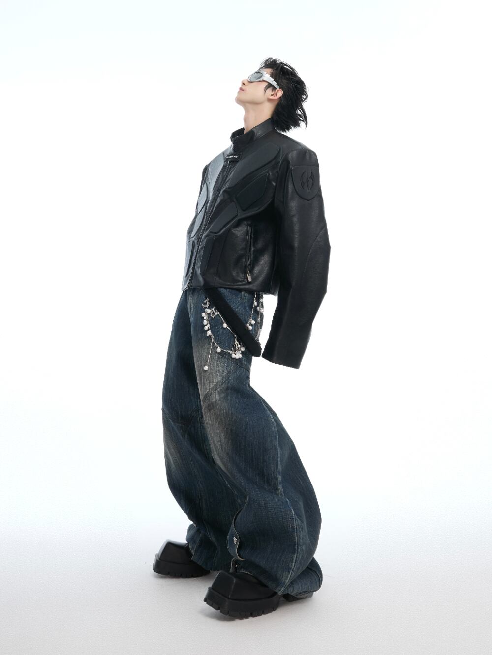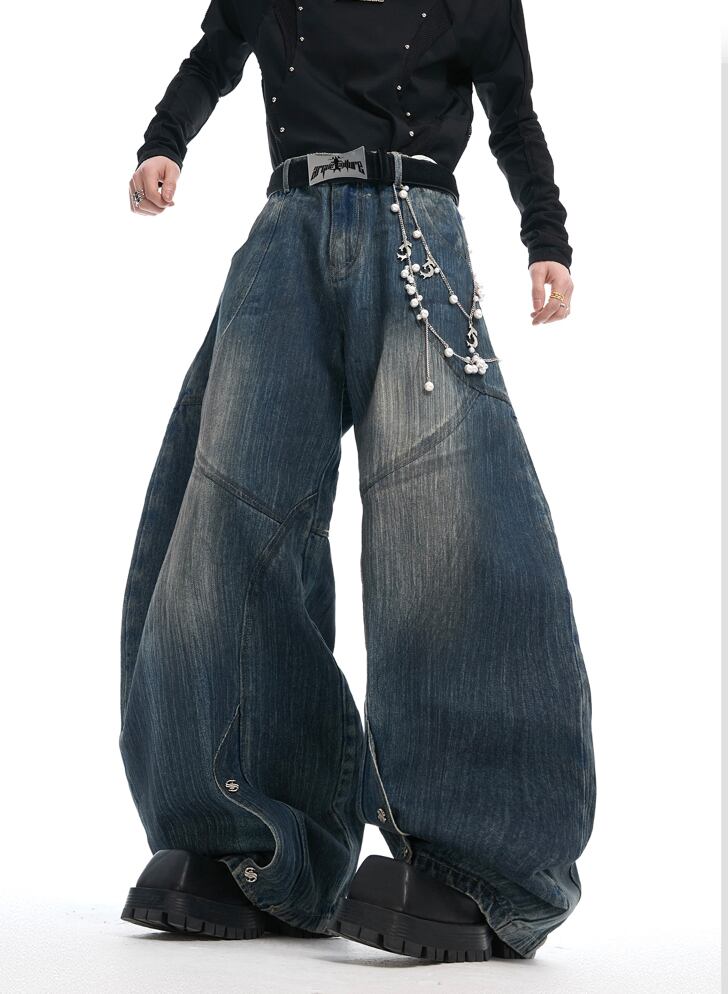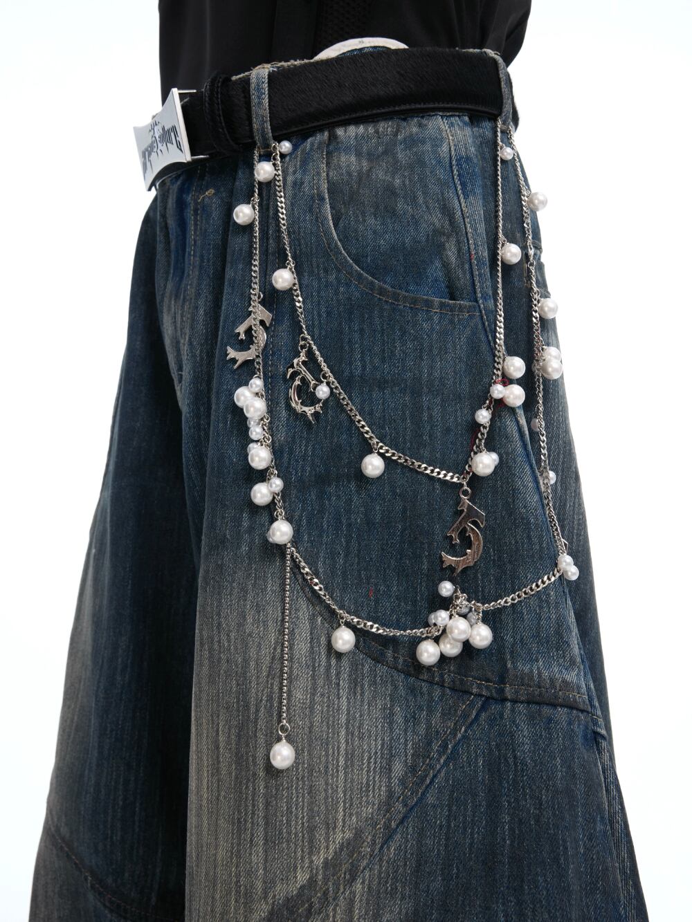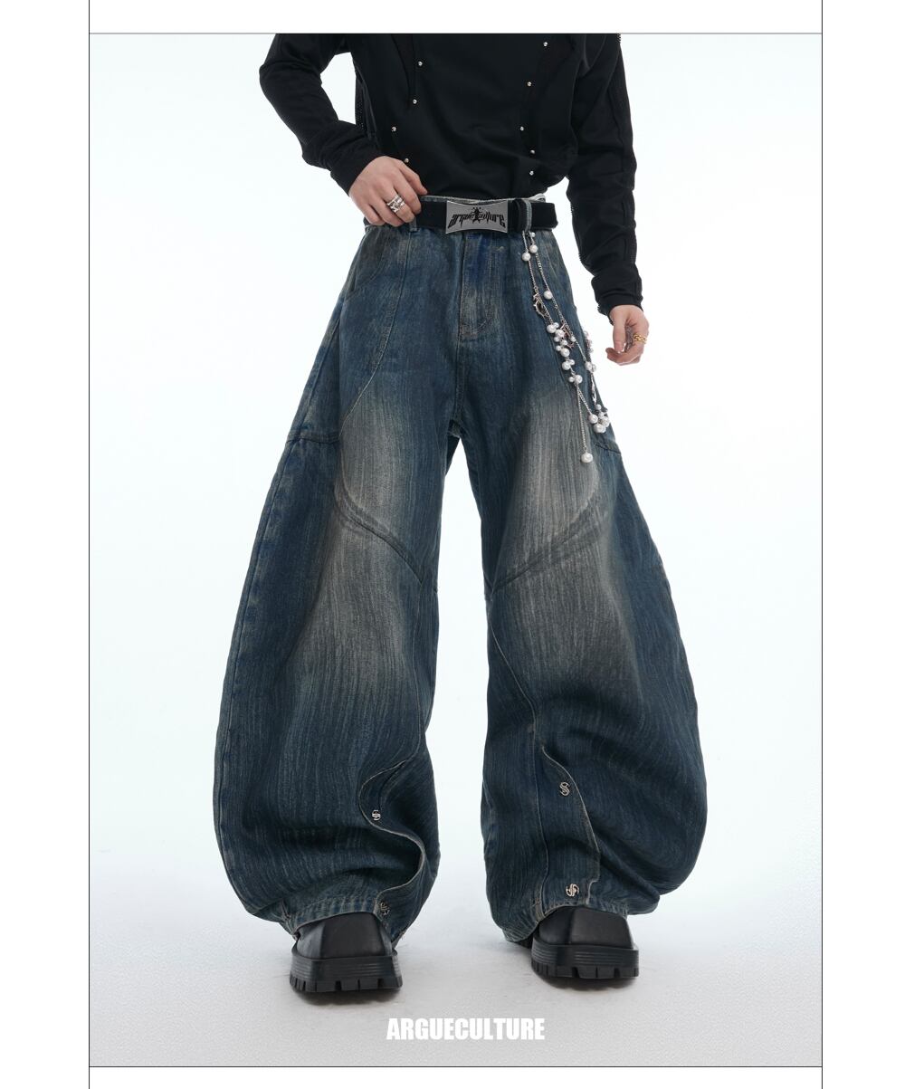 ArgueCulture変形シルエットボリュームカーブジーンズチェーン付