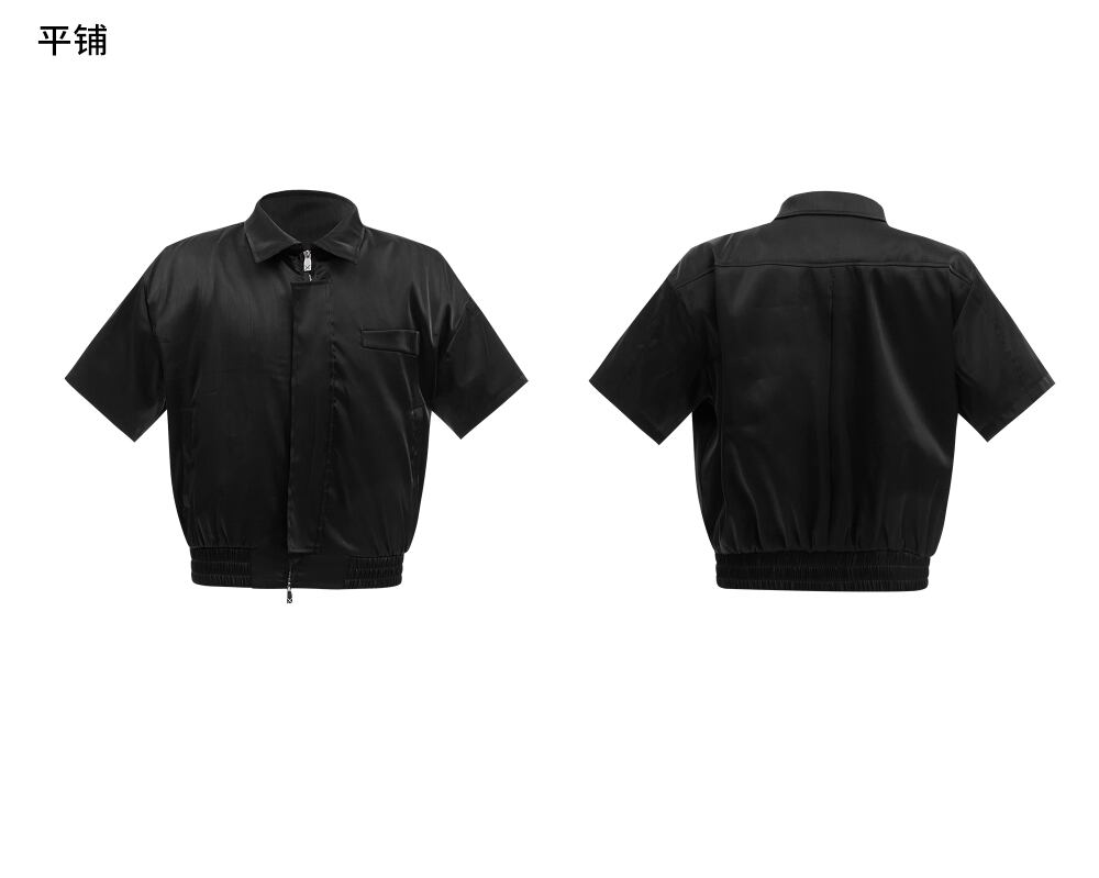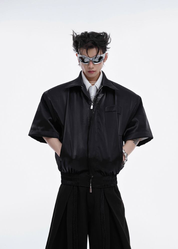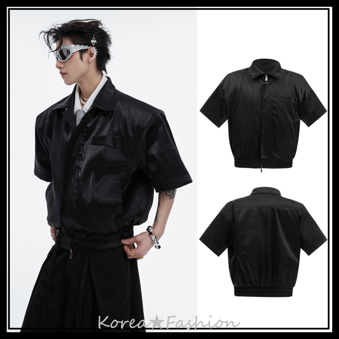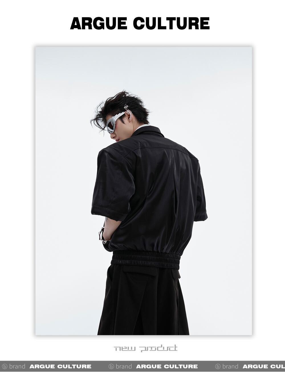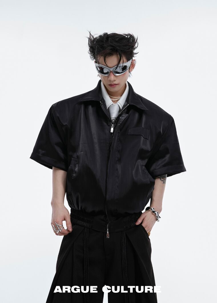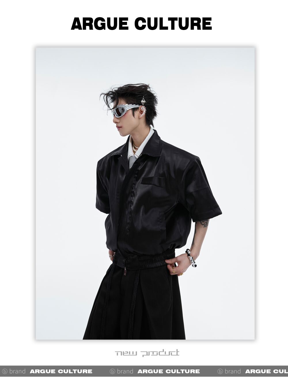Argue Culture 半袖シャツジッパー光沢無地ショートゆったり男女